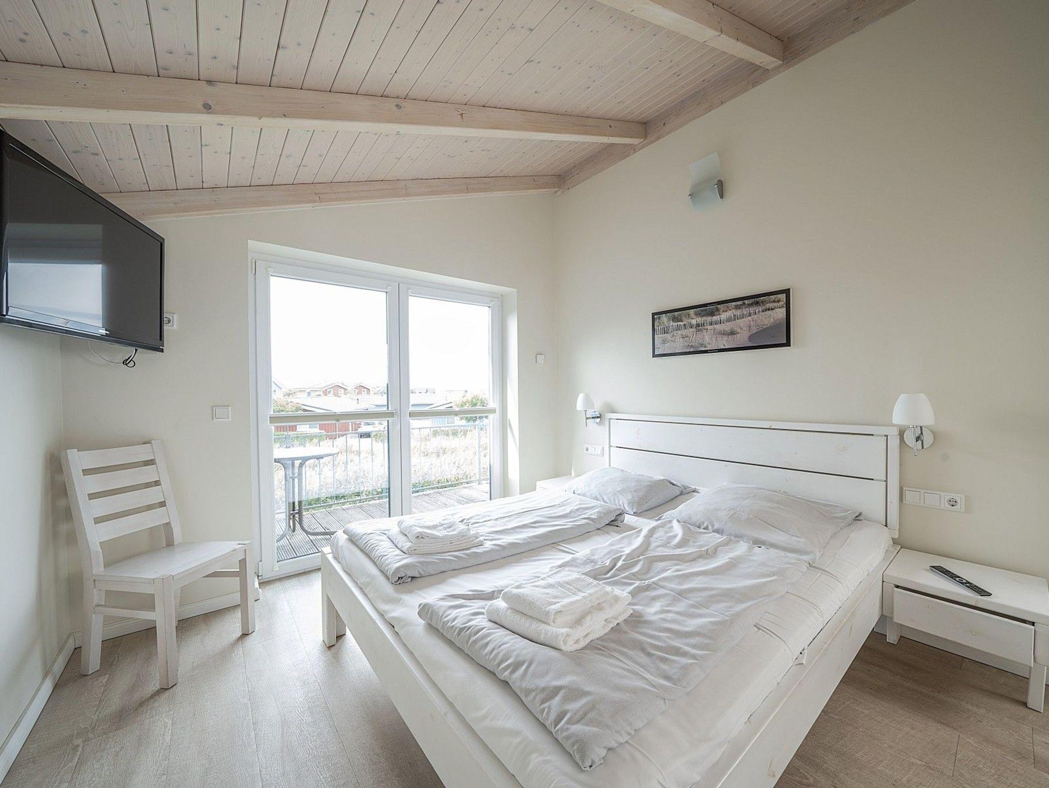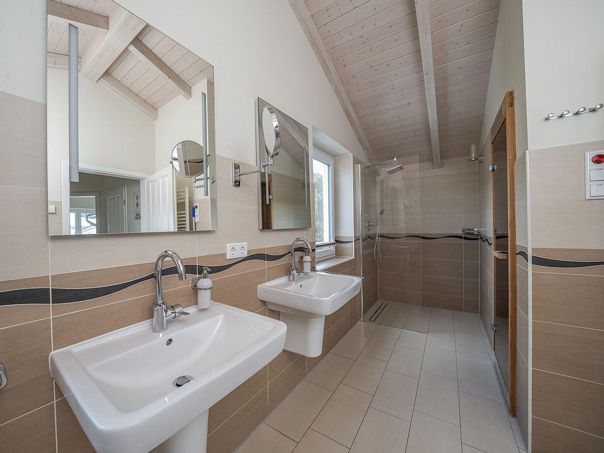 Besonderes Highlight ist die großzügige Sauna im Obergeschoss, die nach einem Tag an der frischen Meeresluft wohltuende Erholung verspricht. Im Erdgeschoss befinden sich ein Schlafzimmer sowie ein barrierearmes Bad mit schwellenloser Dusche ? ideal für Gäste, die kurze Wege bevorzugen. Zwei weitere Schlafzimmer und ein großes Bad ergänzen das Raumangebot.