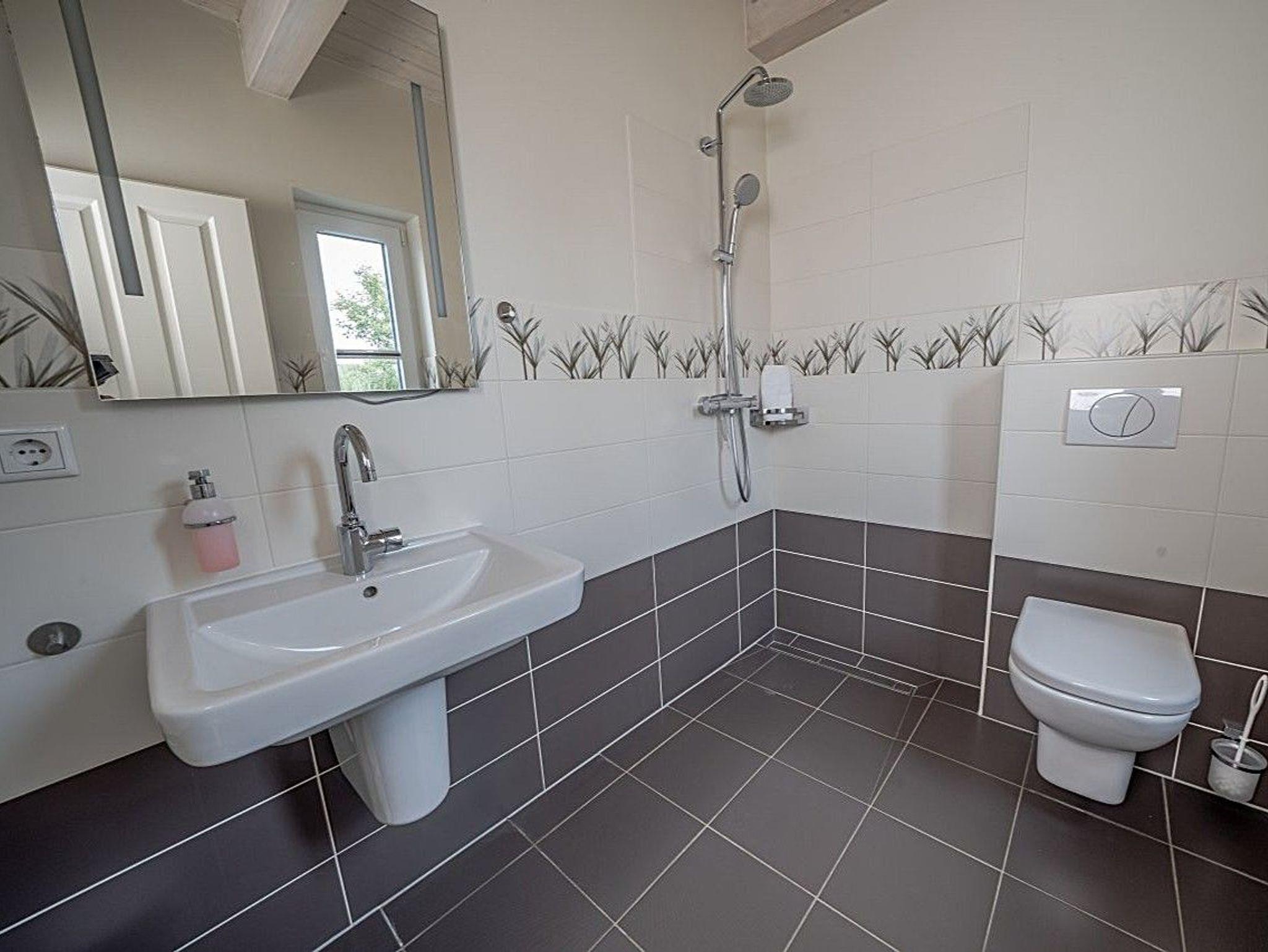 • 2 Badezimmer (1x OG mit Badewanne, 1x EG mit Dusche) / Gäste-WC (OG)