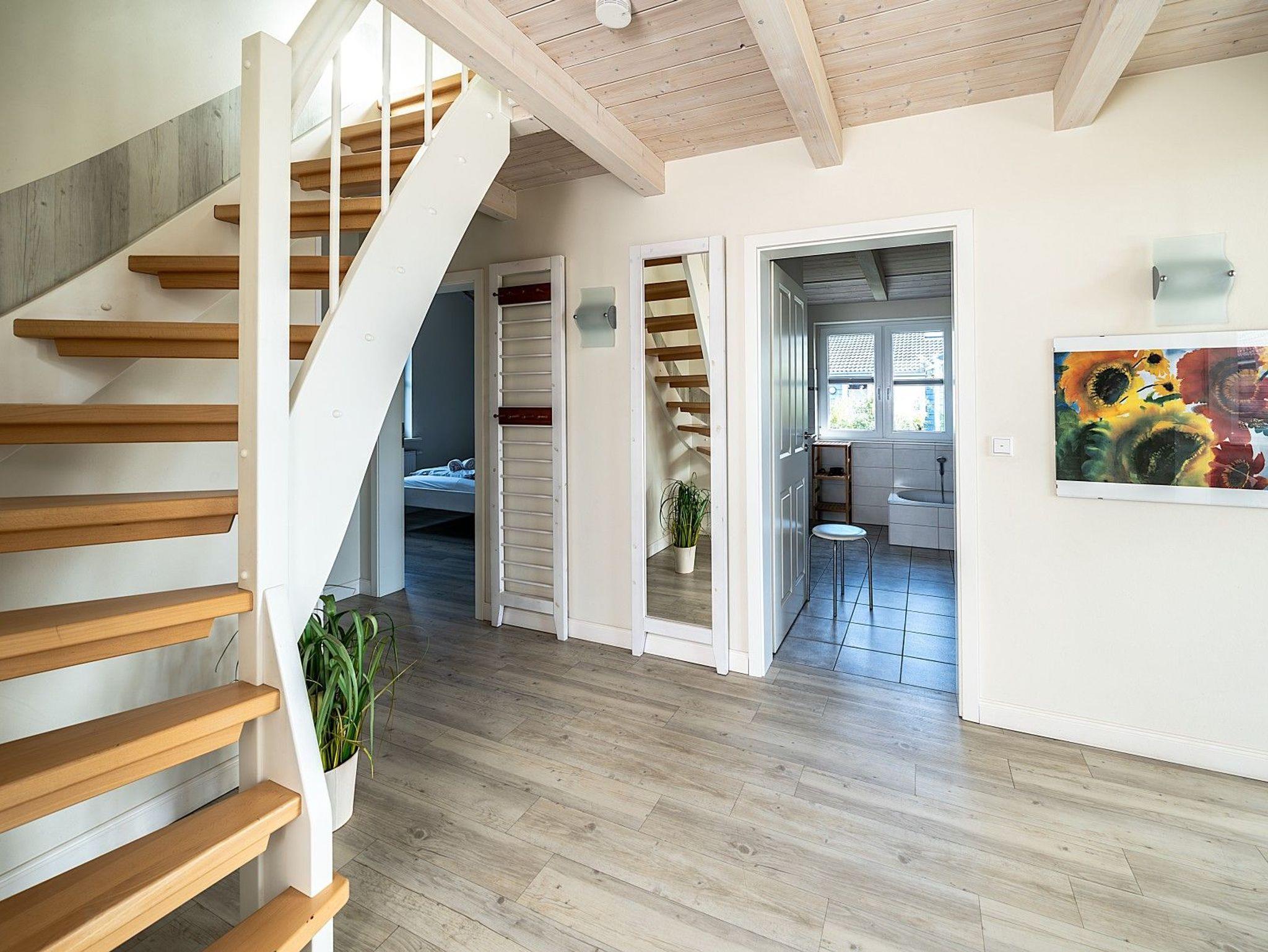 Die Küche ist voll ausgestattet mit Geschirrspüler, Mikrowelle und Kaffeemaschine; WLAN, TV und eine Waschmaschine stehen ebenfalls zur Verfügung. Für Gäste mit E-Auto gibt es eine Wallbox direkt am Haus.