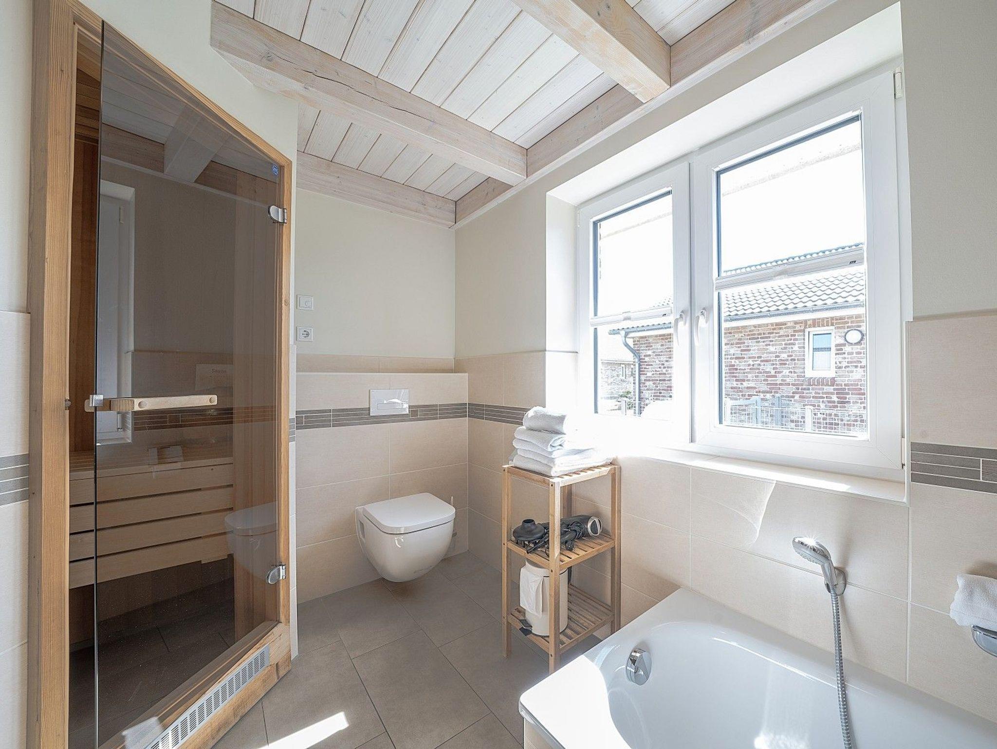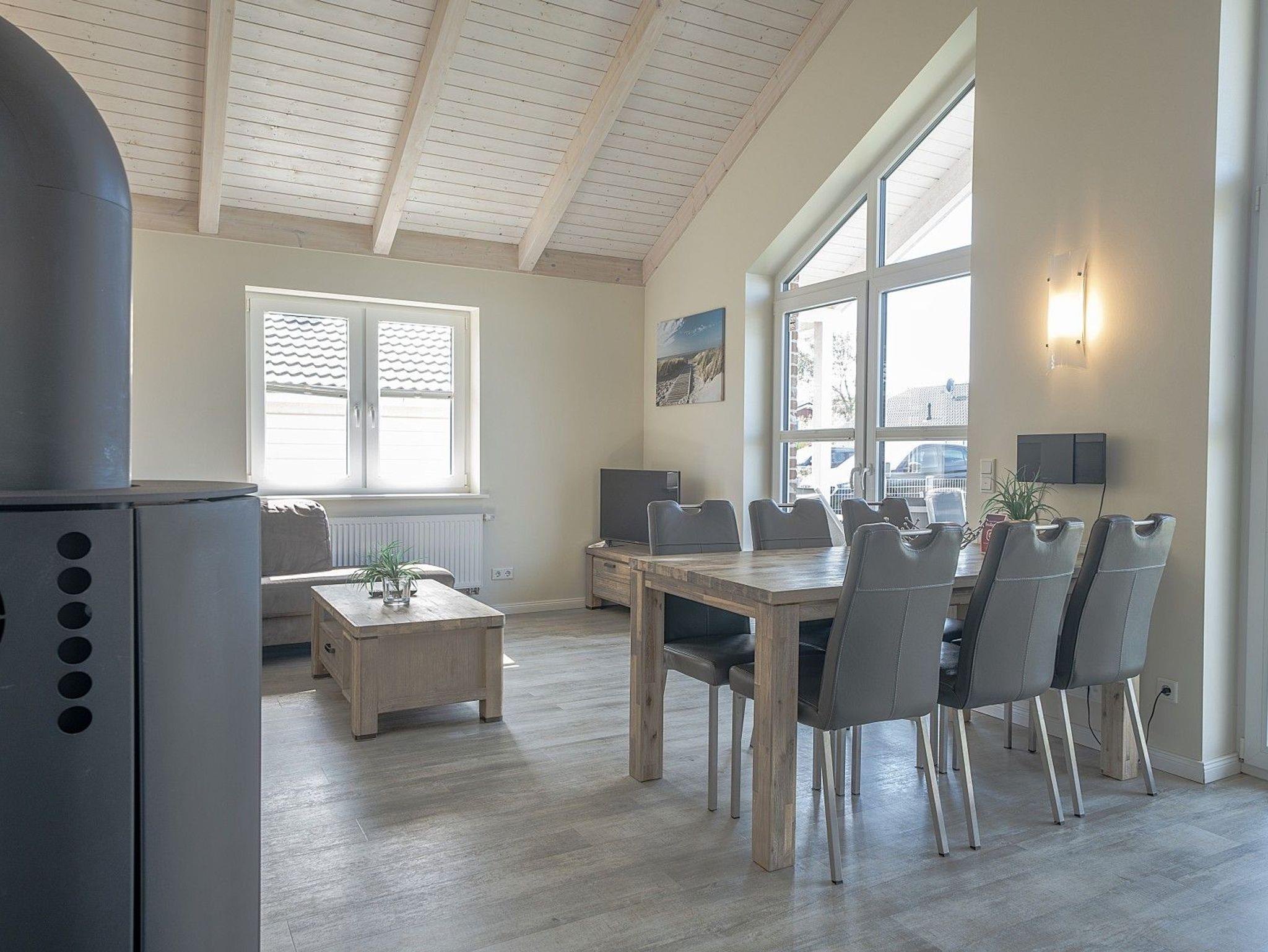 Dieses 80 m² große Ferienhaus in Dagebüll bietet Raum für bis zu vier Personen und verbindet modernen Komfort mit nordischem Charme. Die hellen, großzügig geschnittenen Räume schaffen eine einladende Atmosphäre, ideal für erholsame Tage an der Nordsee. Zwei Schlafzimmer mit Doppelbetten, ein stilvolles Bad mit Dusche und Badewanne sowie ein offener Wohn- und Essbereich mit Kaminofen sorgen für Behaglichkeit. Eine private Sauna lädt nach einem Spaziergang am Deich zum Entspannen ein.