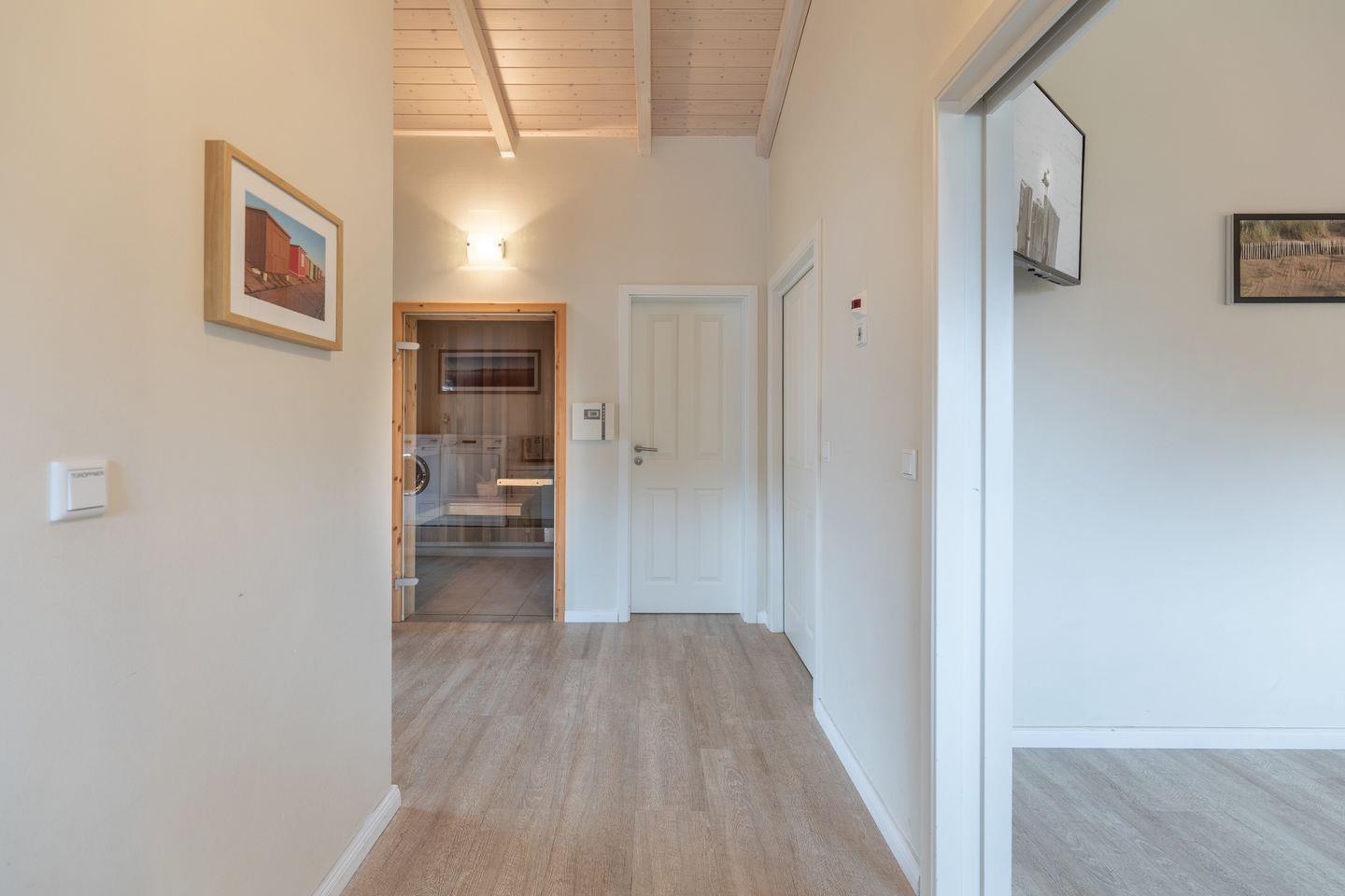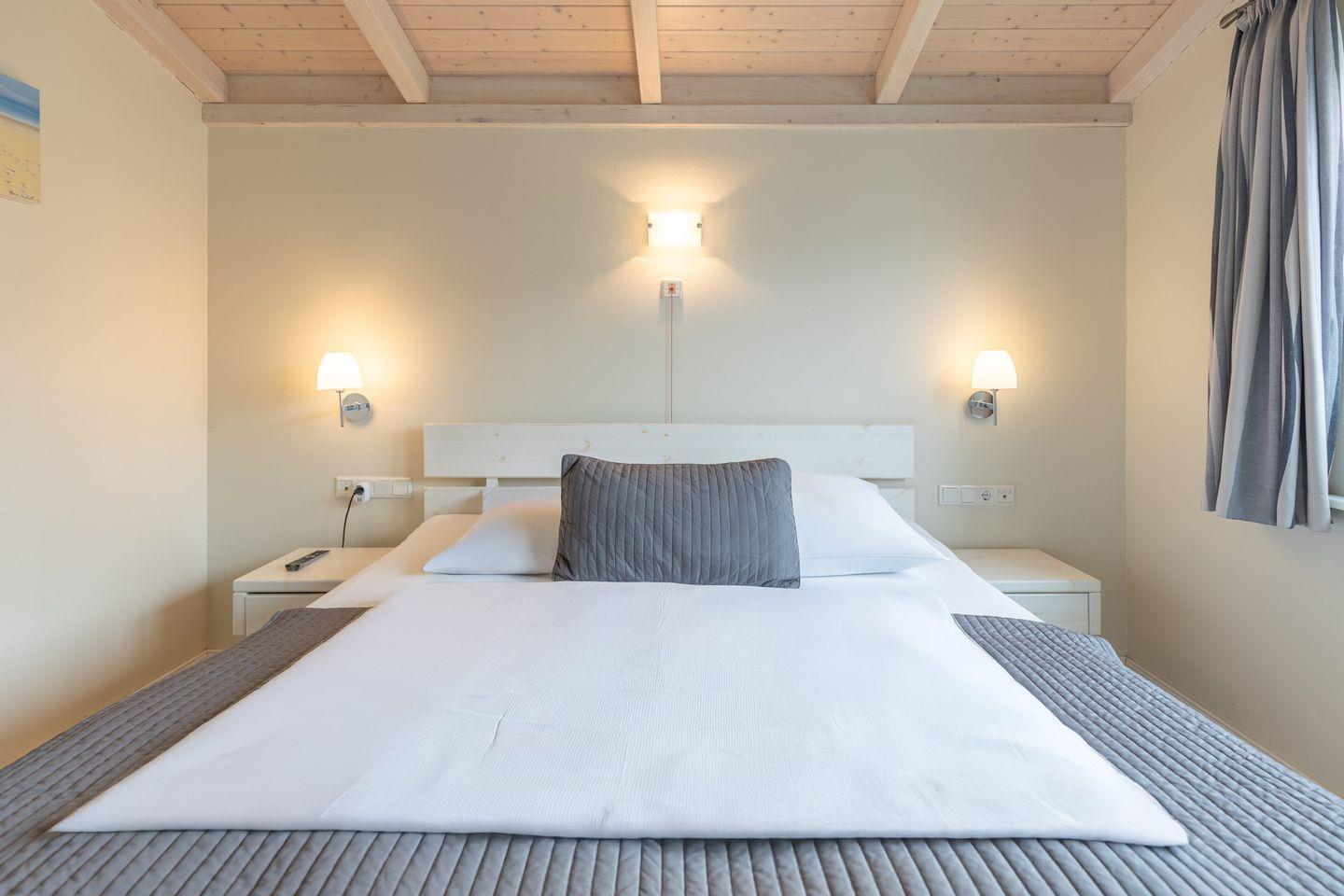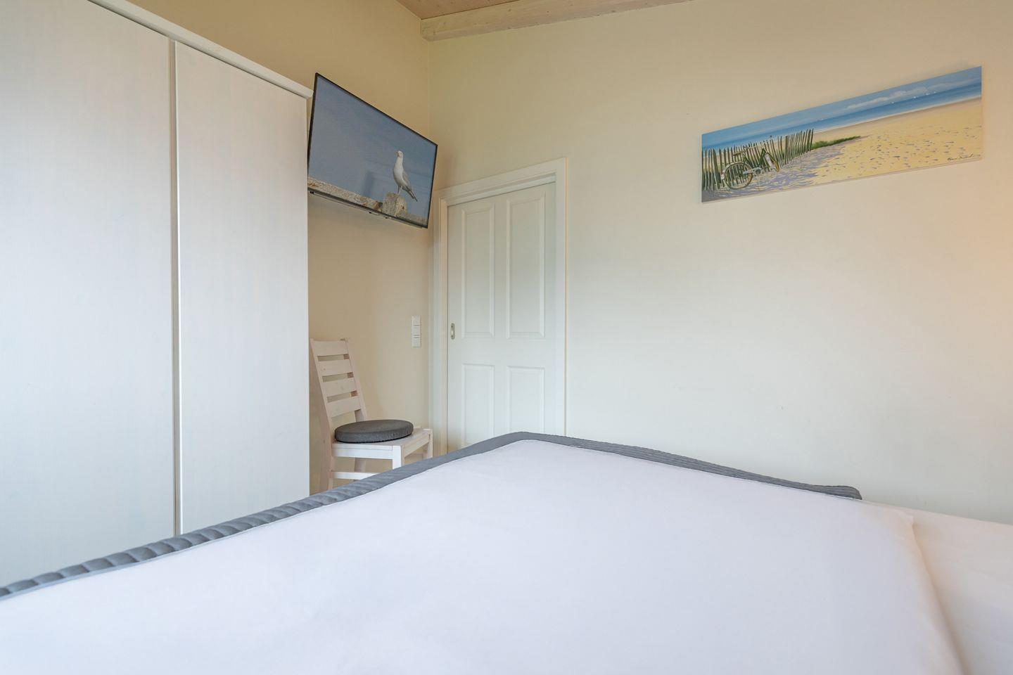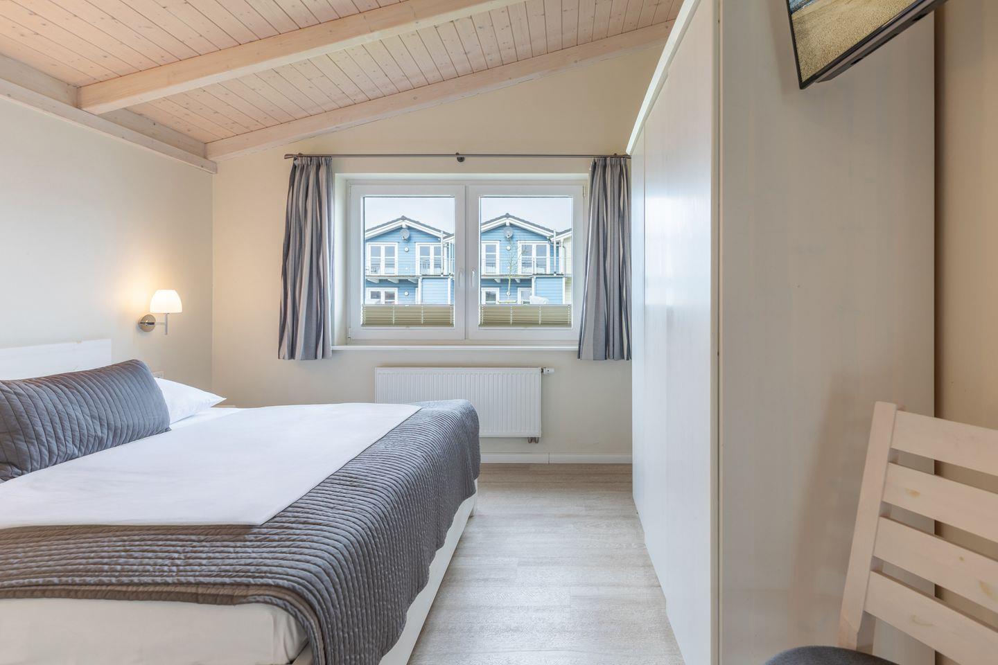 Das 90 qm große Ferienhaus ist modern und exklusiv im skandinavischen Charme eingerichtet. Die zwei Schlafzimmer mit jeweils einem Komfort-Doppelbett (180 x 200 cm) bieten Platz für bis zu vier Personen. In dem einen Schlafzimmer ist der Lattenrost elektrisch verstellbar und mit einem Lifter unterfahrbar. In den Schlafräumen, der Sauna und im Badezimmer befindet sich ein Notrufsystem. Beide Schlafzimmer sind mit einem Fernseher ausgestattet.