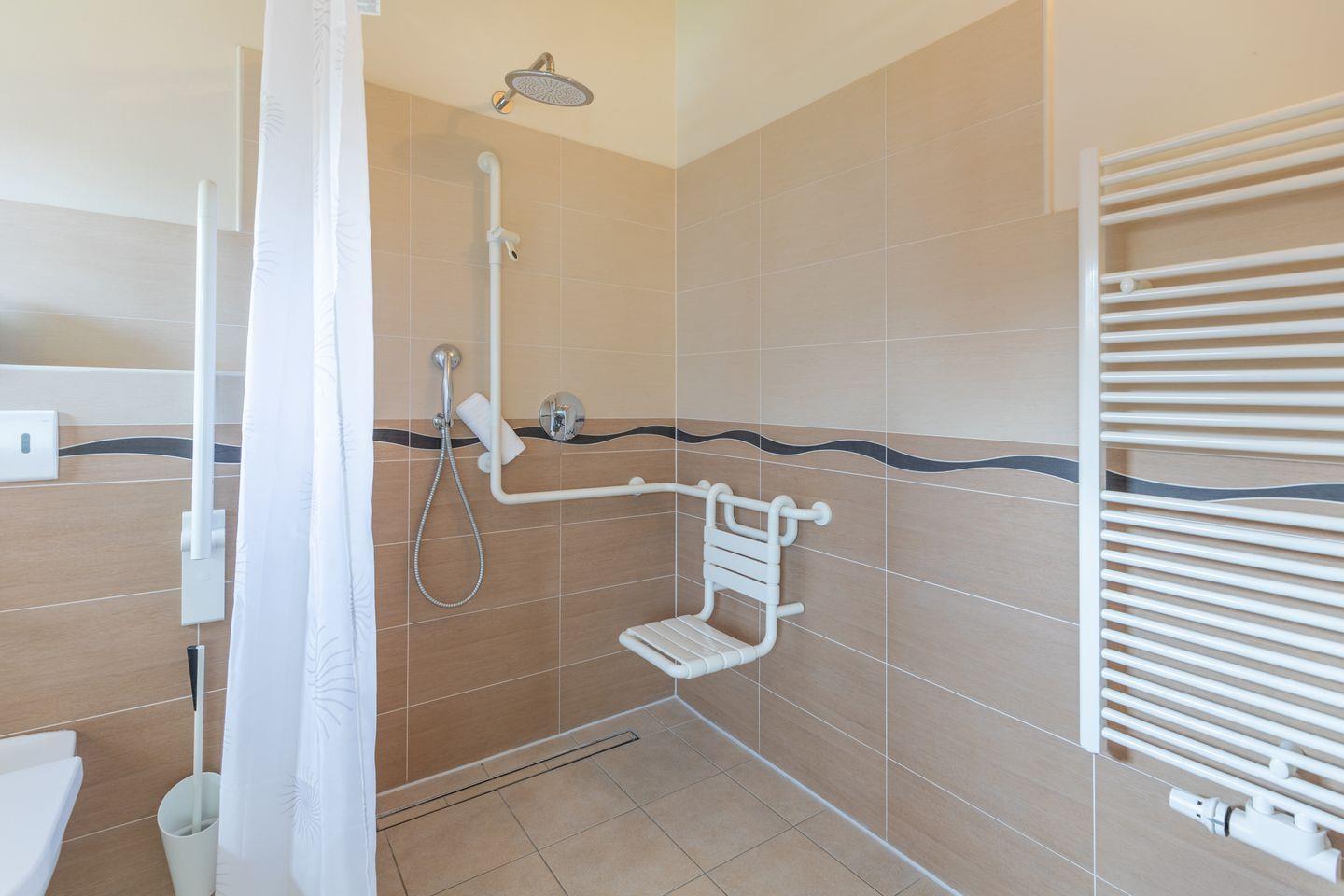 Die befahrbare Sauna mit der Liege-/Sitzfläche in Rollstuhlhöhe sorgt für einen entspannten Wellness-Urlaub!