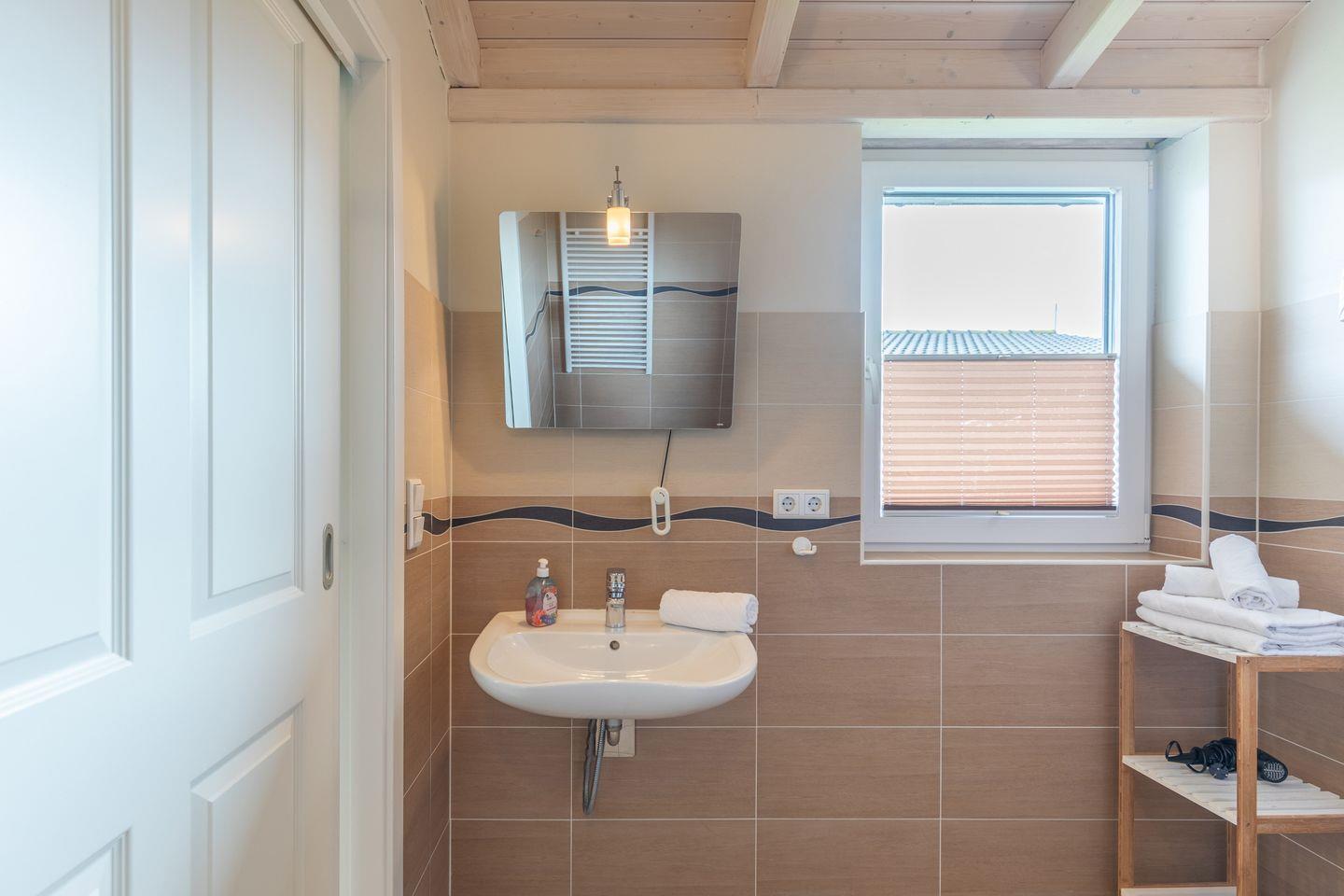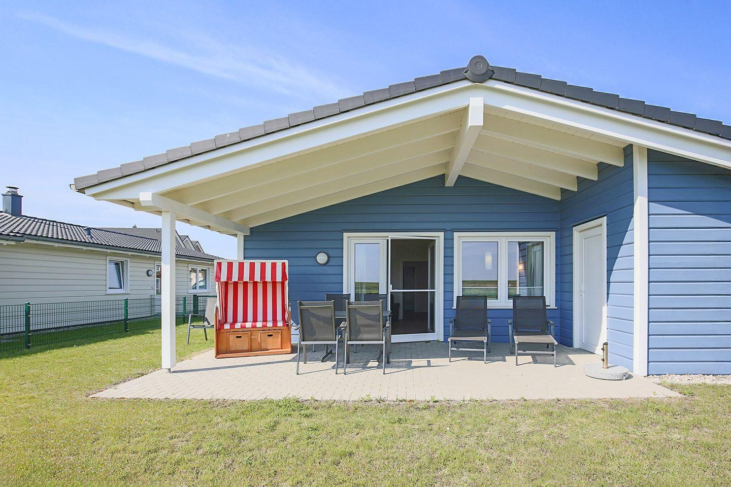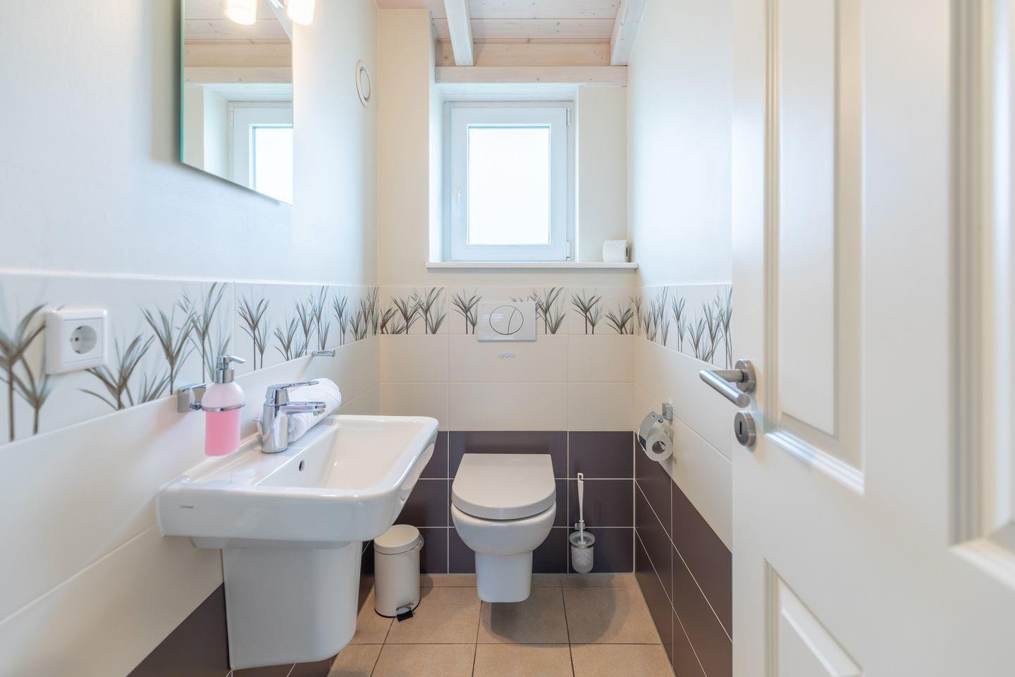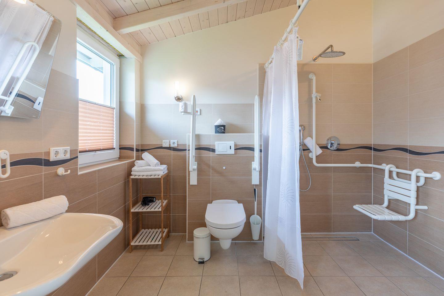 Das Badezimmer lässt keine Wünsche offen: zwei Waschbecken und eine ebenerdige Dusche geben Ihrem Urlaub den richtigen Rahmen. Das Ferienhaus verfügt über ein zusätzliches WC. Auf der überdachten, windgeschützten Terrasse können Sie auf bequemen Gartenstühlen, den Sonnenliegen oder im Strandkorb die Sonne genießen.