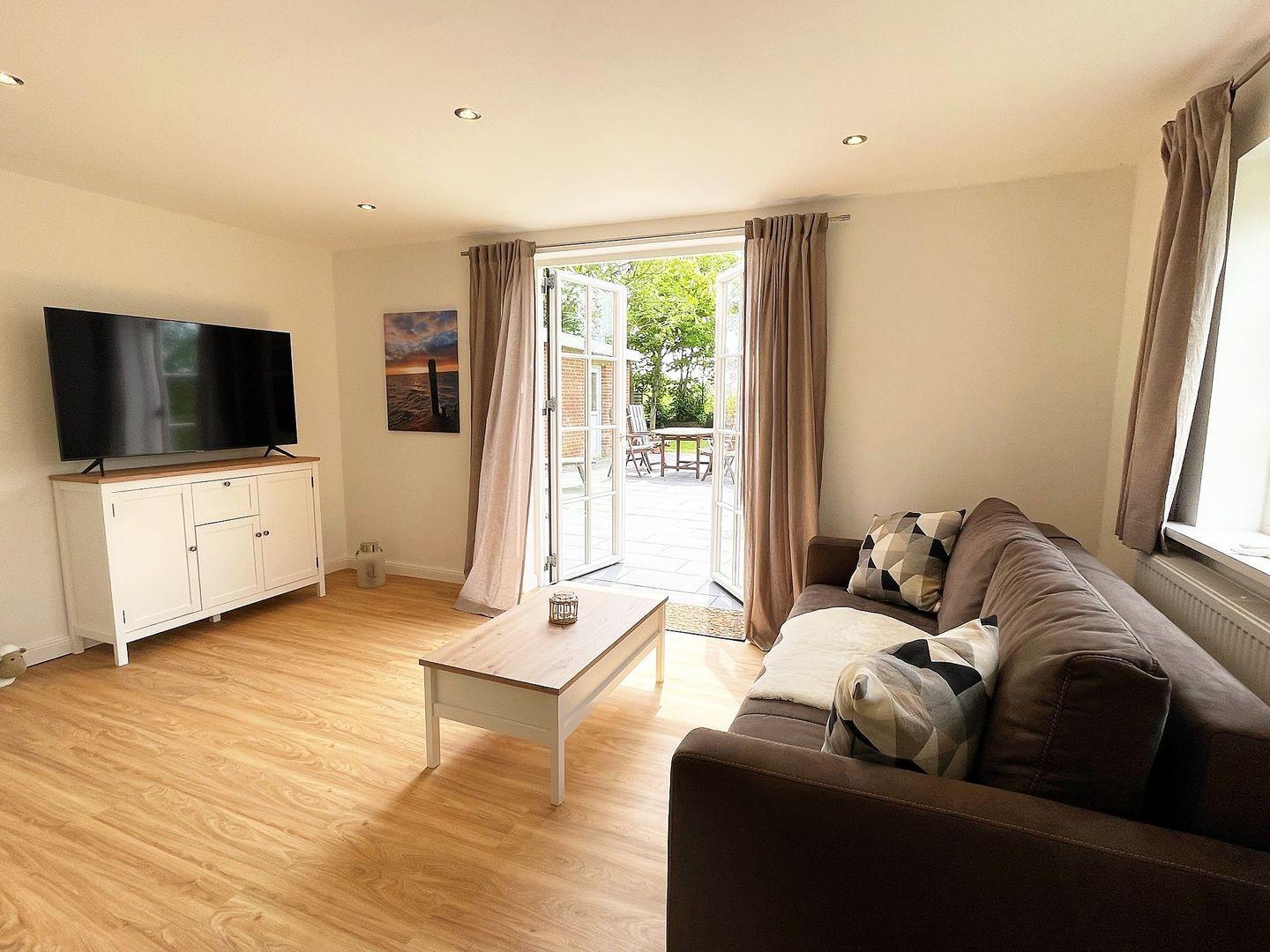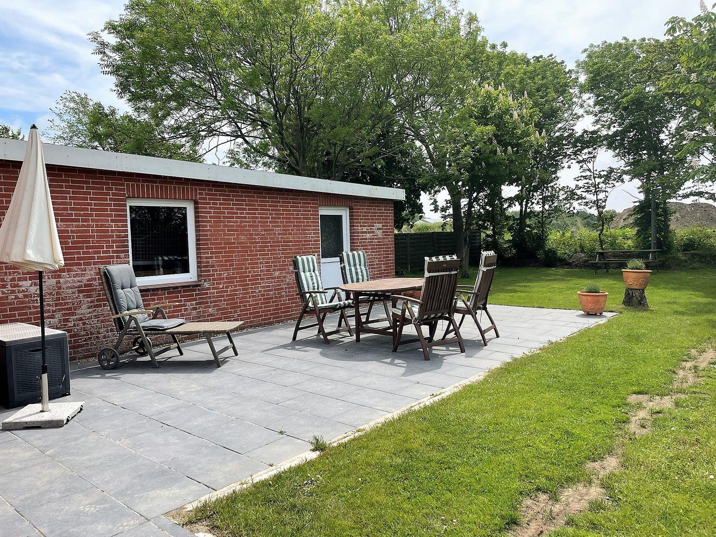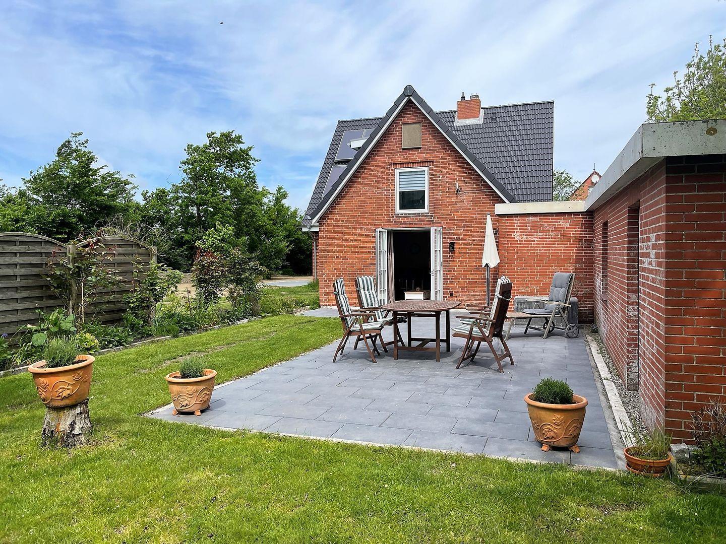 Dank der großen Terrasse können Sie die frische Nordseeluft und den Blick ins Grüne genießen. Hier können Sie den Tag bei einem guten Glas Wein ausklingen lassen oder die Sonne auf einer der Sonnenliegen genießen. Für gesellige Grillabende steht Ihnen ein Grill im Garten zur Verfügung. Dieser ländliche Rückzugsort bietet zudem einen Garten mit Liegewiese und genügend Platz für Spiele oder ein entspanntes Picknick.