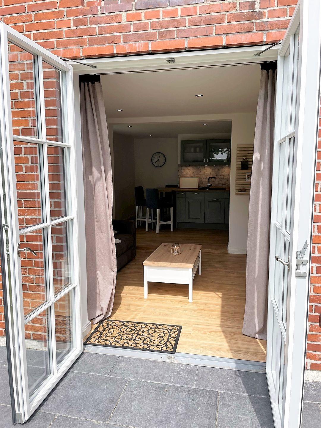 Die Ferienwohnung verfügt über ein gemütliches Schlafzimmer, das zum Träumen einlädt. Der offene Wohnbereich mit Sofaecke und Essbereich bietet nicht nur Platz zum Entspannen, sondern auch die Möglichkeit, gesellige Abende zu verbringen. Die voll ausgestattete Küche lässt keine Wünsche offen – mit einem Herd, Backofen, Kühlschrank, Geschirrspüler und Kaffeemaschine sind Sie bestens ausgestattet, um Ihre Lieblingsgerichte zuzubereiten. Ein Esstisch für gemeinsame Mahlzeiten und ein gemütlicher Wohnbereich mit TV sorgen für ein behagliches Ambiente.