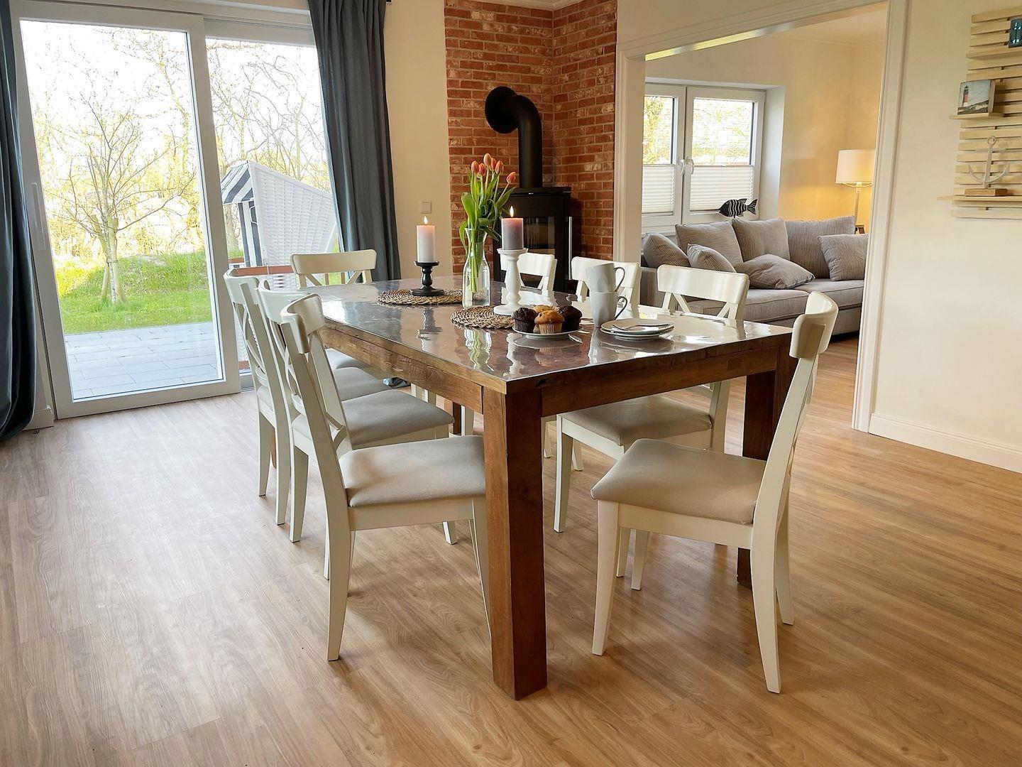 Die Terrasse und der Garten laden zum Verweilen ein. Entspannen Sie sich auf den Sonnenliegen oder im gemütlichen Strandkorb und lassen Sie sich von der frischen Nordseeluft verwöhnen. Ein Grill steht ebenfalls zur Verfügung, sodass Sie unter freiem Himmel leckere Grillabende verbringen können.