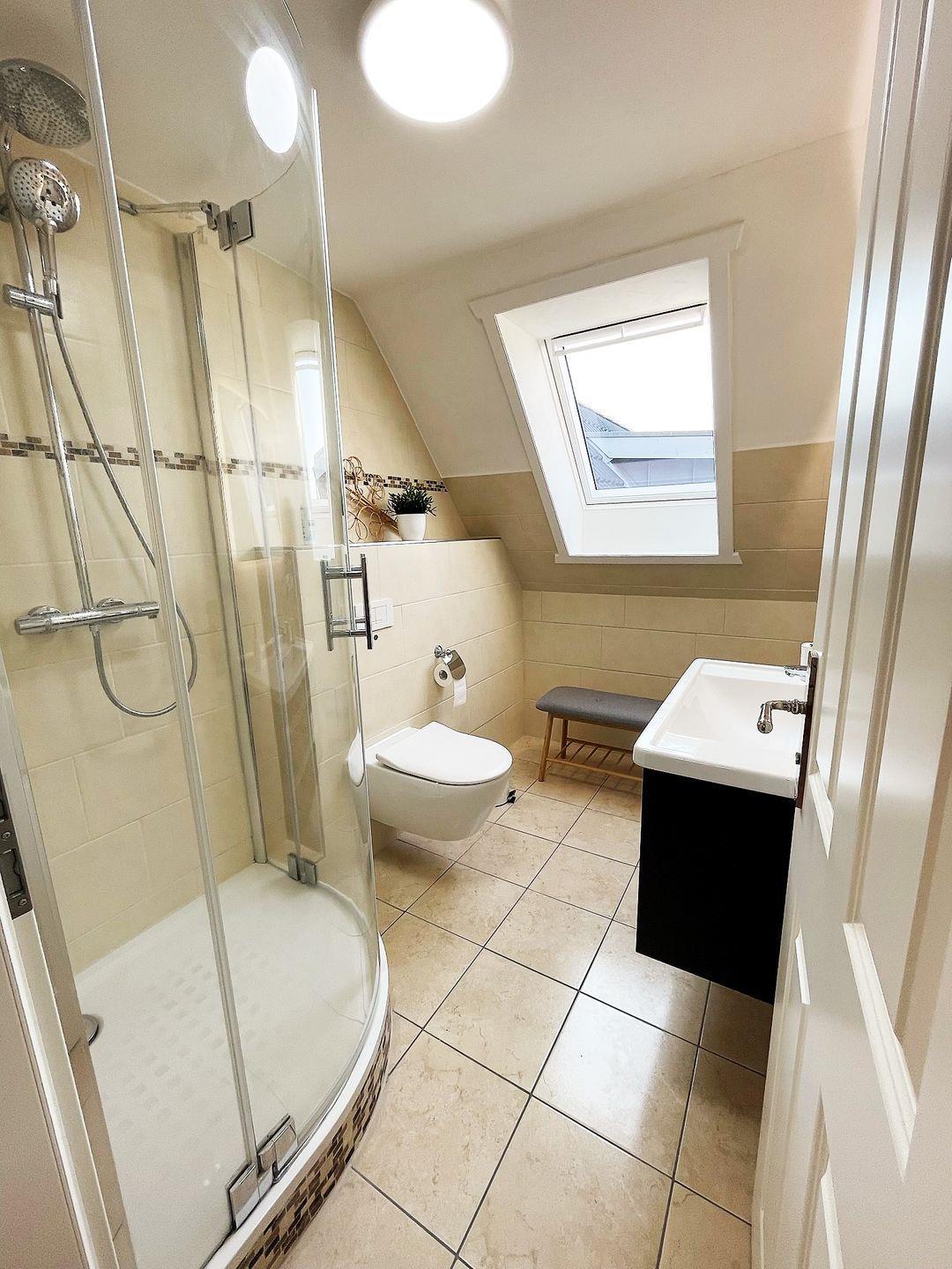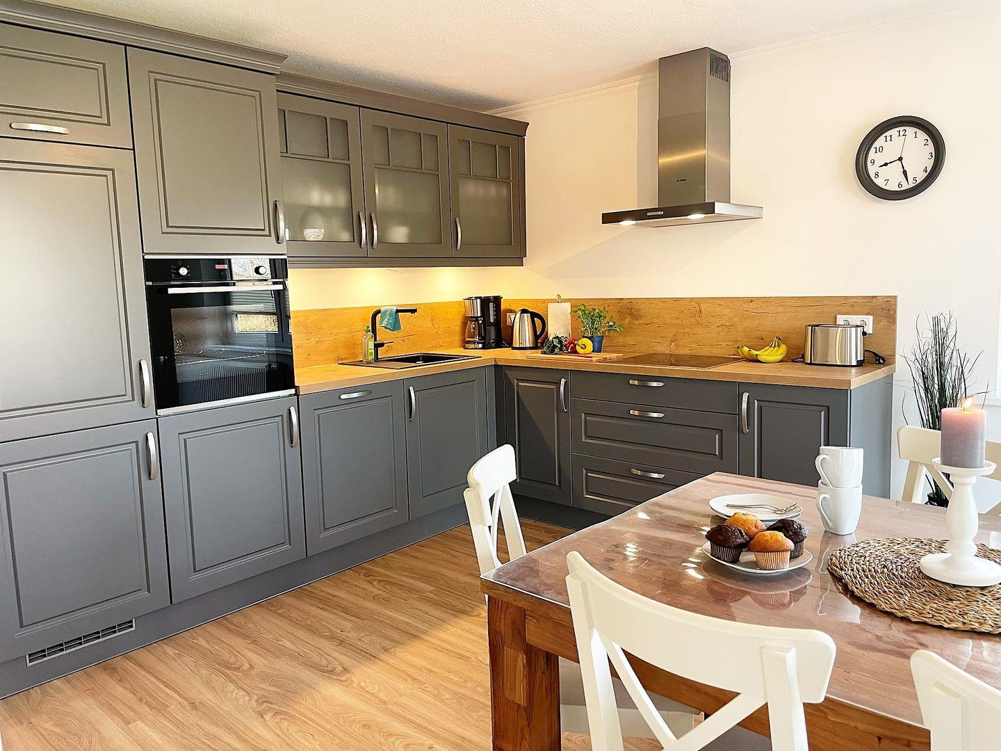 Das Ferienhaus erstreckt sich über 3 Etagen und verfügt über insgesamt 5 Zimmer, darunter 4 gemütliche Schlafzimmer, die Ihnen den idealen Raum für erholsame Nächte bieten. Morgens können Sie fröhlich am Esstisch in der offenen Küche, die perfekt in das großzügige Wohnzimmer integriert ist, das Frühstück zubereiten. Die moderne Küche ist bestens ausgestattet mit einem Herd, Backofen, Kühlschrank, Geschirrspüler und sogar einer Mikrowelle. Hier können Sie schmackhafte Mahlzeiten zubereiten und die gemeinsame Zeit genießen.