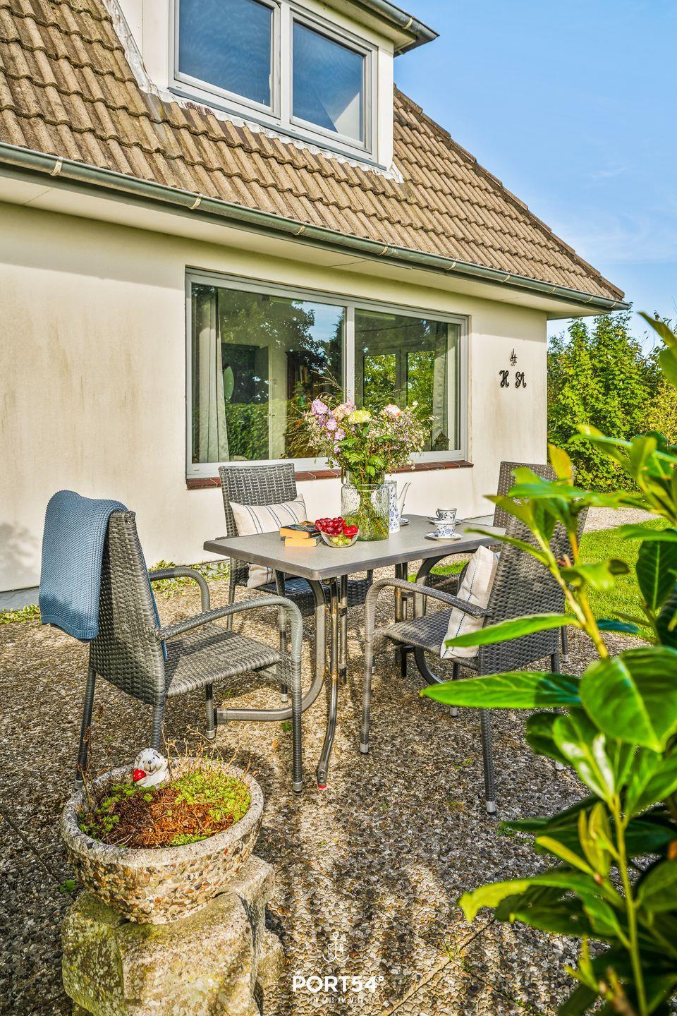 Der Wohnbereich bildet das Herzstück des Hauses: eine gemütliche Sofaecke lädt zu entspannten Fernsehabenden oder geselligen Spieleabenden ein. Die offene Küche ist ideal für alle, die gerne kochen – ausgestattet mit modernen Geräten, ausreichend Geschirr und Besteck. Der angrenzende Essbereich bietet Platz für gemeinsame Mahlzeiten – oder Sie verlegen das Essen direkt auf die Terrasse. Für unsere kleinen Gäste steht vor Ort ein Kinderhochstuhl bereit.