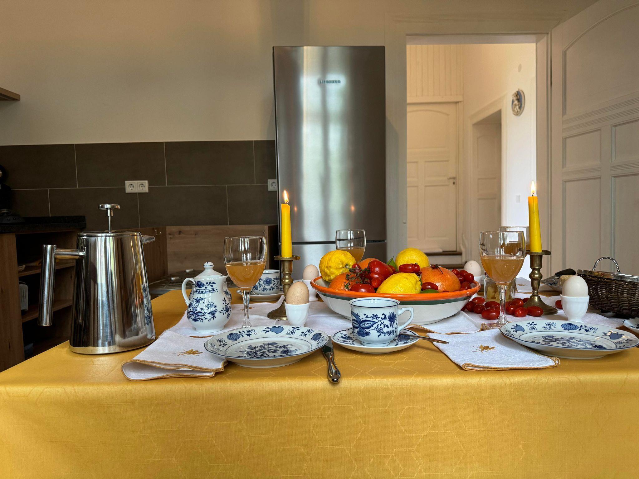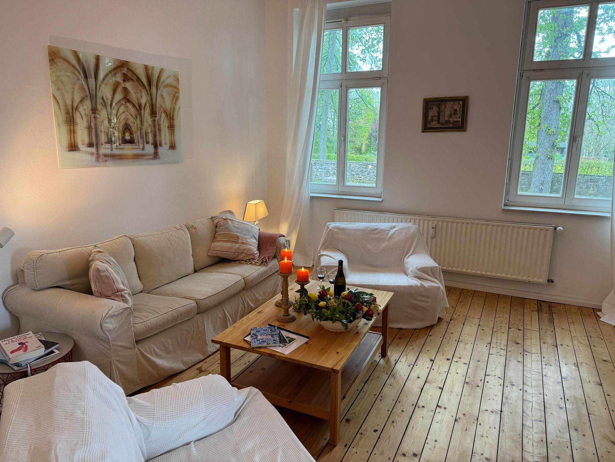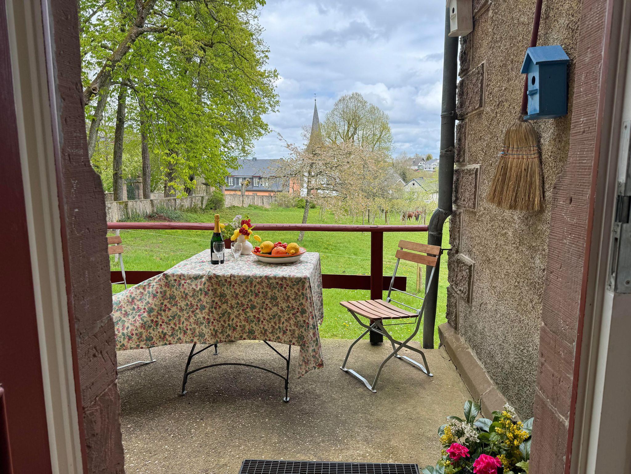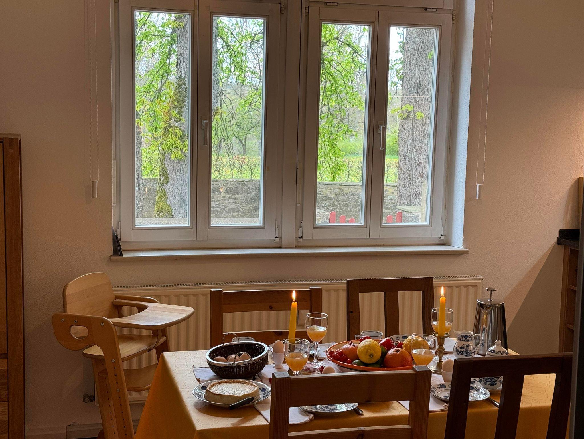 Die neu eingerichtete Ferienwohnung L' Extravagante im Garten von Schloss Schmidtheim bietet herrliche Ruhe in einem besonderen Haus: eine historische Villa aus dem 19. Jahrhundert. Viel Raum, Licht und natürliche Materialien wie Holz und Stein vereinen sich und bilden den Grundstein für die Erholung unserer Gäste. Die hohen Decken bieten Platz zum Atmen, und verleihen der außergewöhnlichen Unterkunft ein gewisses Schloss-Flair. Riesige Fenster sorgen für wunderbare Helligkeit und das Gefühl, Teil des sich draußen abspielenden Naturschauspiels zu sein. Eine kleine Terrasse mit eigenem Garten und Blick auf den großen Obstgarten laden zum Verweilen, zum Beobachten, zum Entspannen und Genießen ein. Aktive Feriengäste kommen ebenfalls auf ihre Kosten: Treten Sie aus der Tür und durch das rote Gartentor – hier erwarten Sie kilometerlange Wander- und Radwege.