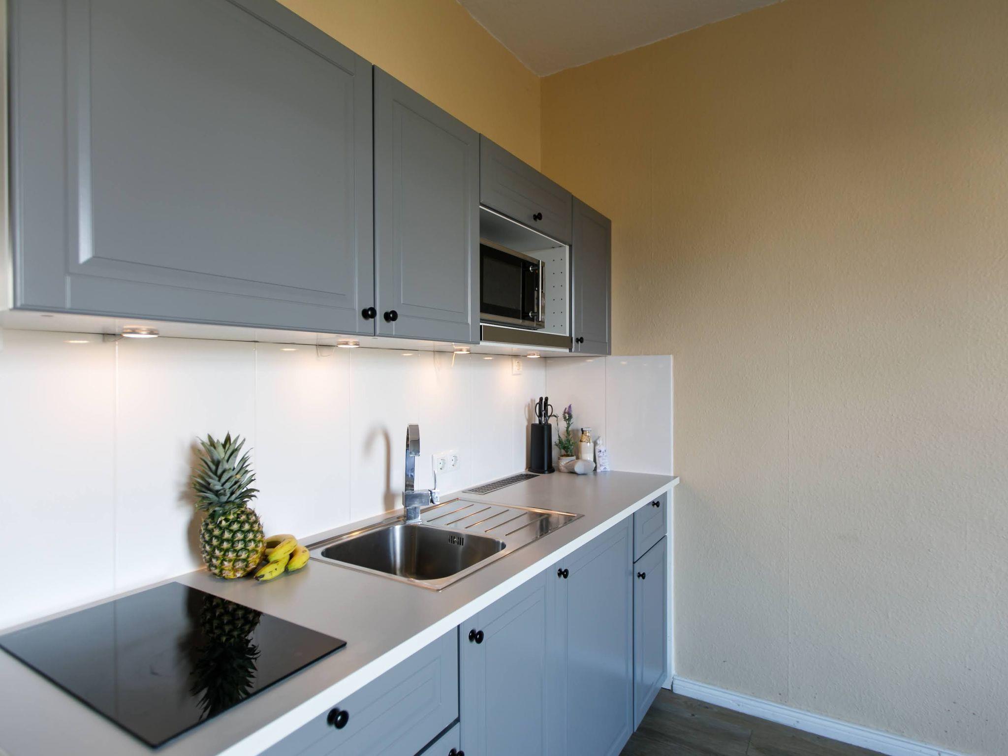 HausOstseewelle is located 150 metres from the beach. The holiday flat 8 is located on the 1st floor and has a balcony. The flat has a bedroom (small double bed 1.40 m x 2 m) and a living-dining room with a sofa bed (1.40 m x 2 m). The kitchen is integrated into the living room and is equipped with a coffee machine, toaster, egg cooker, kitchen utensils, microwave, crockery, pots and a two-burner ceramic hob. The kitchen does not have an oven. The equipment includes a radio and an LCD DVBT TV. A maximum of two dogs are allowed, otherwise no other pets are allowed. The house has one parking space per holiday flat.