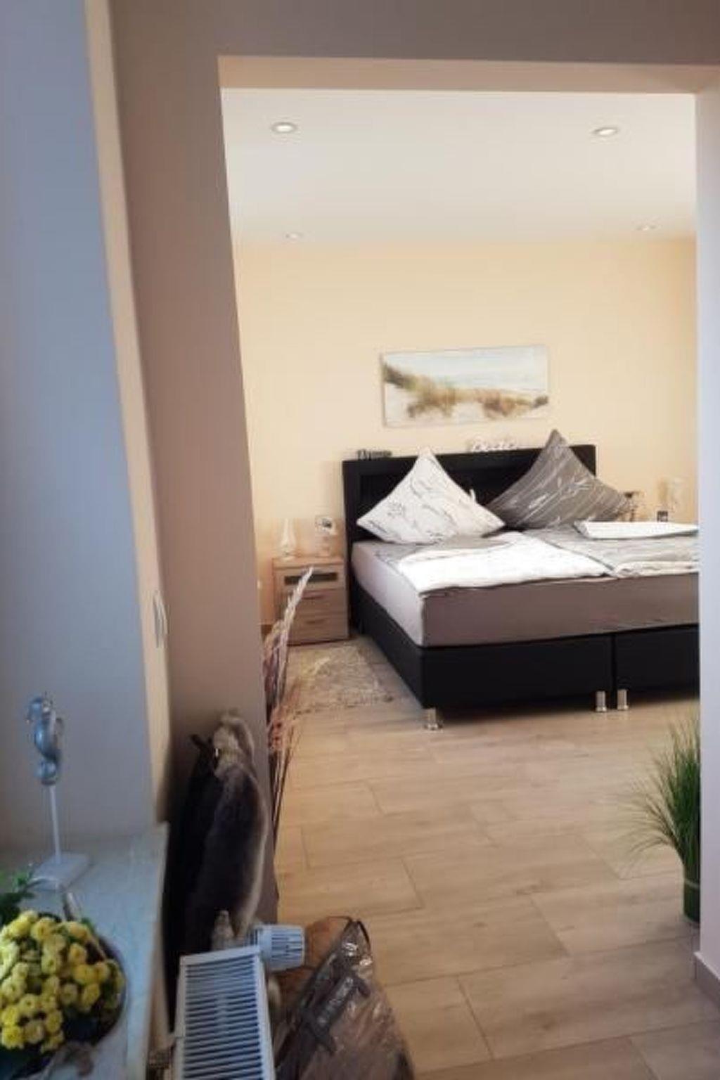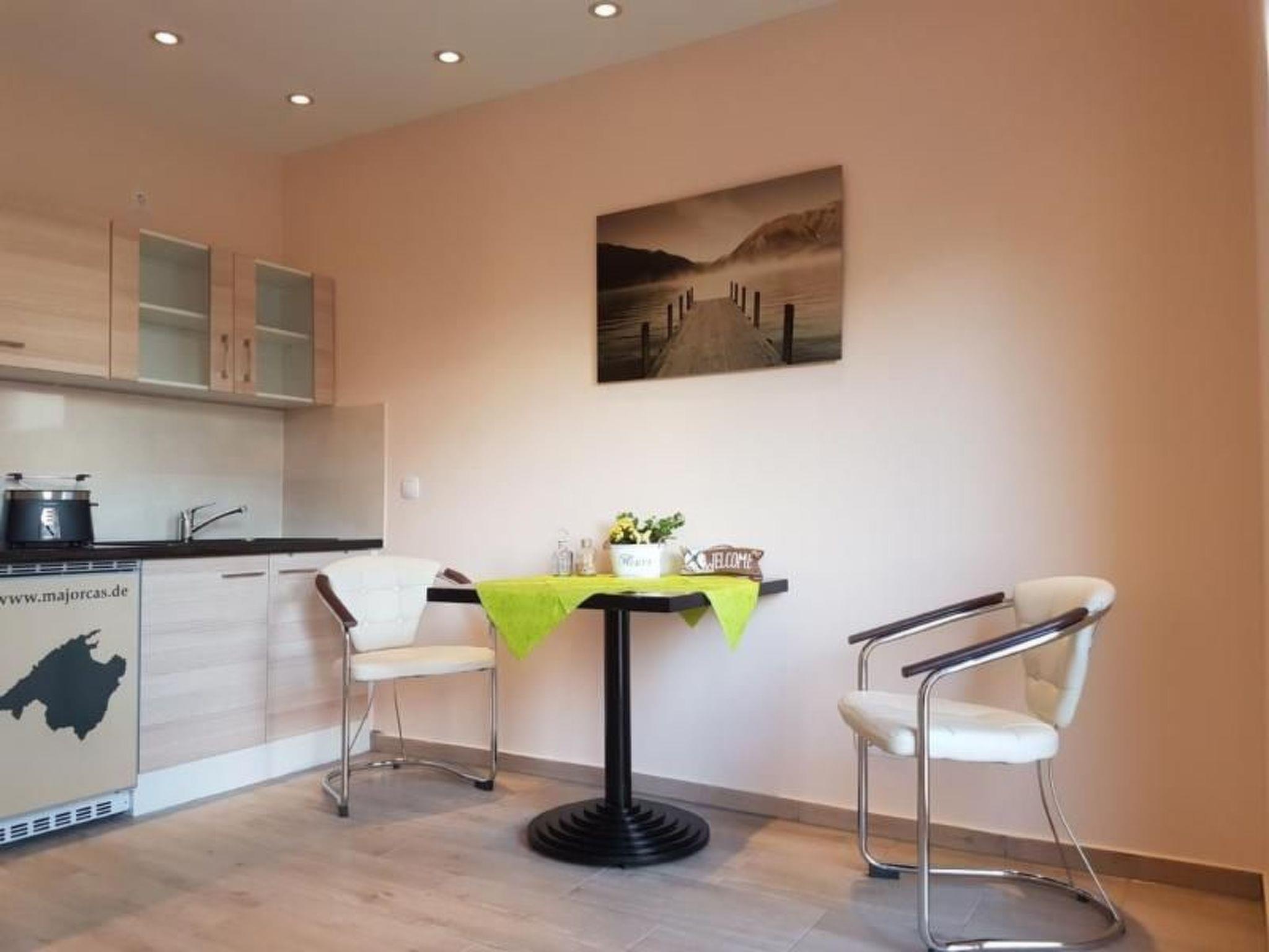 Inside, you will find freshly renovated flats that leave nothing to be desired. All rooms shine in modern splendour with LED downlights, walls in soft pastel shades and porcelain stoneware floors in a light oak look. The completely renovated furnishings also include high-quality box-spring beds for a restful night's sleep, a kitchen with modern amenities such as a 2-ring hob and a fridge, as well as a luxurious bathroom. Here you will find large-format tiles in a light beige colour, a floor-to-ceiling shower with rainforest function and safety glass shower cubicles for a sophisticated ambience.