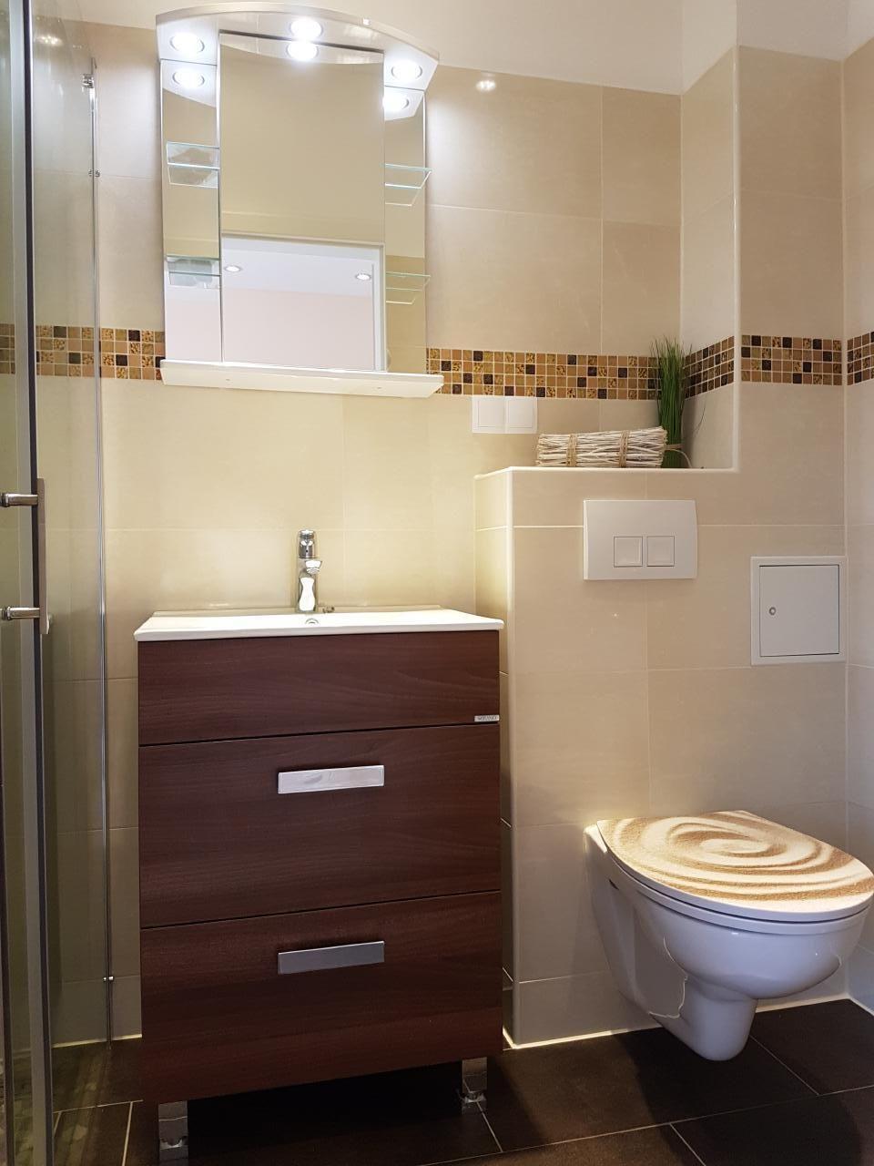 Inside, you will find freshly renovated flats that leave nothing to be desired. All rooms shine in modern splendour with LED downlights, walls in soft pastel shades and porcelain stoneware floors in a light oak look. The completely renovated furnishings also include high-quality box-spring beds for a restful night's sleep, a kitchen with modern amenities such as a 2-ring hob and a fridge, as well as a luxurious bathroom. Here you will find large-format tiles in a light beige colour, a floor-to-ceiling shower with rainforest function and safety glass shower cubicles for a sophisticated ambience.