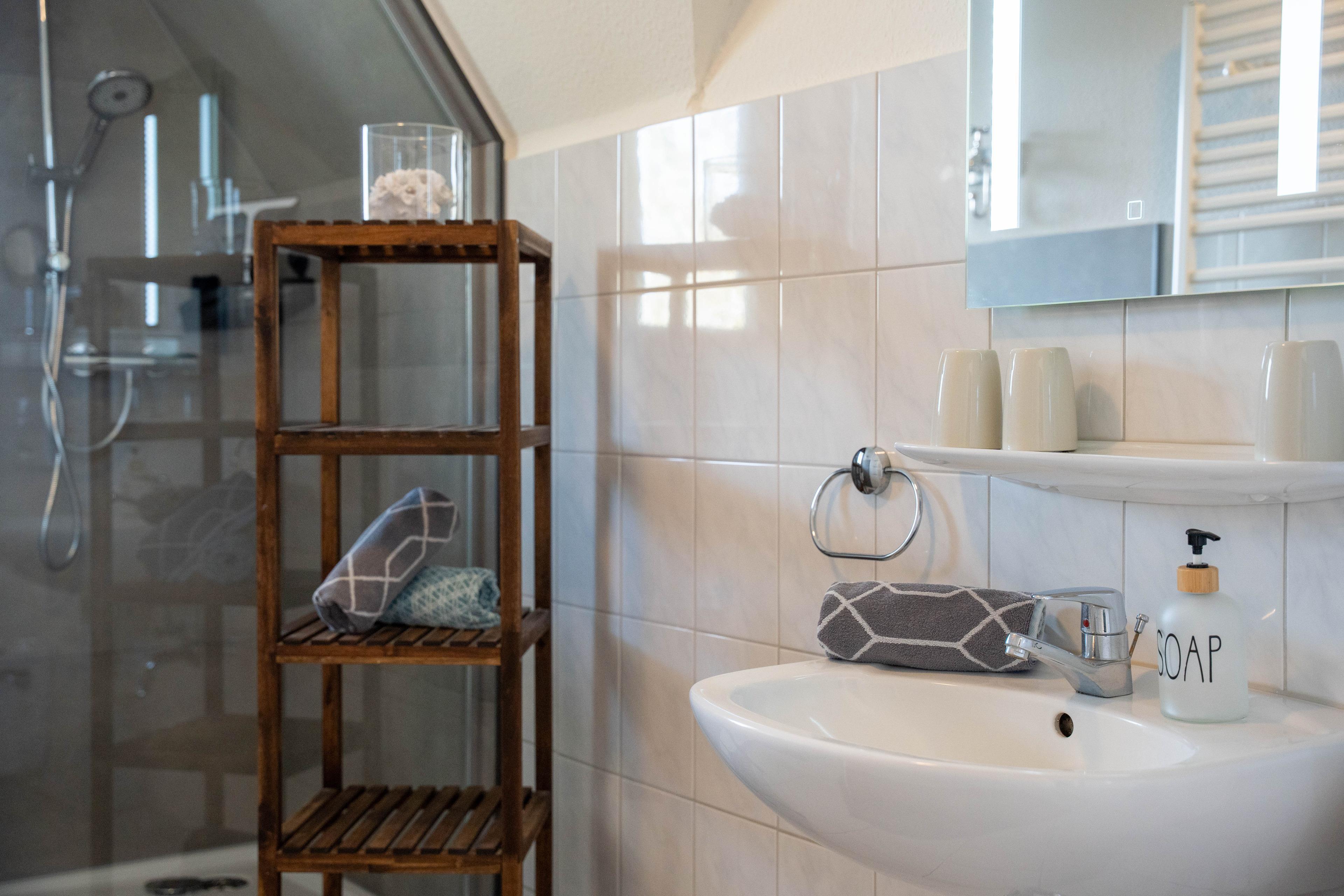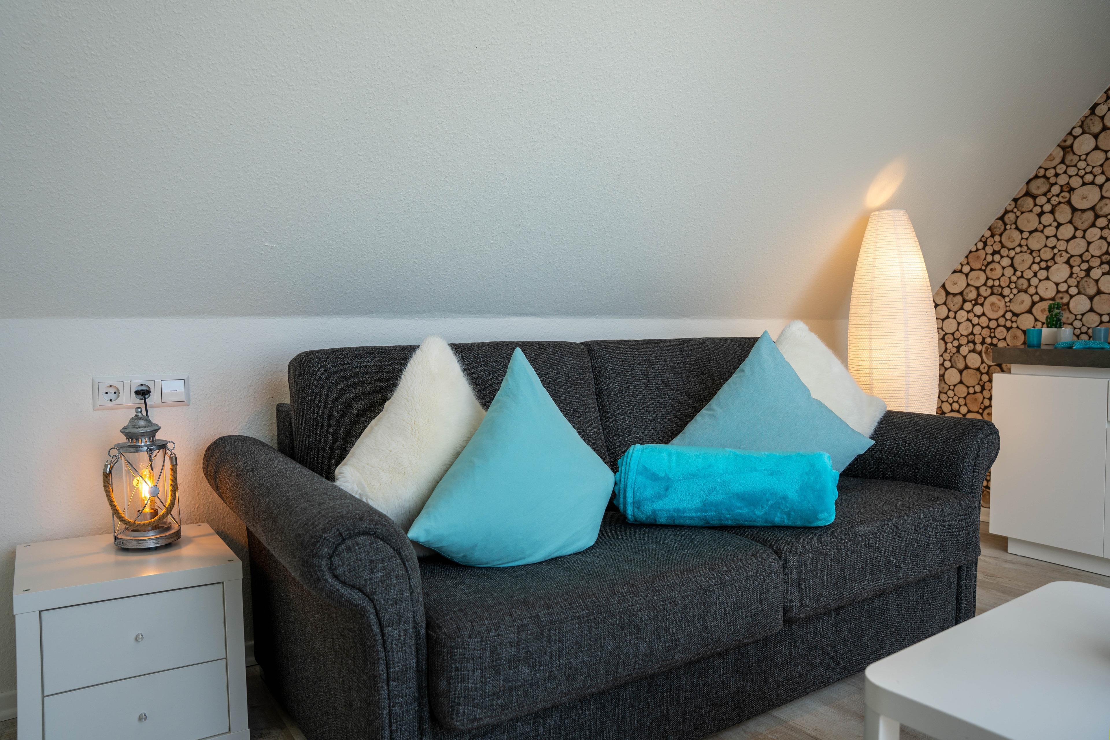 Geschirrtücher, Bettwäsche und Handtücher können angemietet werden. Unterstellmöglichkeiten für Fahrräder und Bollerwagen sind vorhanden. Eine zusätzliche Terrasse befindet sich auf dem Rasengrundstück. Als Freizeitangebot bieten wir Ihnen einen Kickertisch und eine Tischtennisplatte im Keller des Hauses zur freien Verfügung an. Waschmaschine, Trockner und Tiefkühler auf Anfrage.
