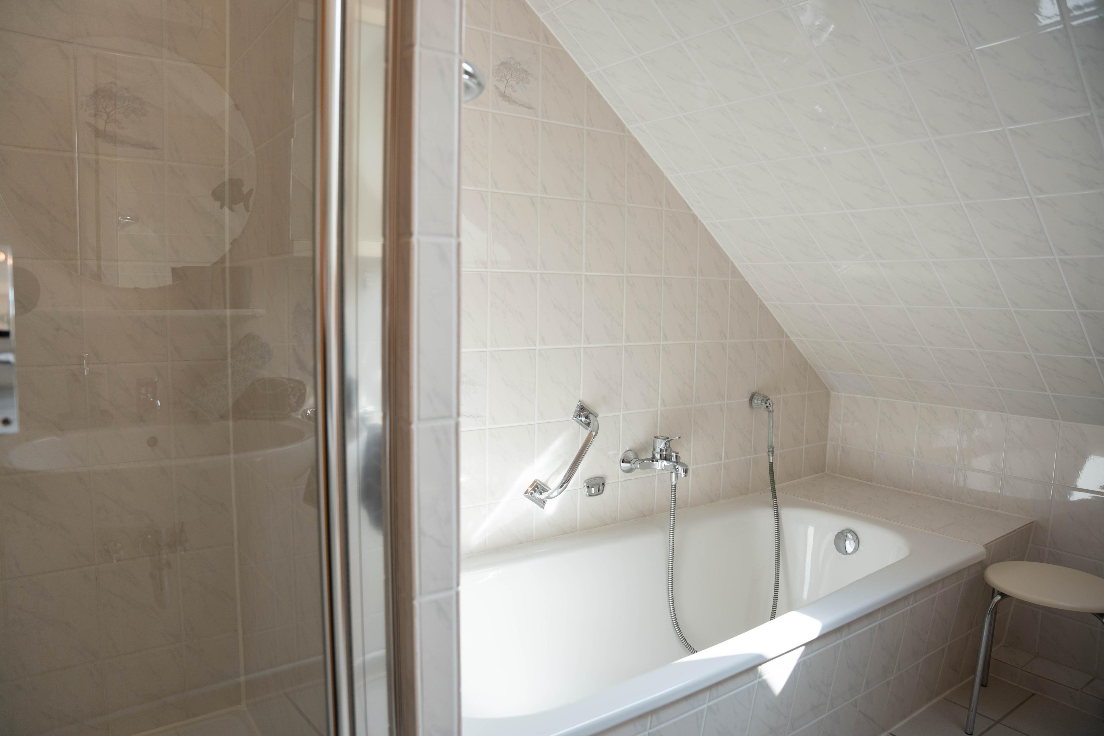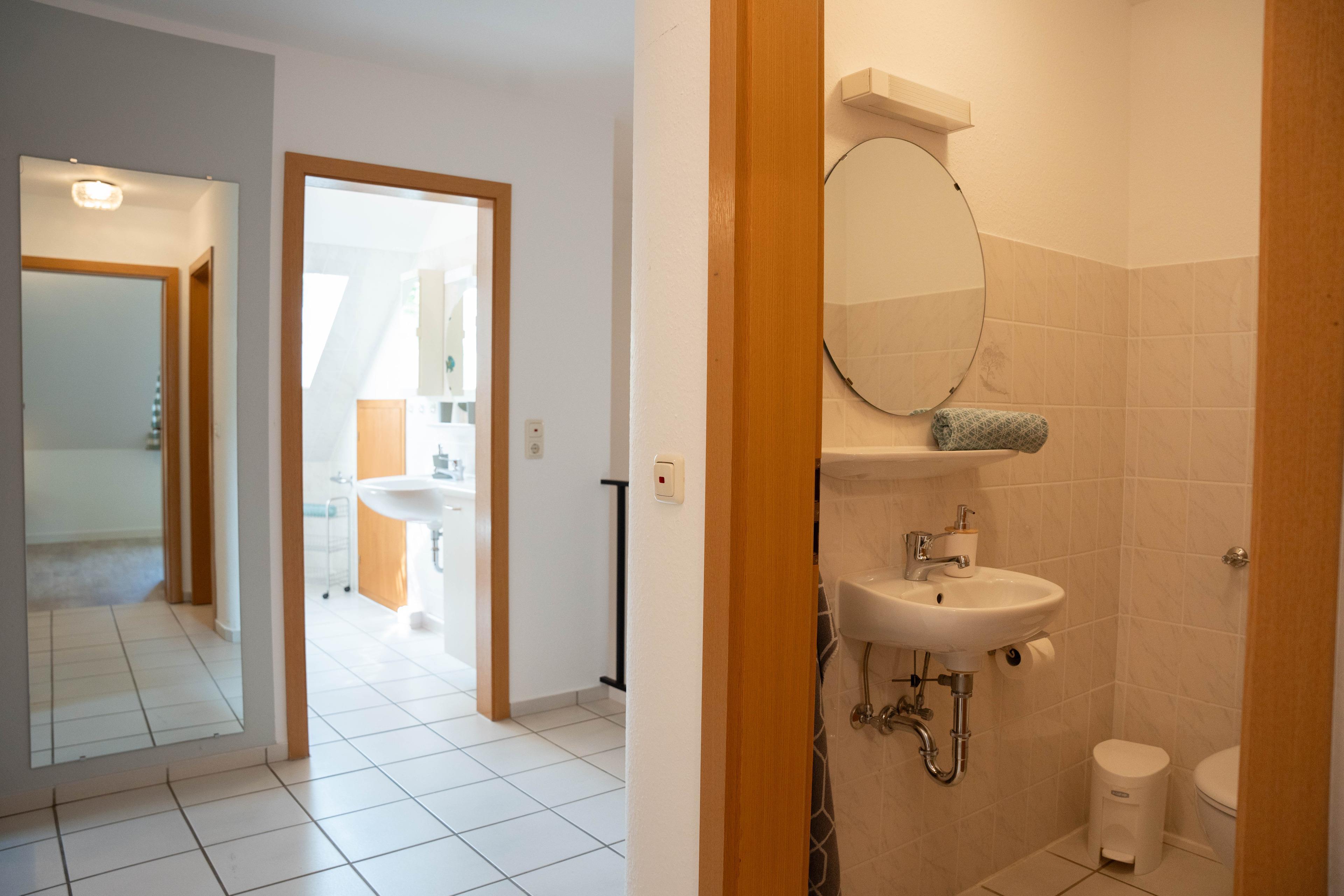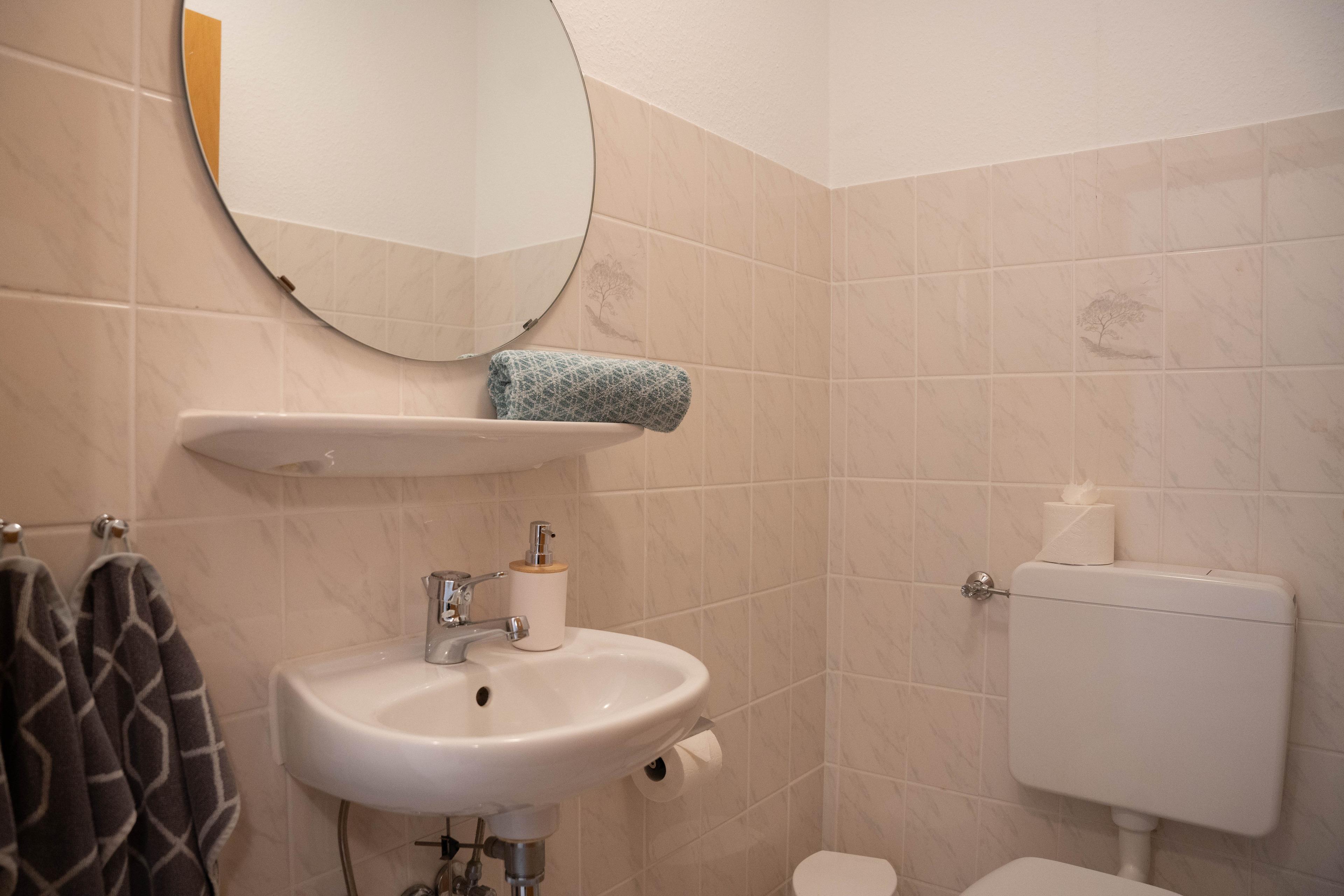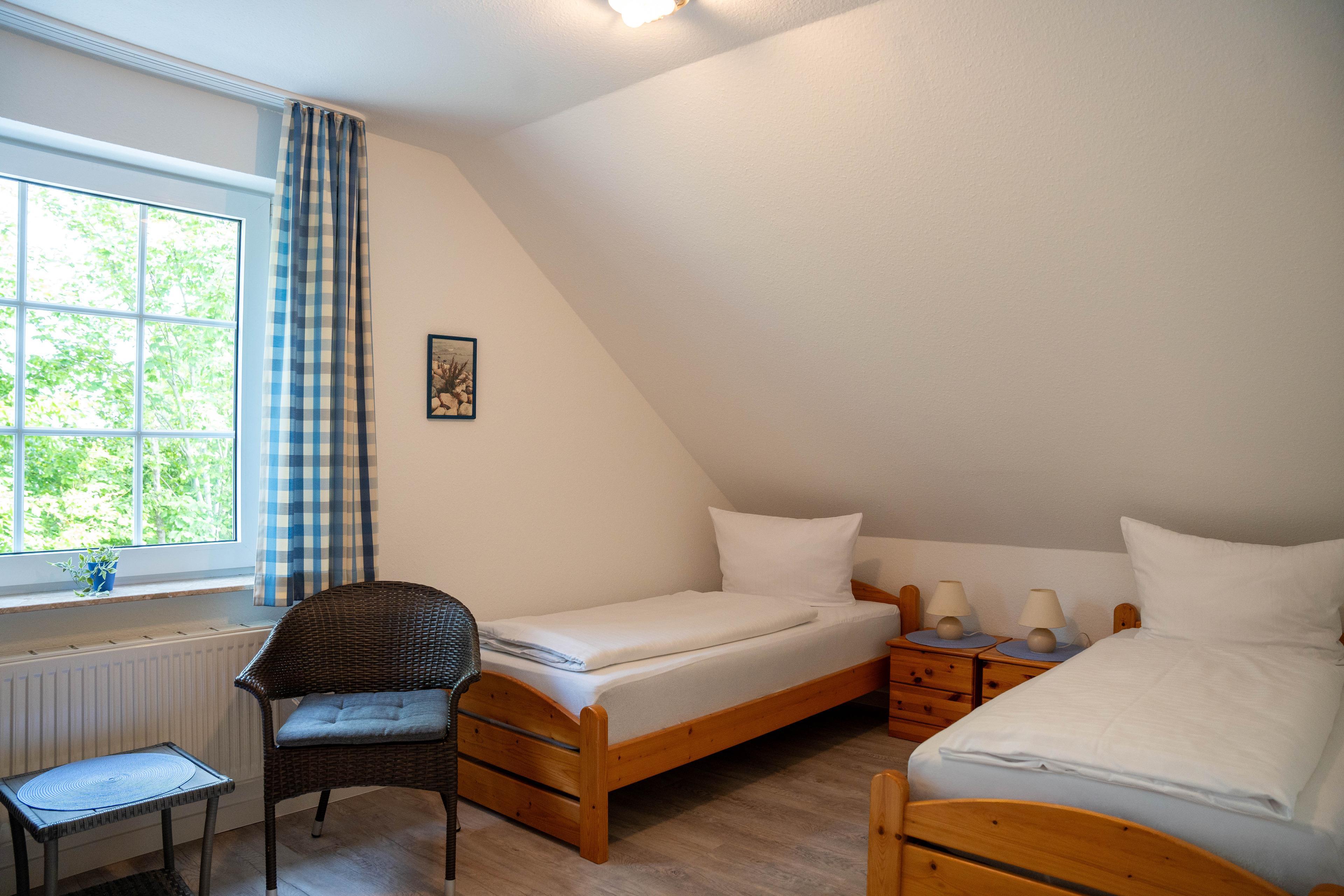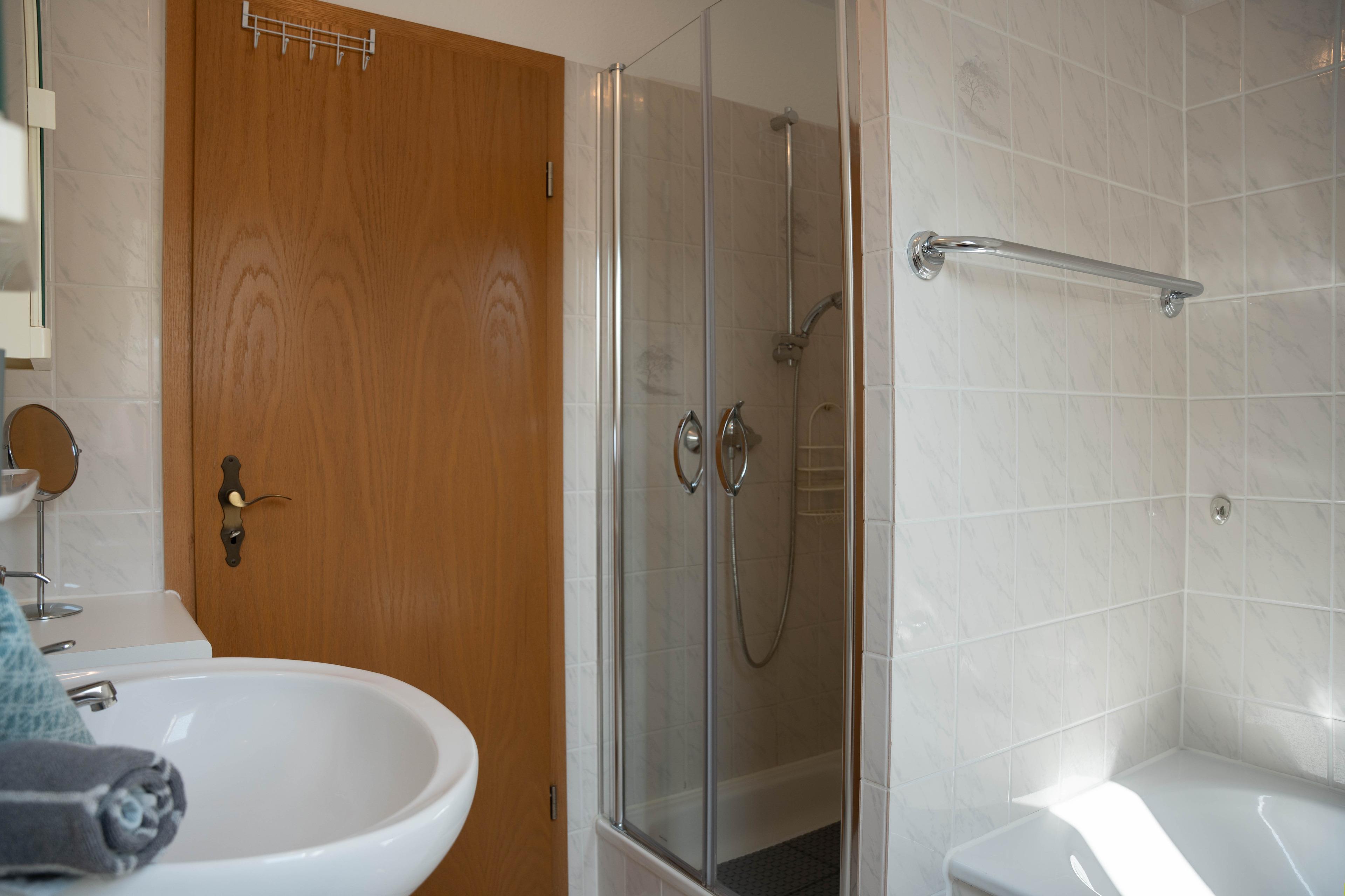 Aufgeteilt ist Ihr Ferienobjekt in Eingangsbereich mit separatem WC, einer gut ausgestatteten Küche mit kleinem Esstisch und 3 Stühlen, einem sehr großzügigen Wohnzimmer mit bequemer Couchgarnitur, einem Esstisch mit Sitzgelegenheit im Erdgeschoss. Vom Wohnzimmer aus, gelangen Sie auf die am Haus befindliche möblierte Terrasse und in den eingezäunten Gartenbereich. Im Obergeschoss der Doppelhaushälfte befinden sich 2 Schlafzimmer, eines mit Doppelbett (180x200cm) und kleiner Sitzgelegenheit und einem Schlafzimmer mit 2 Einzelbetten (90x200cm), sowie einem separatem WC mit Spiegel und Waschbecken und einem separatem Duschbad mit Badewanne, Dusche und Waschbecken. Alle Fenster sind mit Aussenjalousien verdunkelbar.