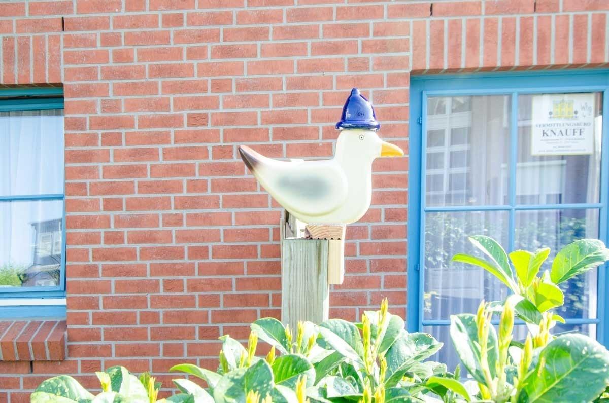 Unsere Möwe sitzt auf dem Sichtschutzzaun und freut sich auf euren Besuch.