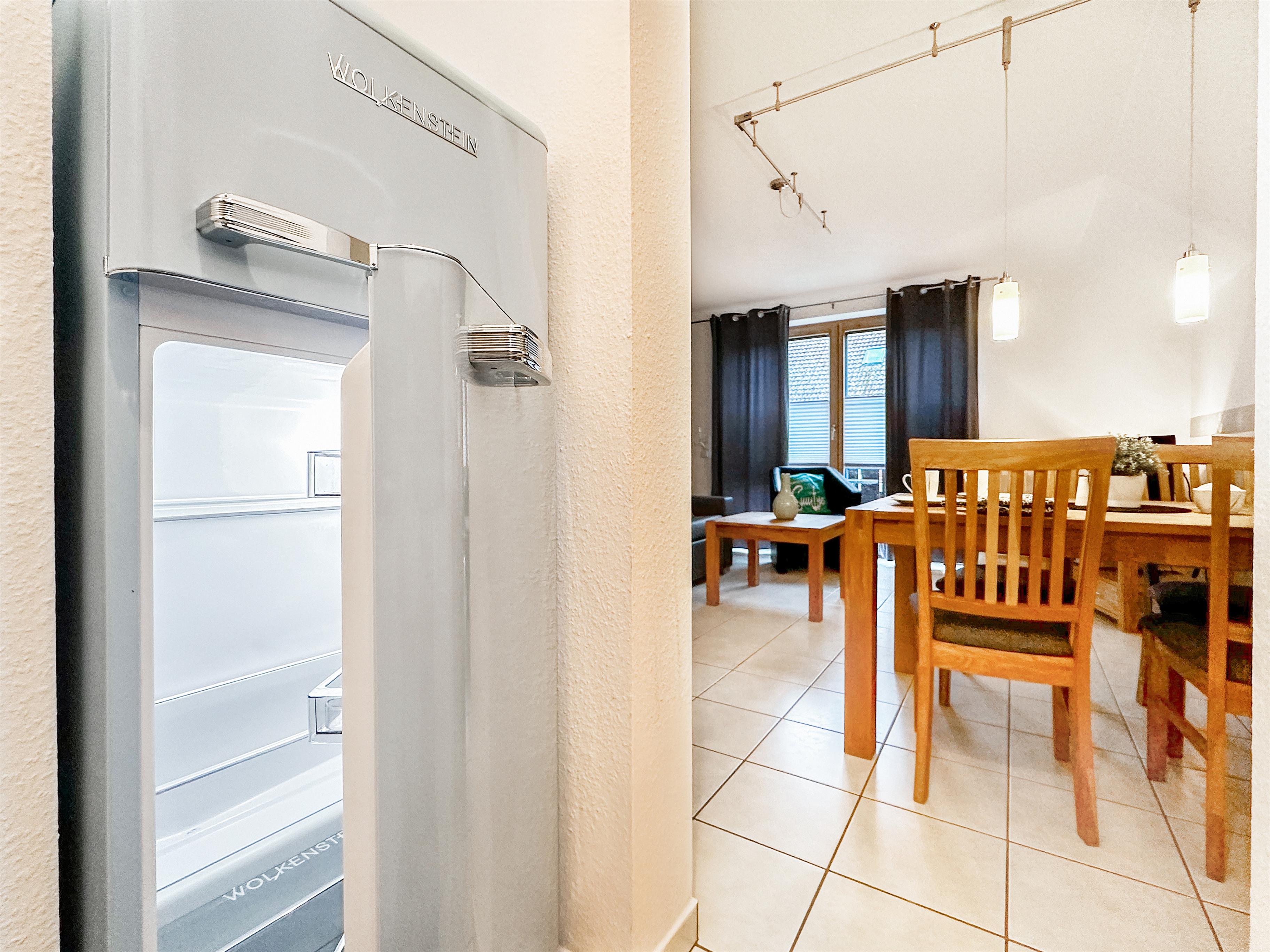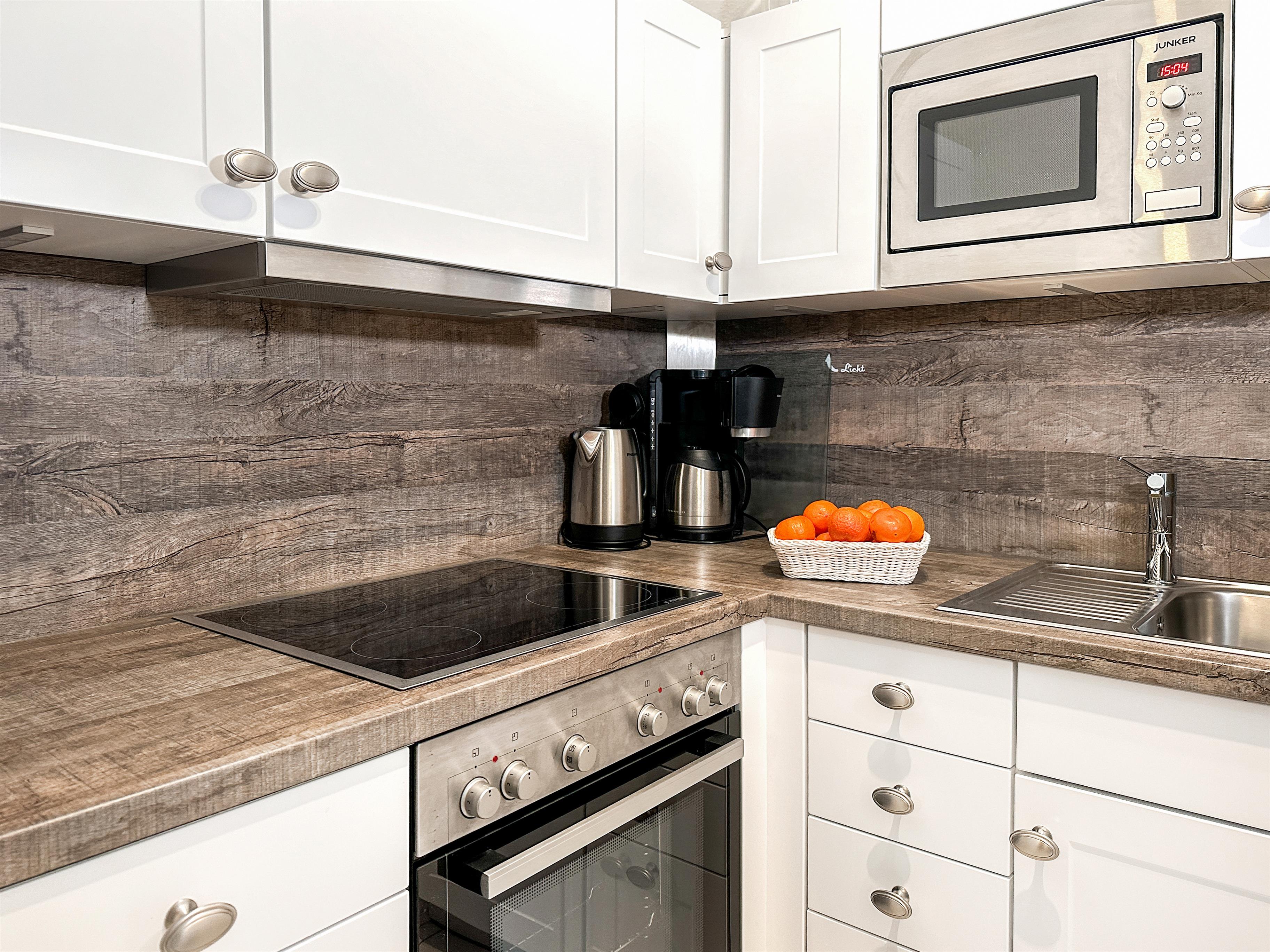 Die separate Küche wurde im April 2020 komplett erneuert und lässt keine Wünsche offen: Ceranfeld mit vier Kochfeldern, Heißtluftofen, Mikrowelle, Kaffeemaschine, Toaster, Eierkocher, Kühlschrank mit Gefrierfach und ein Geschirrspüler stehen Ihnen zur Verfügung.