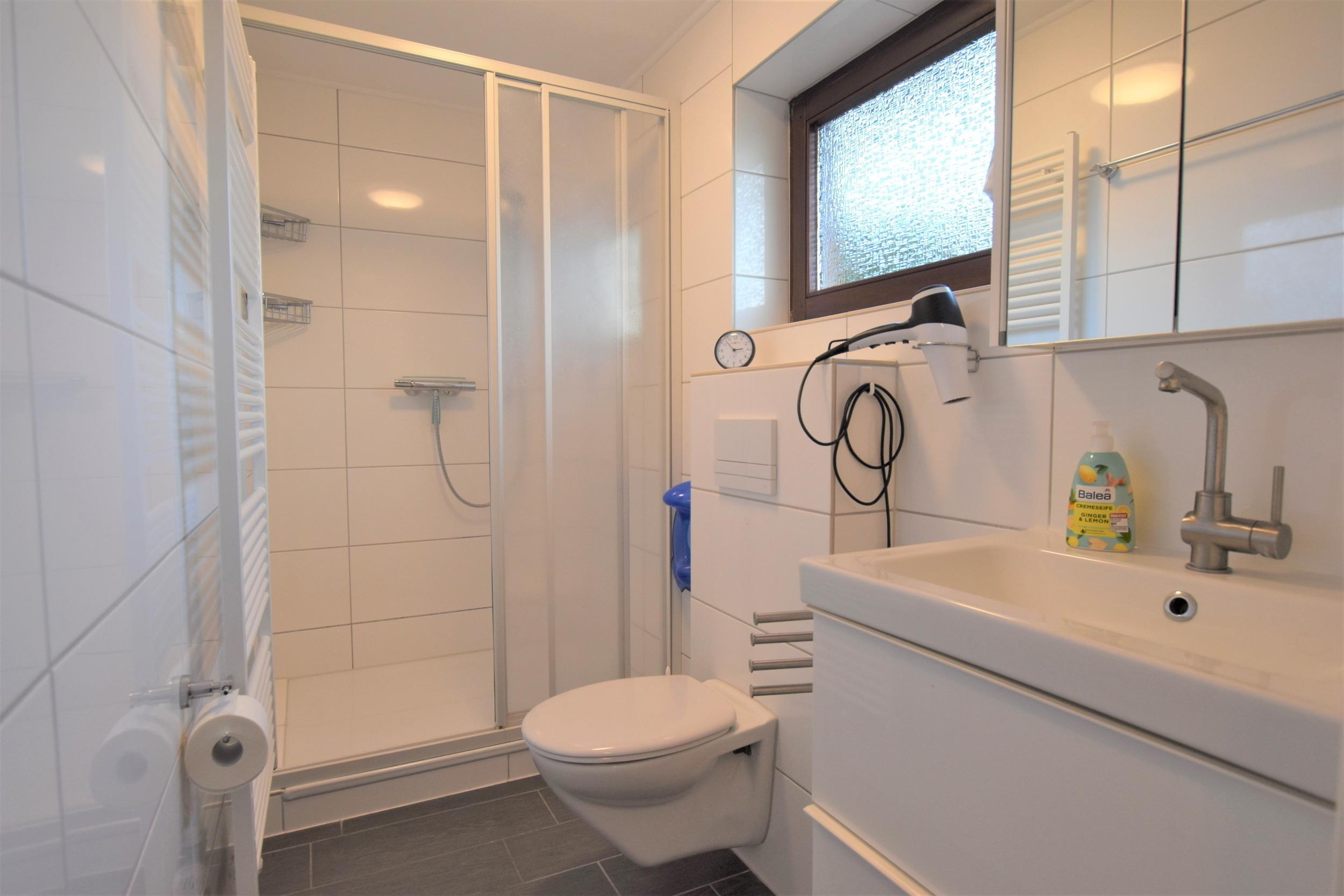 Eingangsbereich mit Garderobe. Duschbad mit WC, bodentiefer Dusche und Fenster. Schlafzimmer (1) Doppelbett (2*90*200cm), TV, Kleiderschrank, Nachttisch und Verdunklungsvorhänge. Vollausgestattete Küche mit Tresen und einer separaten Sitzgruppe. Großes Wohnzimmer mit gemütlicher Sitzgelegenheit, Stubentisch, TV, Blu-ray Player, Radio, Esstisch mit Stühlen für 8 Personen und direkter Zugang zum eingezäunten Garten mit bestuhlter Terrasse.