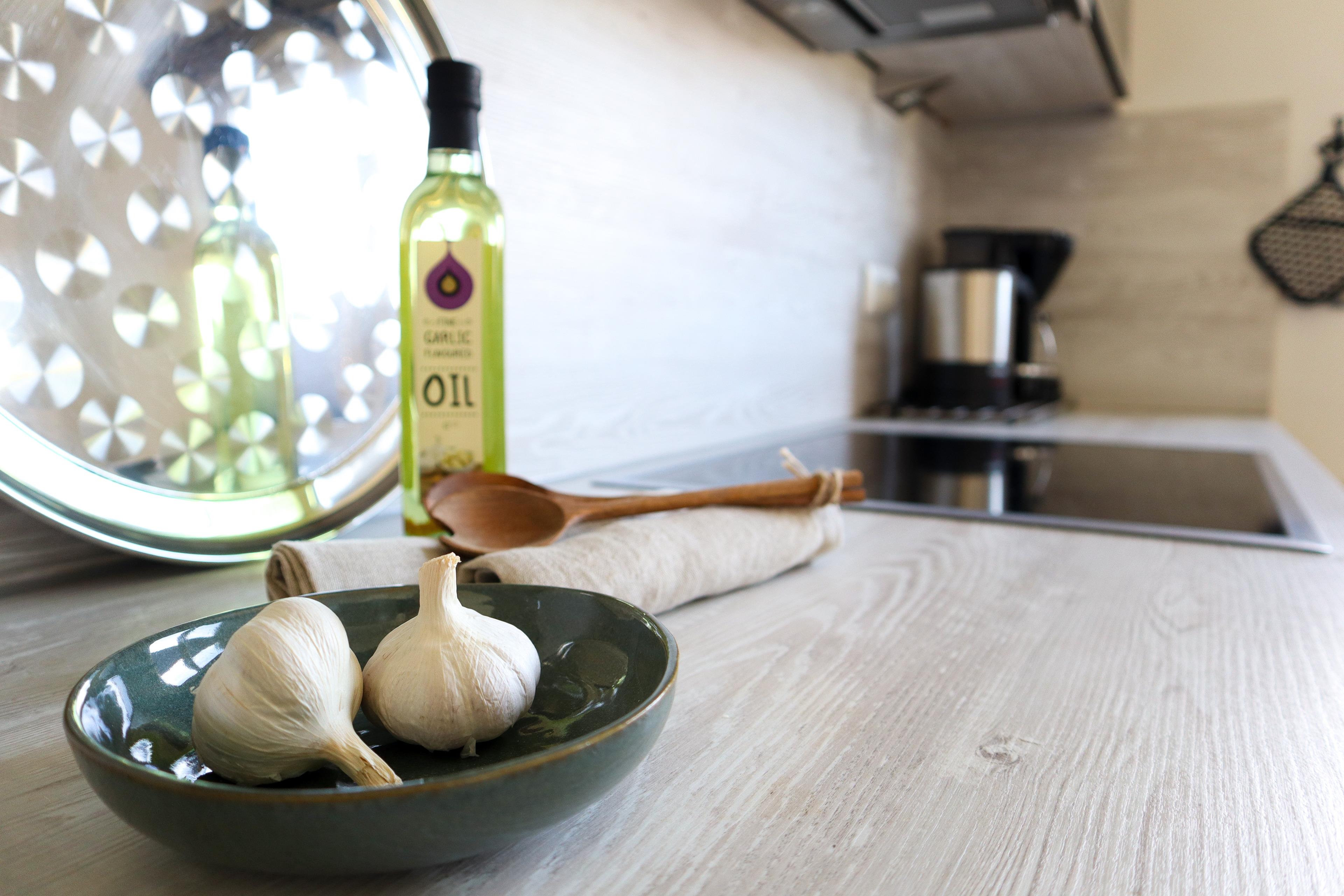 Die voll ausgestattete Wohnküche bietet jeglichen Komfort: Spülmaschine, Kaffeemaschine, Toaster, Wasserkocher, Mikrowelle, Töpfe, Pfannen, Geschirr, Besteck etc.