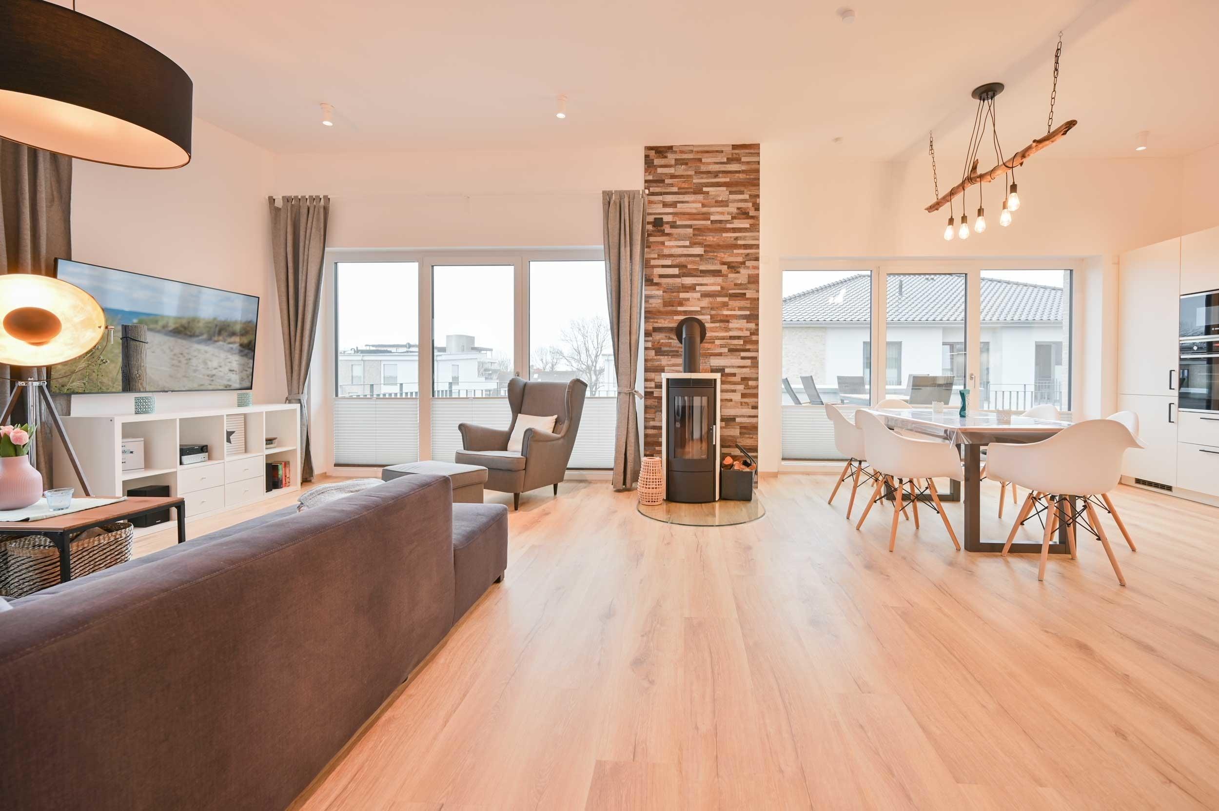 Ein Kaminofen sorgt auch in der kälteren Saison für Behaglichkeit, wenn draußen die Ostsee ihre wilde Seite zeigt.