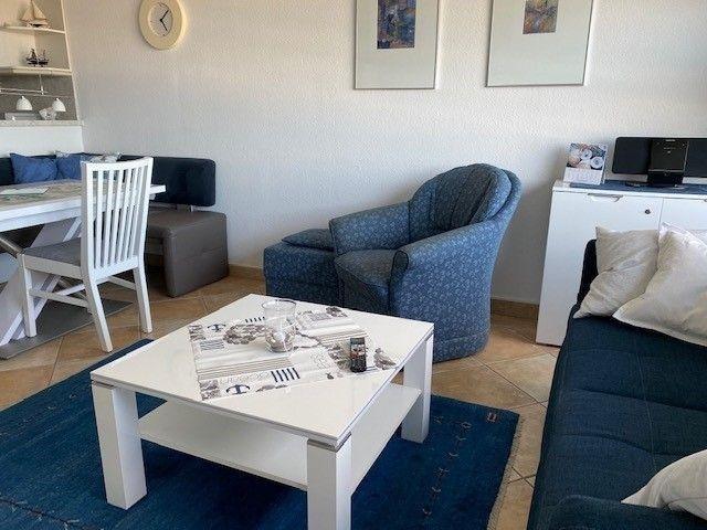 Das gemütliche Wohnzimmer ist mit einer Sitzgruppe und einer Essecke ausgestattet. Die gut ausgestattete Küche ist durch einen Tresen vom Wohnbereich getrennt. Im separaten Schlafzimmer befinden sich 2 Einzelbetten. Das schöne Bad zeichnet sich besonders durch die annähernd ebenerdige Dusche aus.