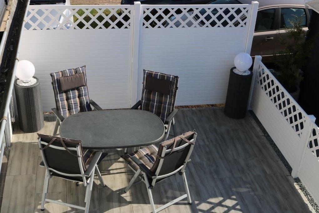 Genießen Sie die sonnigen Stunden auf der Terrasse mit hochwertigen Gartenmöbeln und Grillgelegenheit.