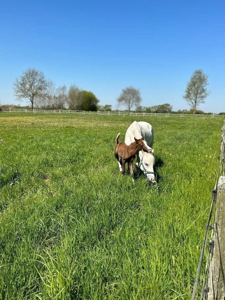 Der Holzbungalow liegt auf einem schönen Reiterhof, abseits der Hofanlage mit Blick auf die Wiesen.