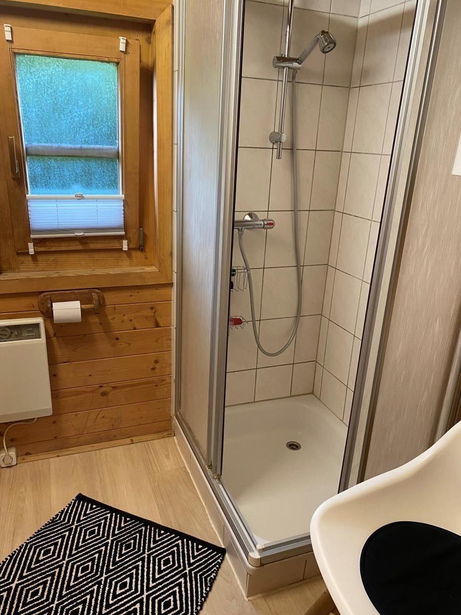 Der Bungalow besteht aus einem gemütlichen Wohnzimmer mit Sitzecke ( Schlafsofa ) und einem Essbereich für 4 Personen. Von dem Wohnzimmer aus geht eine steile Treppe unter das Dach, wo sich das Doppelbett befindet. Das Kinderzimmer verfügt über ein Etagenbett. An das Wohnzimmer grenzt die Küche mit Backofen und Ceranfeld und das Bad mit Dusche und WC. Der Bungalow hat in jedem Raum Fenster und ist hell und freundlich.