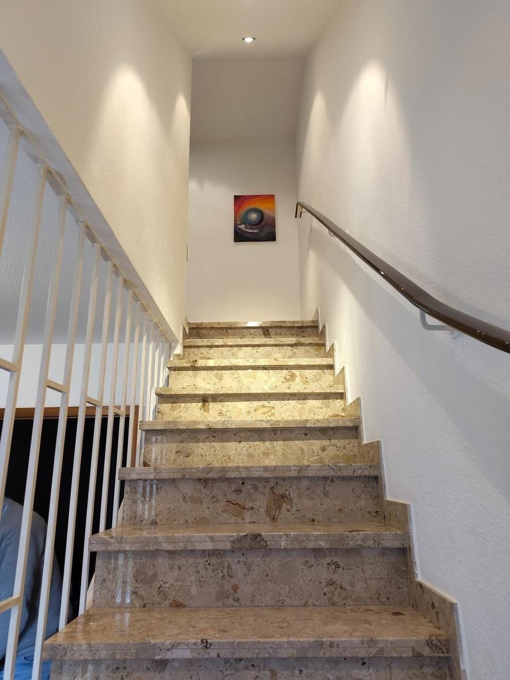Es besteht aus: Wohnraum mit Essecke, Farb-TV, Terrasse, Küche, Gäste-WC, 1. OG: Schlafzimmer mit Doppelbett, Schlafzimmer mit 2 Betten, Dusche, WC,