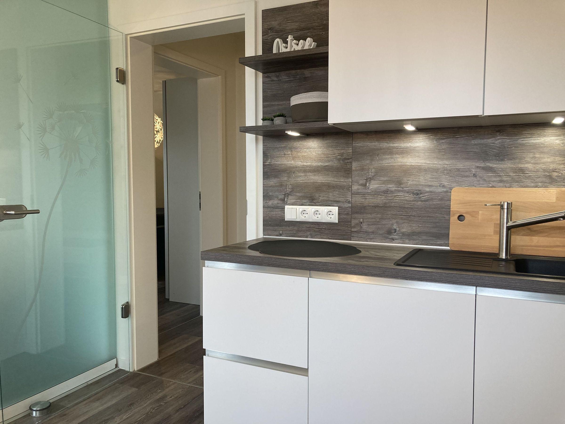 Die Ferienwohnung bietet eine moderne Küche, ein gemütliches Wohnzimmer mit Smart-TV und schnellem WLAN. Genießen Sie den Blick vom Balkon auf die malerische Landschaft. Das komfortable Schlafzimmer sorgt für erholsame Nächte. Das Badezimmer verfügt über eine ebenerdige Dusche und eine Waschmaschine. Perfekt für einen entspannten Urlaub.