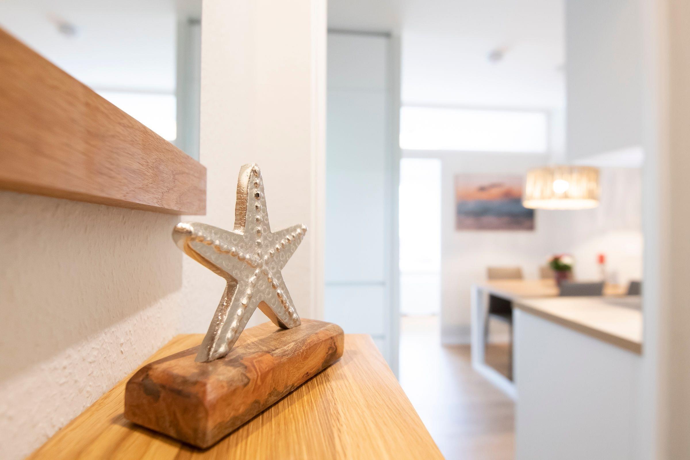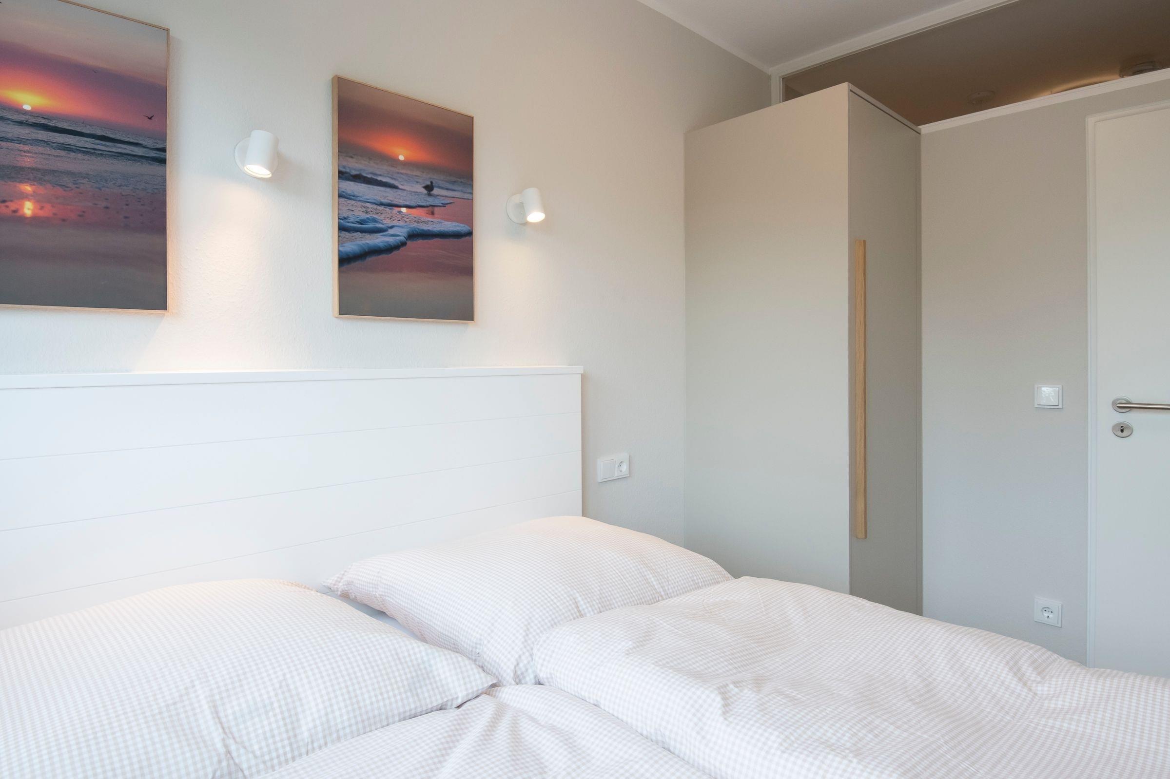 Die gesamte Einrichtung ist farblich perfekt aufeinander abgestimmt und wird Sie begeistern! Im kombinierten Wohn- und Schlafraum erwartet Sie ein komfortables Boxspring-Doppelbett (180x200 cm), ein gemütliches Ecksofa, ein Sessel sowie ein Flachbildfernseher. Die moderne Küche ist gut ausgestattet und verfügt über einen Esstisch, an dem Sie bequem mit 4 Personen speisen können. Im separaten Schlafzimmer mit französischem Doppelbett (140x200 cm) finden 2 weitere Gäste Platz. Das innenliegende Badezimmer mit WC und Dusche ist ebenfalls hell und modern eingerichtet. Auf dem möblierten Balkon können Sie die Nachmittagssonne oder den Sonnenuntergang genießen und den Tag in Ruhe ausklingen lassen. Diese Wohnung lässt keine Wünsche offen!