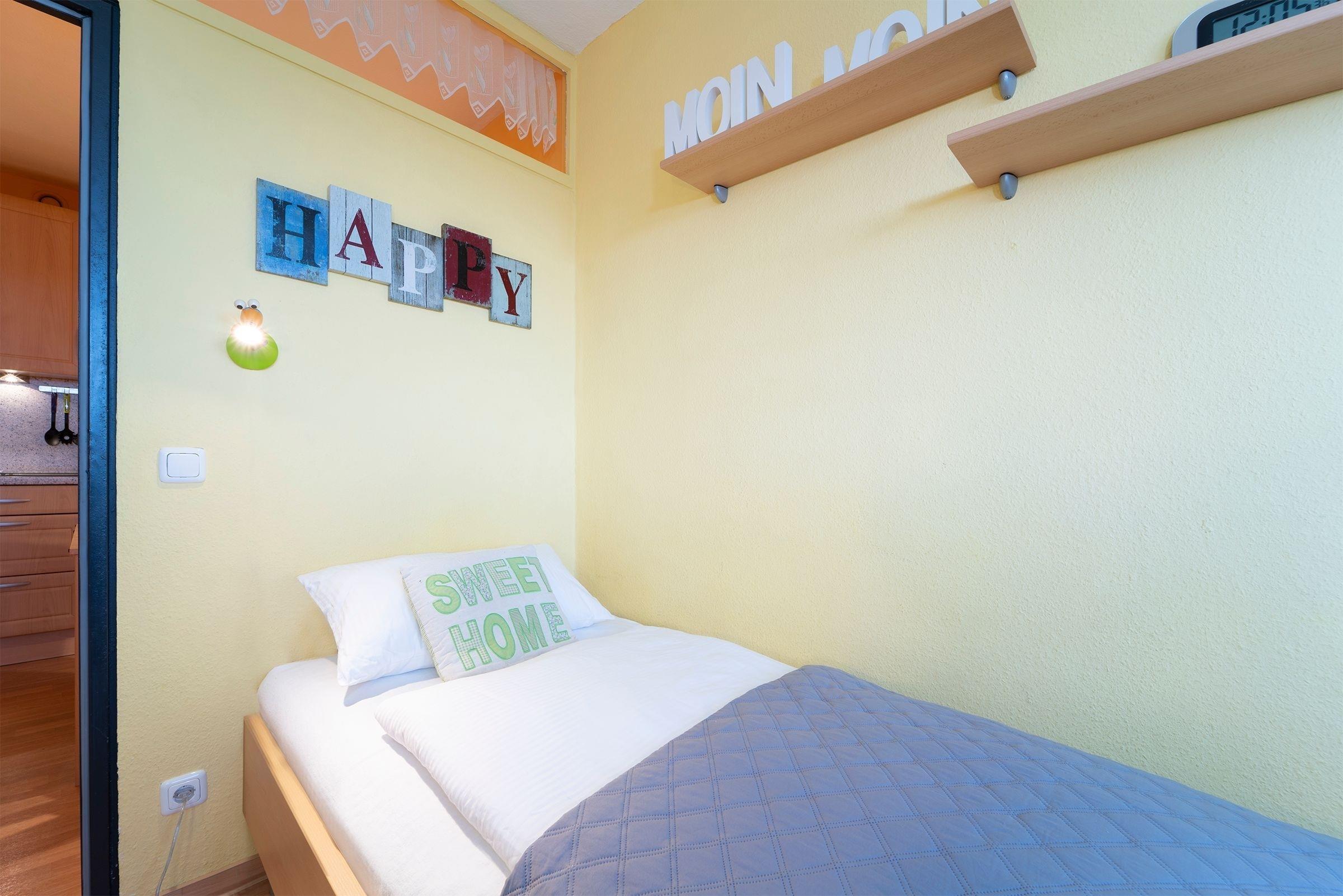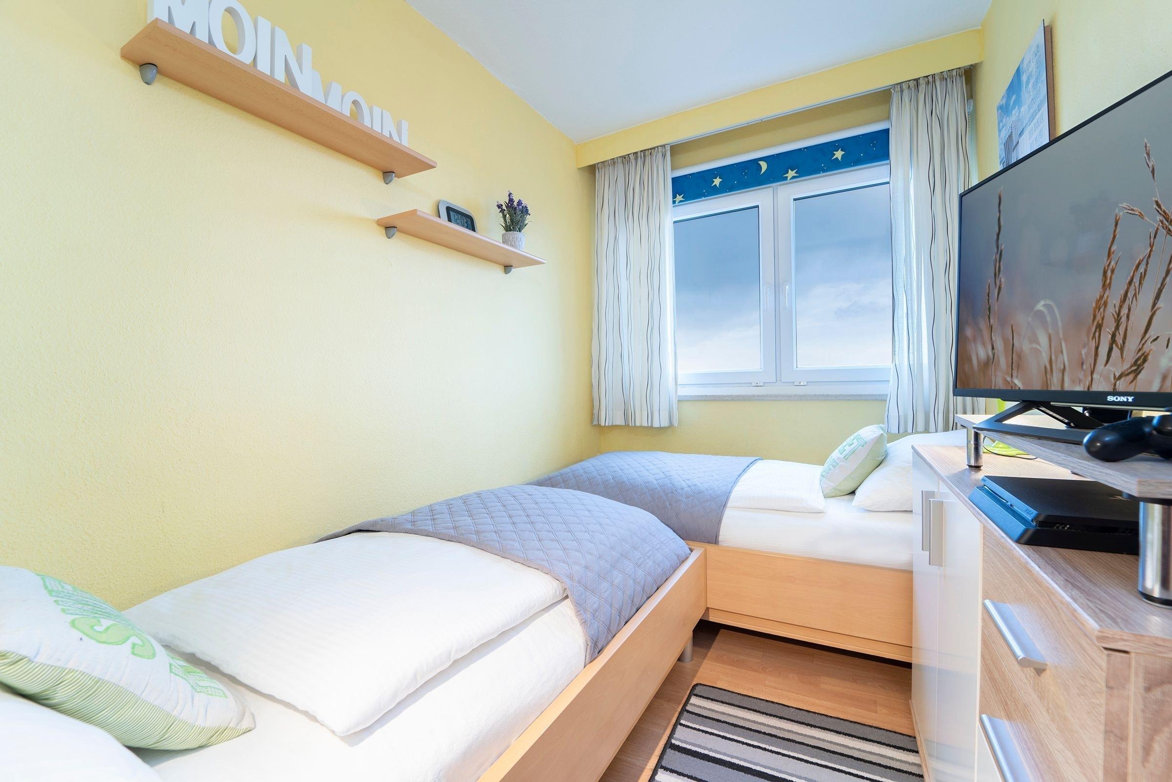 Schlafzimmer: 2 Einzelbetten (je 90x190 cm), TV, Verdunkelung (Rollos)