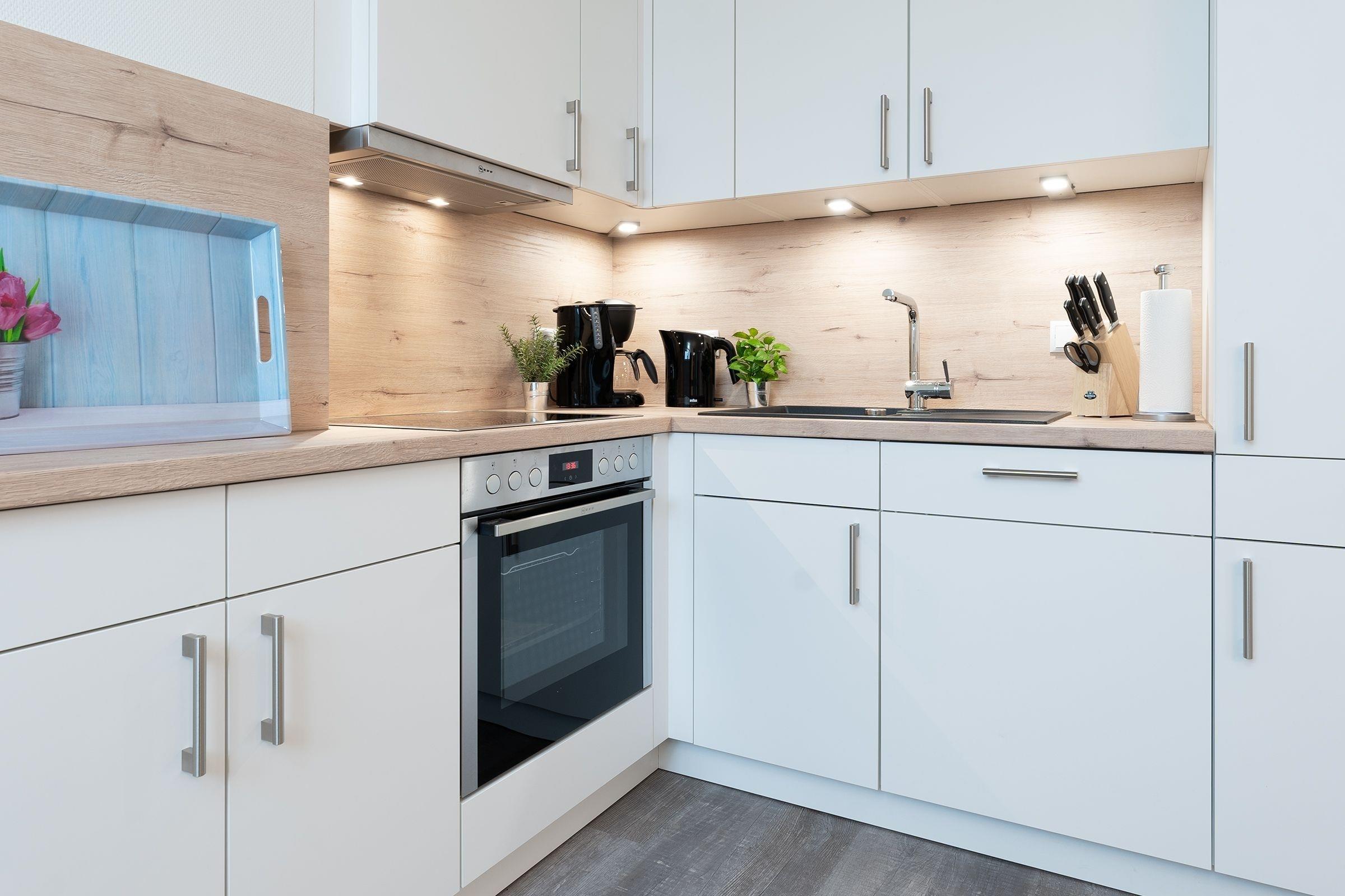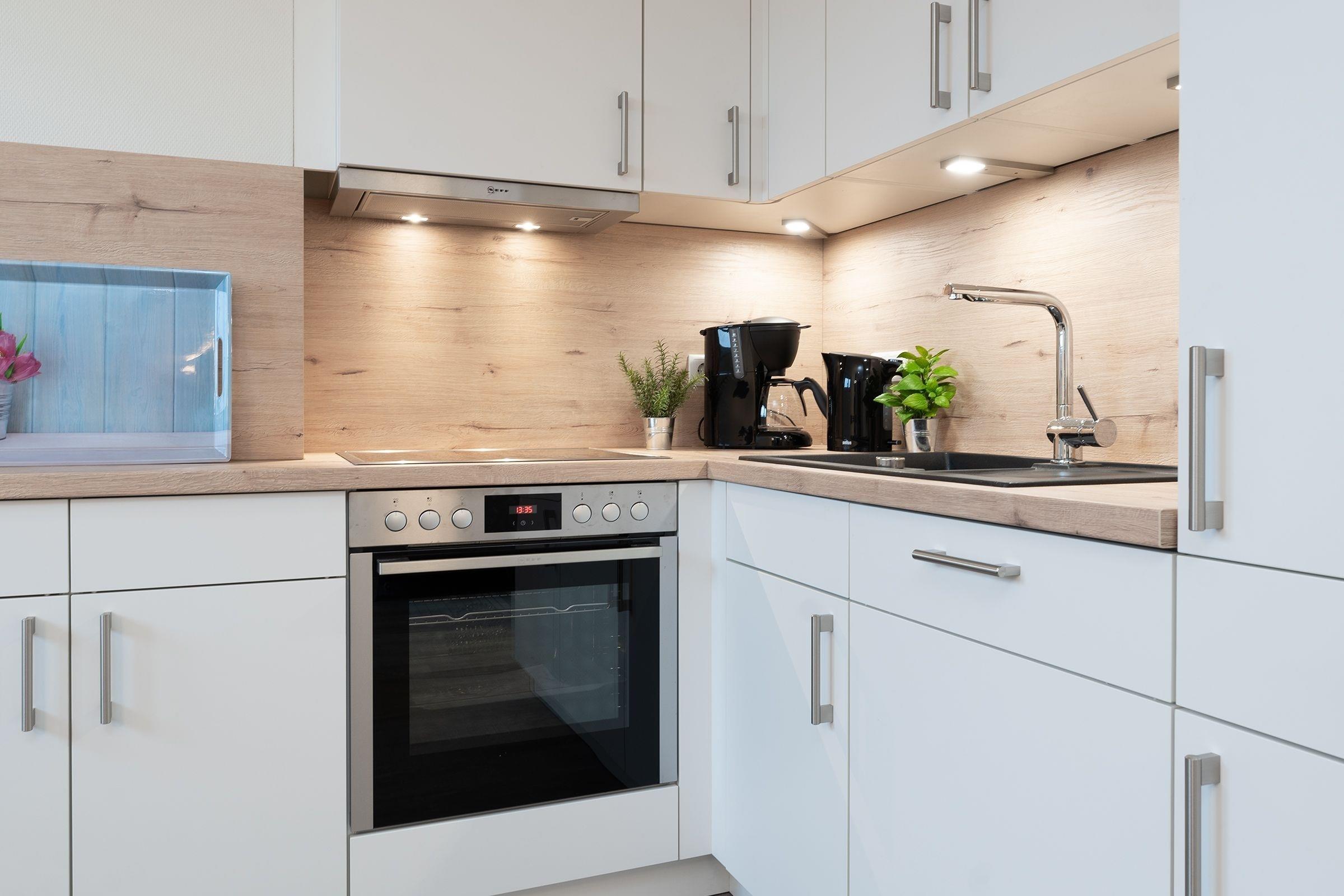 In der modernen Küche macht es Spaß zu kochen und mit frischen Zutaten vom Wochenmarkt in der Umgebung lassen sich leckere Köstlichkeiten zaubern.