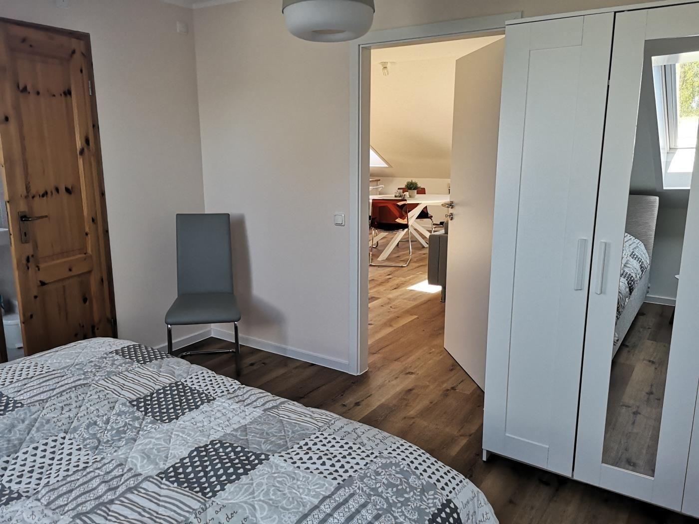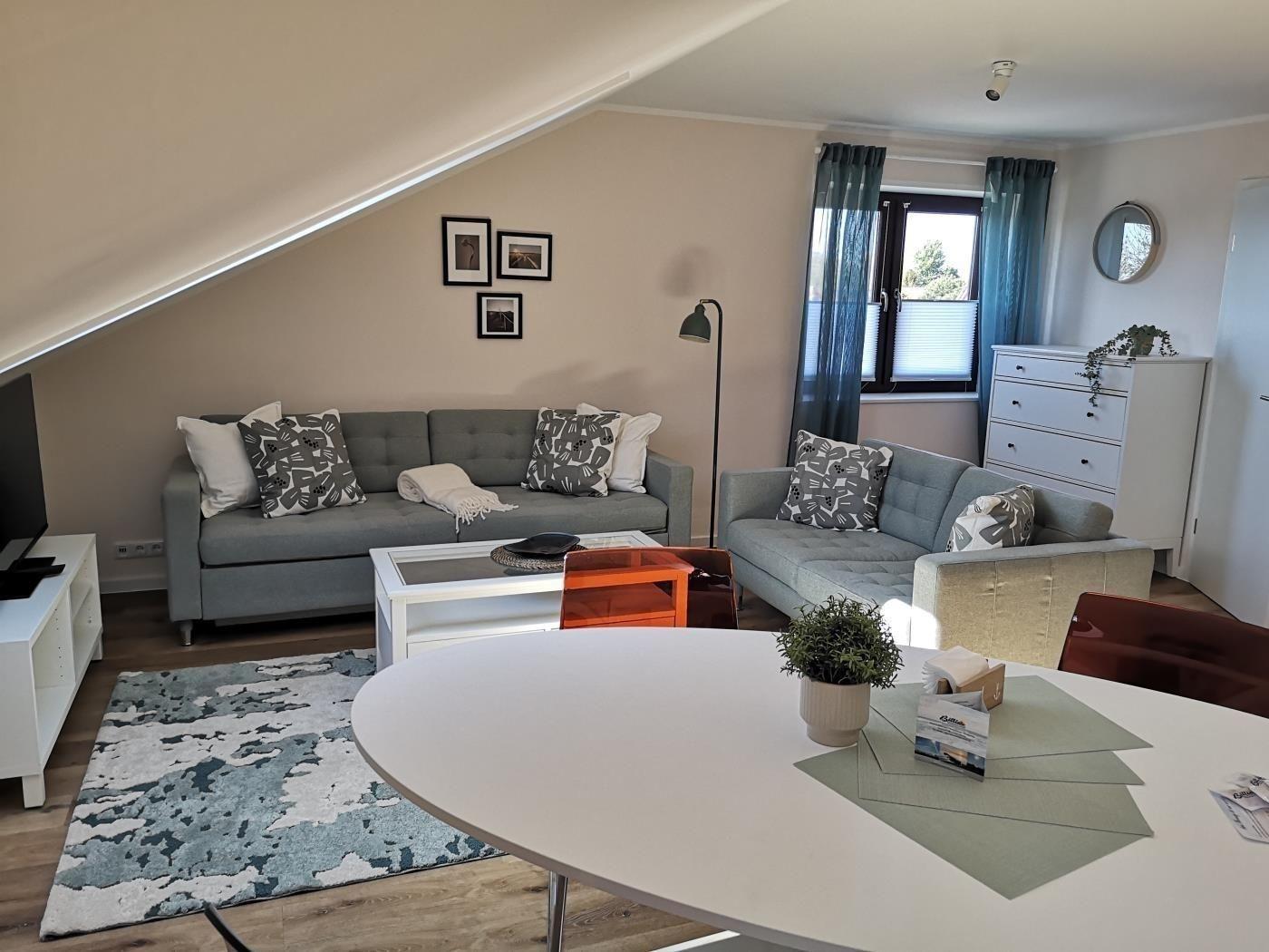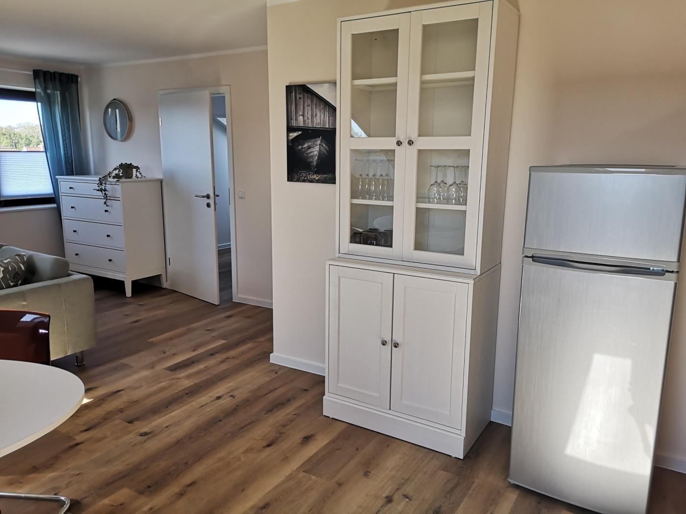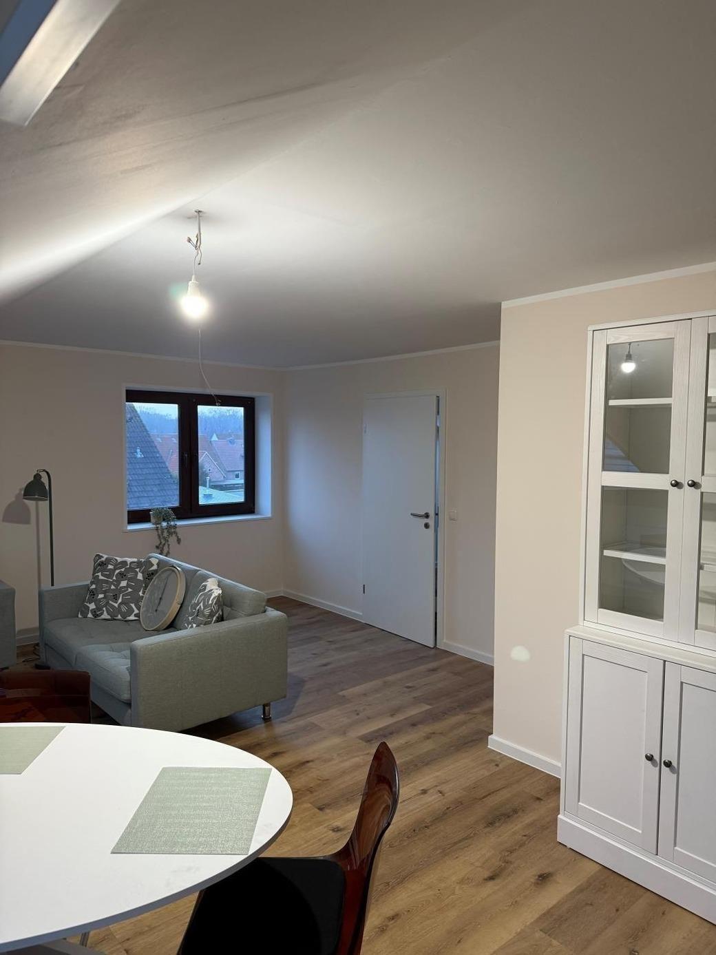 Die Wohnung 8 ist wie folgt aufgeteilt: Gemütliches Wohnzimmer mit Sofa ( auch als Schlafsofa nutzbar) TV und Esstisch, Küchnzeile, Schlafzimmer mit Doppelbett und angrenzenden Badezimmer. Die Wohnung ist über eine steile Holztreppe erreichbar ( 2. Etage) und für gehbehinderte Menschen nicht geeignet. Bitte beachten Sie hierzu die Bilder.