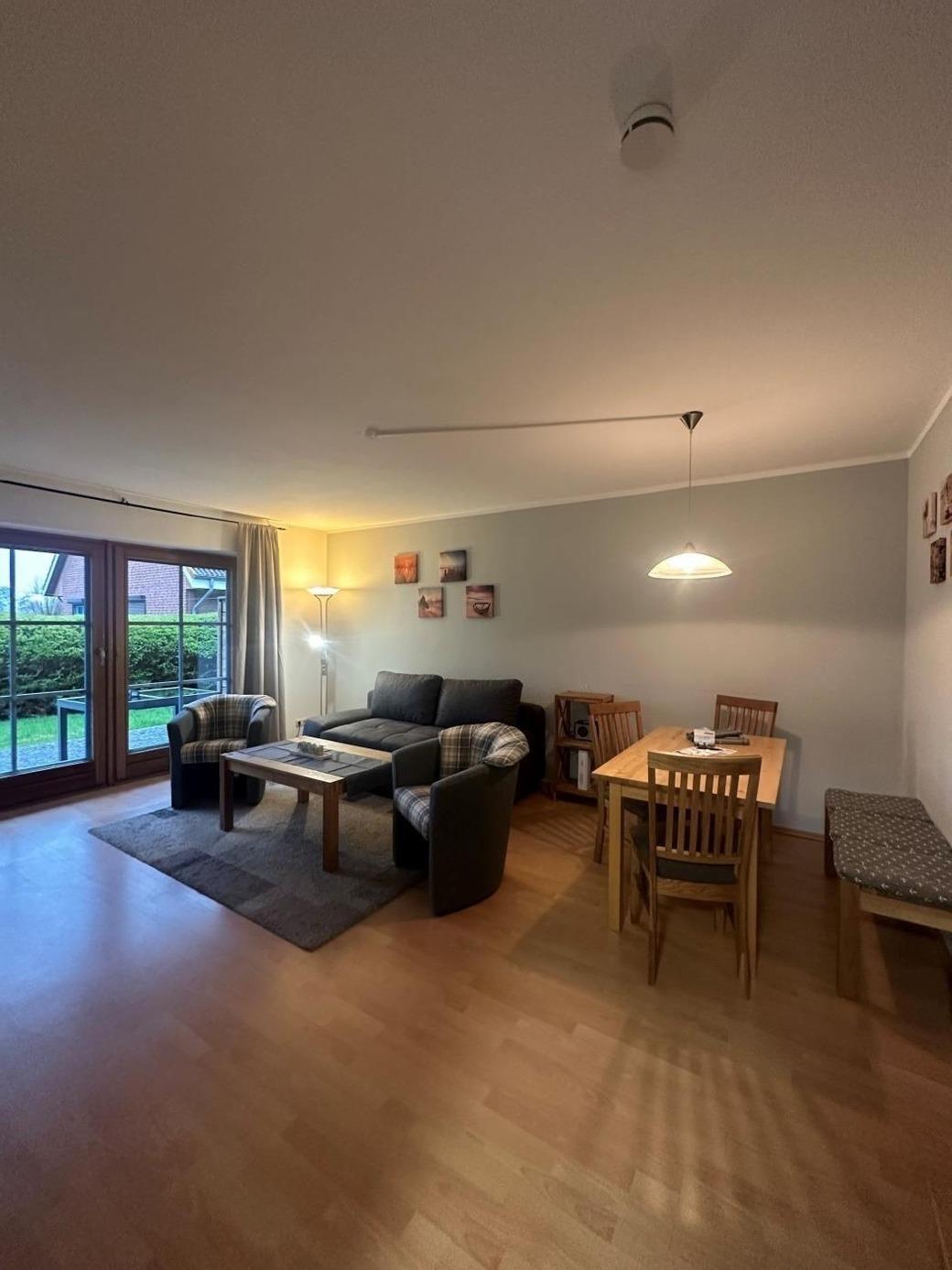 Die Ferienwohnung bietet eine moderne Ausstattung mit einem hellen Wohnraum, einer voll ausgestatteten Küche und einem gemütlichen Schlafzimmer. Große Fenster sorgen für viel Tageslicht und einen angenehmen Blick ins Grüne. Die zentrale Lage ermöglicht eine schnelle Erreichbarkeit zu lokalen Attraktionen und Freizeitmöglichkeiten. Ideal für einen erholsamen Aufenthalt in entspannter Atmosphäre.
