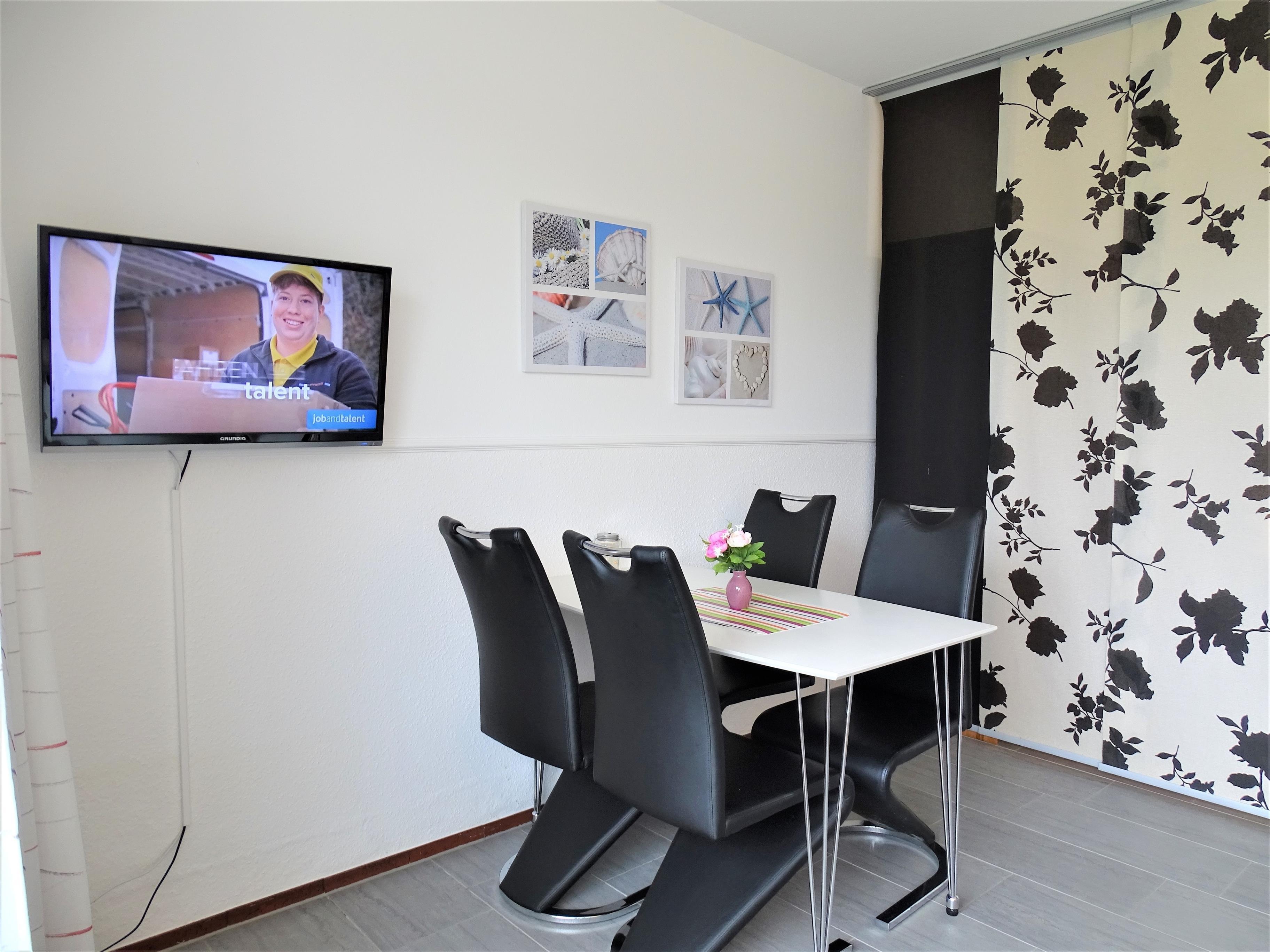 Die Wohnung besteht aus einem Wohn- Essbereich mit Zugang zur gemütlich möblierten Terrasse, Küche mit Herd und Geschirrspüler, Kinderzimmer mit 2 Einzelbetten, Duschbad, separatem WC, und vom Wohnbereich separiertem optisch abgetrenntem Schlafbereich. Aus dem Wohnzimmer und von der Terrassegenießen Sie den Weitblick über Felder. Zugleich ist die Ortsmitte und der Strand fußläufig in wenigen Minuten erreichbar.