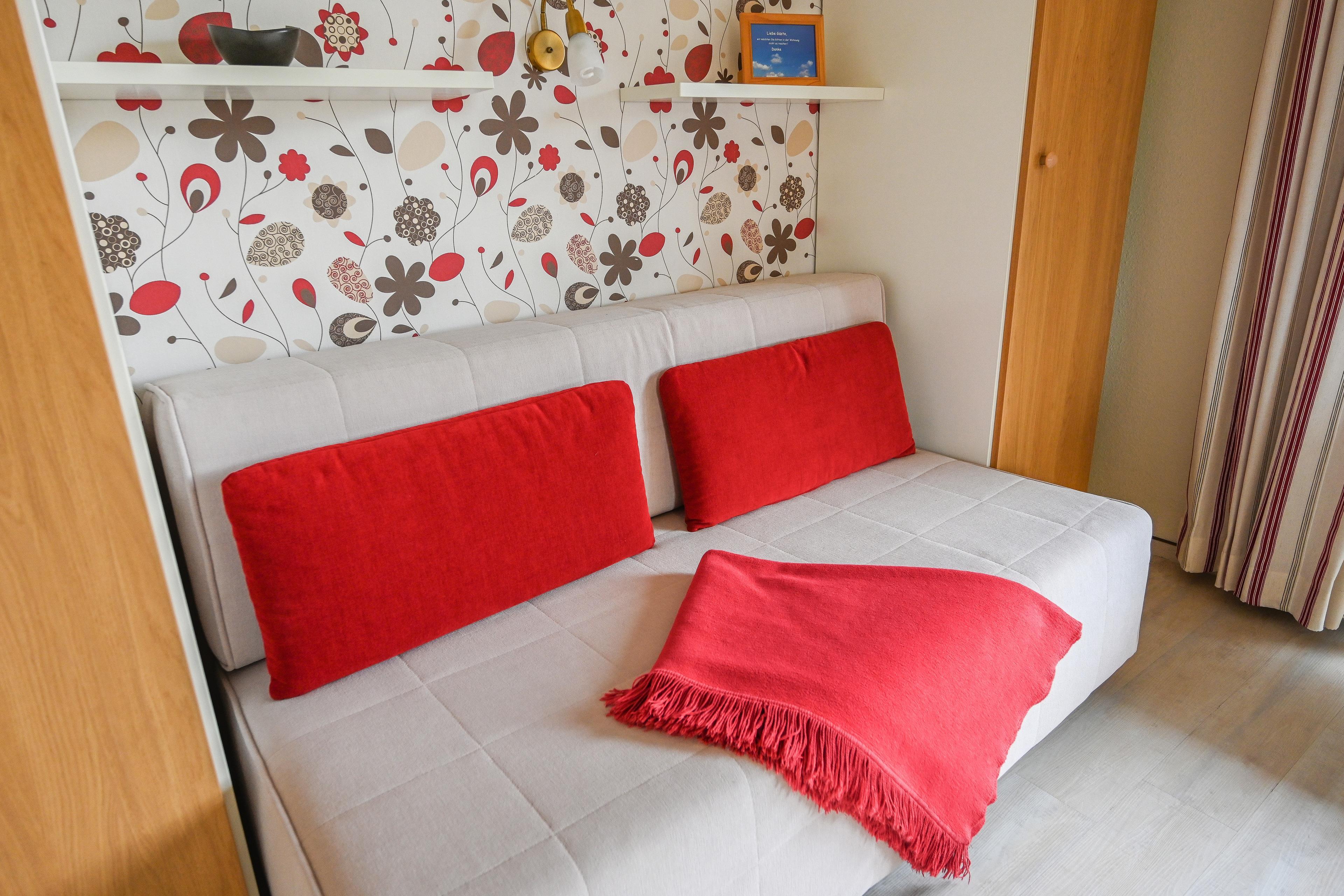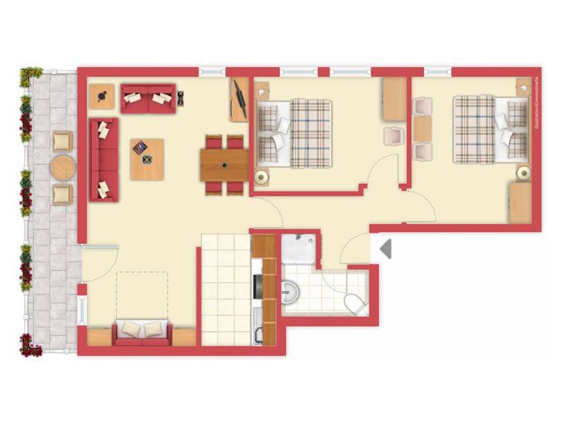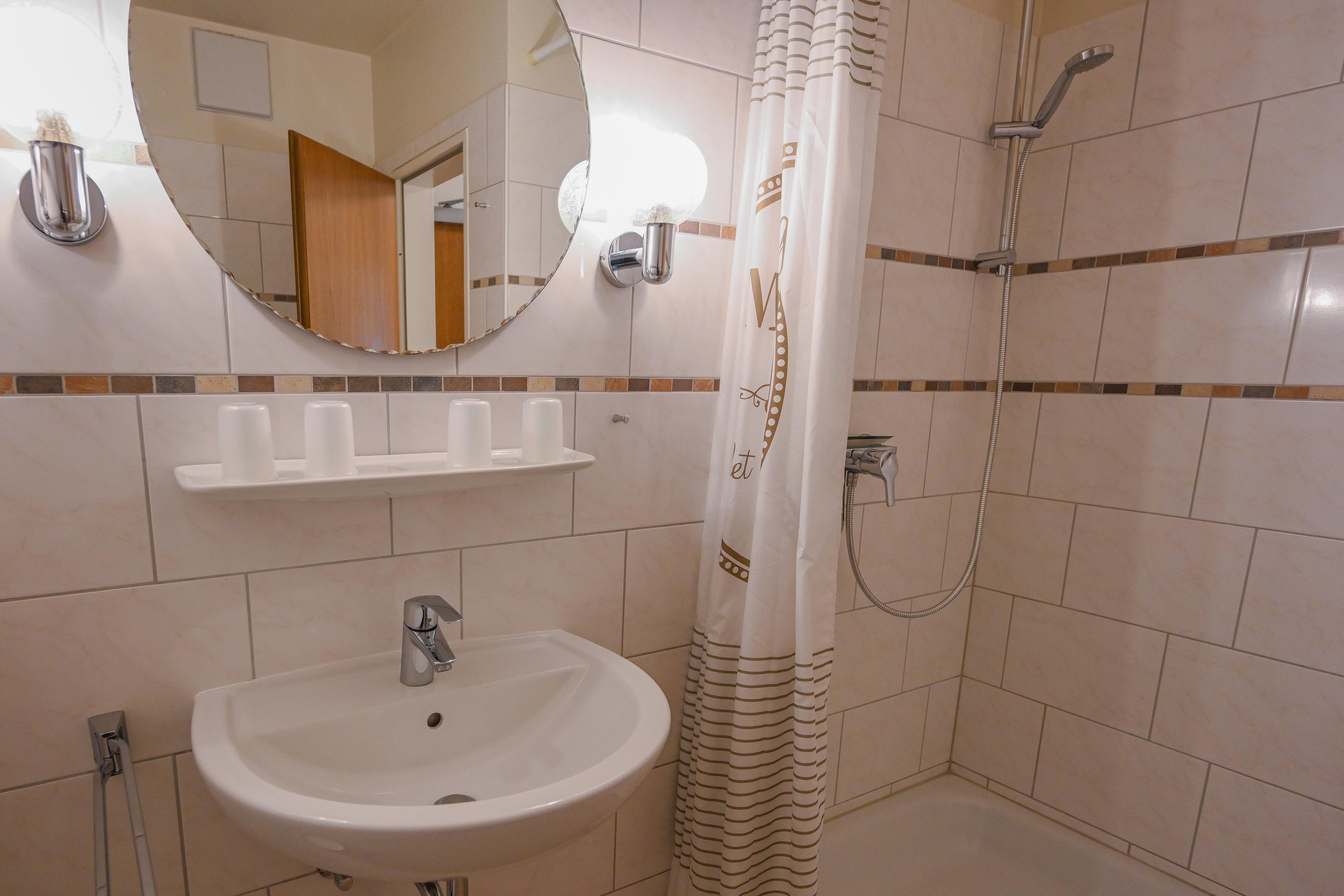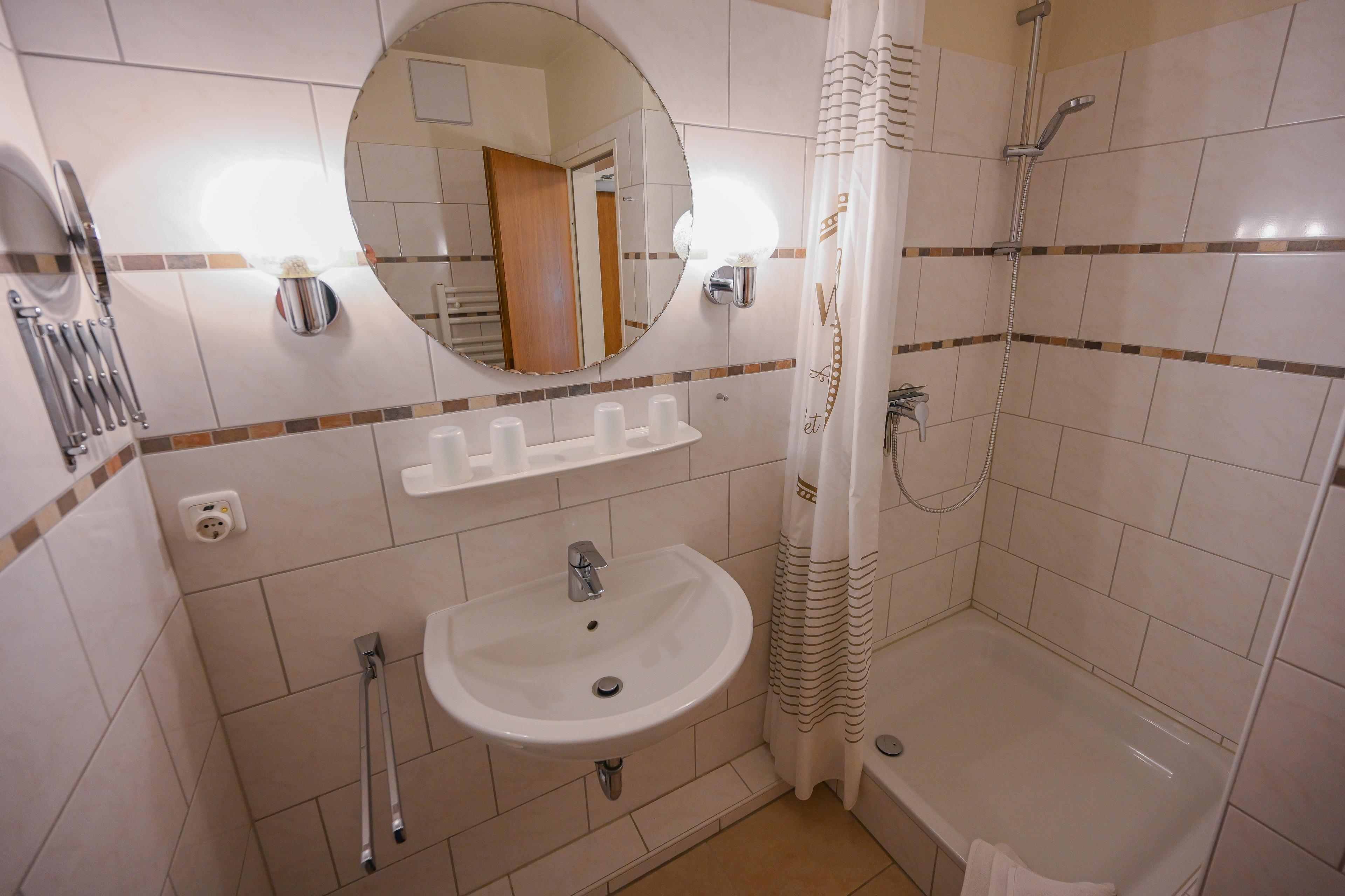 In der 1. Etage liegt unsere große 3-Raum-Ferienwohnung Nr.19 mit Südbalkon. Sie eignet sich für 2-4 Personen und ist mit einem Wohnschlafraum mit Schlafsofa, 2 Schlafräumen zum Teil mit Komfortbetten in Überlänge, Küche mit Geschirrspüler und Mikrowelle, Dusche/WC und Flur ausgestattet. Eine aufwendige Dachkonstruktion gibt der Wohnung ihren besonderen Charme.