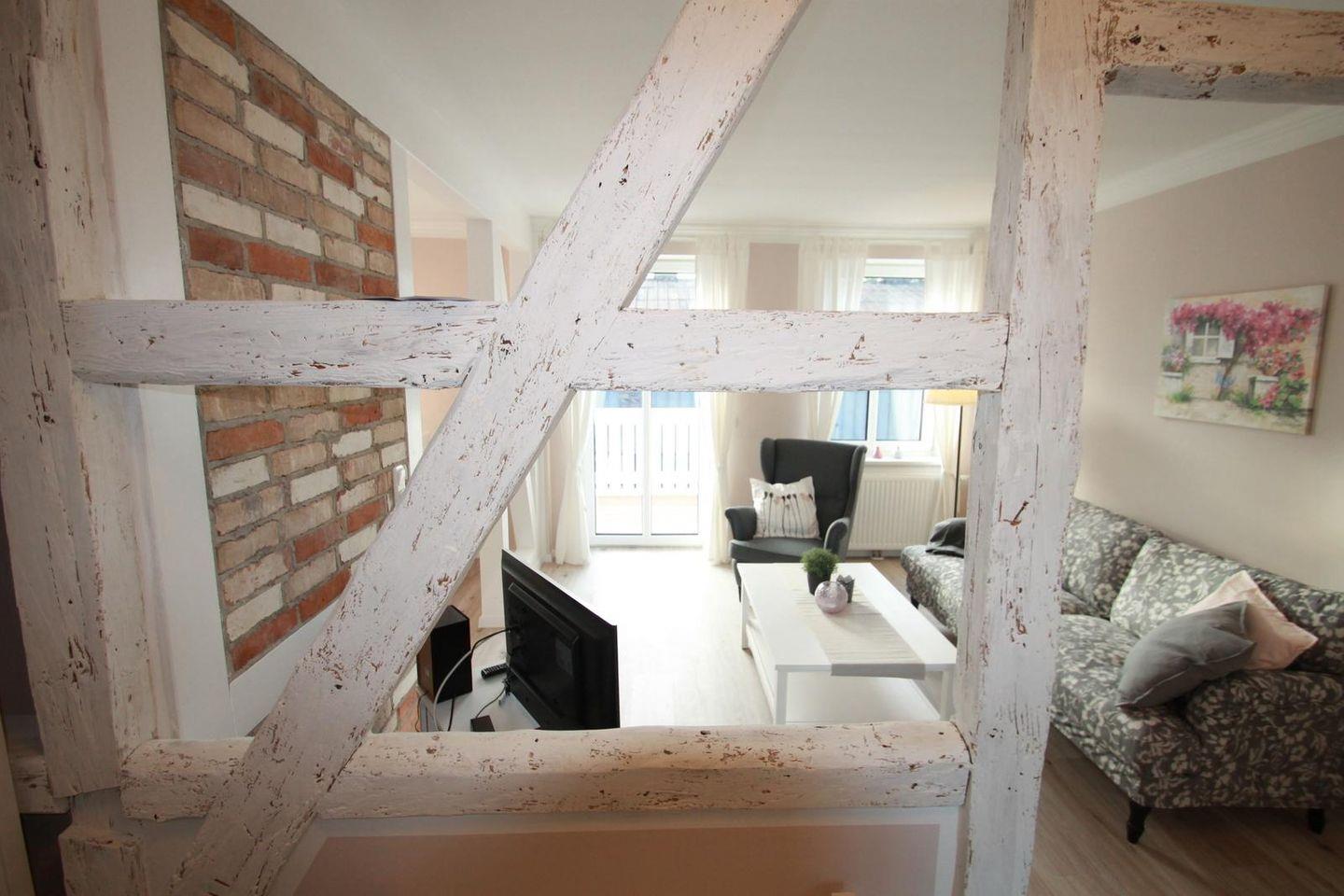 Genießen Sie Ihren Urlaub in dieser stilvollen Ferienwohnung Leuchtturm im Obergeschoss eines Hauses im charmanten Stil der Bäderarchitektur. Die 65 m² große Wohnung bietet Platz für bis zu 4 Personen und besticht durch eine gemütliche Einrichtung im Landhausstil.