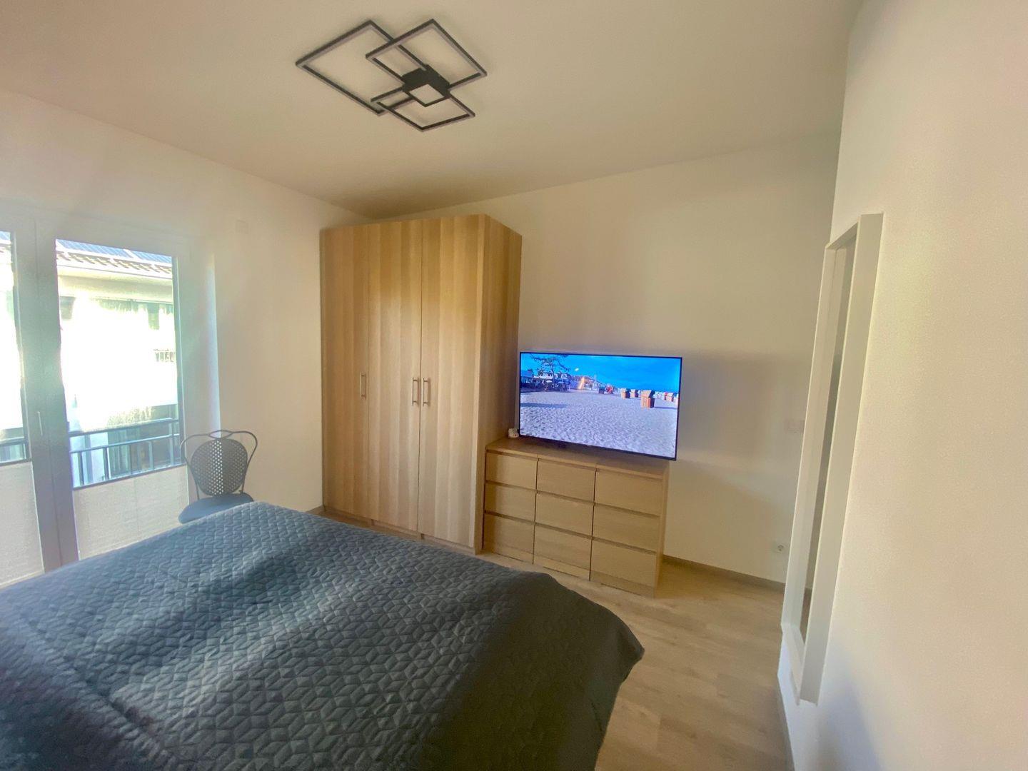 Die direkte Strandnähe ist ein weiteres Highlight dieser außergewöhnlichen Wohnung. Sie bietet Platz für vier bis fünf Personen und ist somit ideal für einen gelungenen Urlaub mit Familie oder Freunden. Zwei elegante Bäder und zwei komfortable Schlafzimmer, eines mit einem großen Doppelbett (180x200 cm) und das andere mit zwei zusammenstellbaren Einzelbetten (2x 90x200 cm), sorgen für erholsame Nächte. Im Wohnzimmer steht eine komfortable Schlafcouch für eine weitere Person bereit.