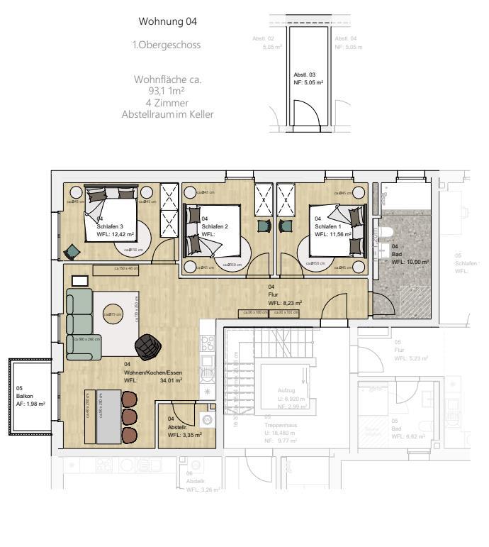 Der möblierte Balkon lädt zu entspannten Stunden im Freien ein und ist der perfekte Ort, um die frische Luft zu genießen. Genießen Sie hier Ihren Morgenkaffee oder ein Glas Wein bei Sonnenuntergang.