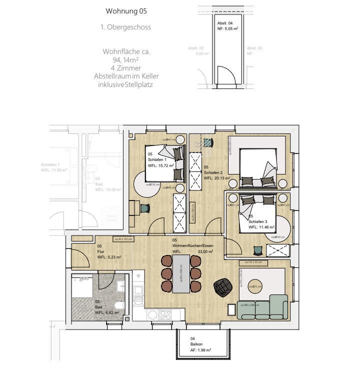 Das Badezimmer bietet eine ebenerdige Dusche und eine integrierte Sauna für private Wellness-Momente. Ein zusätzlicher Balkon steht Ihnen ebenfalls zur Verfügung und lädt zu entspannten Stunden im Freien ein.