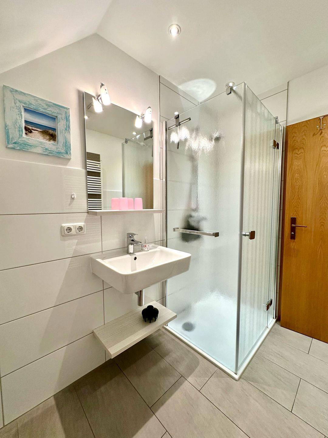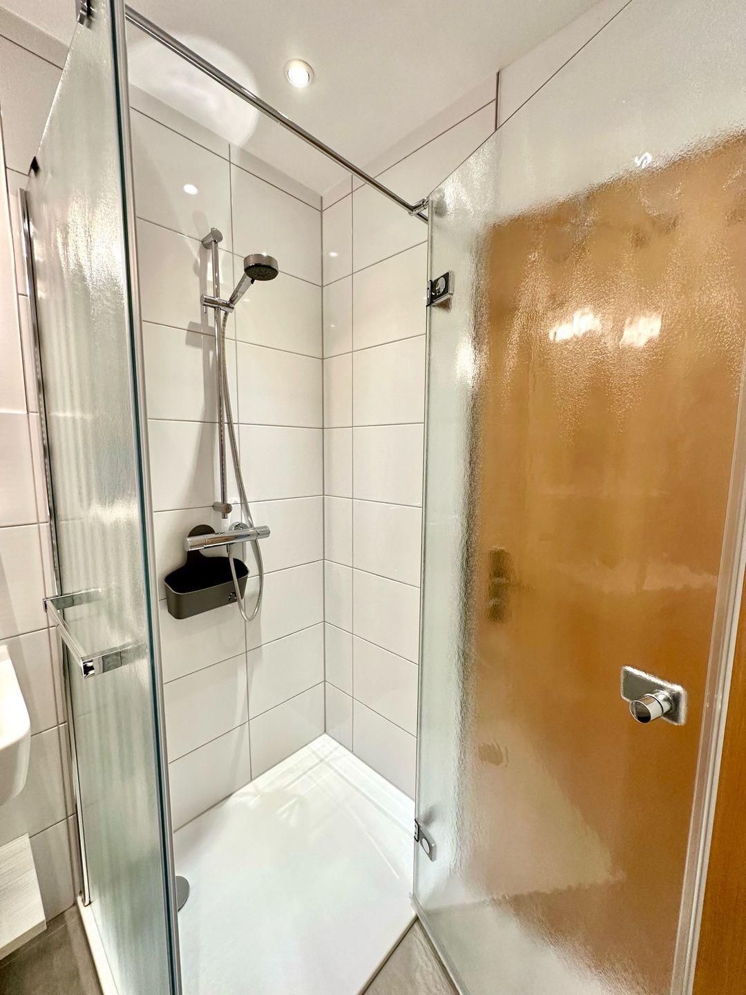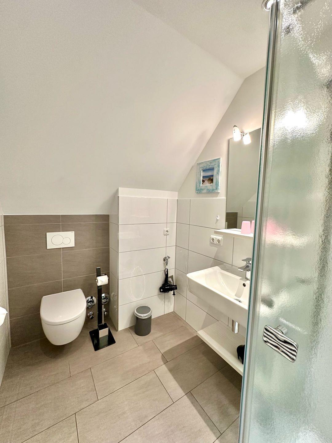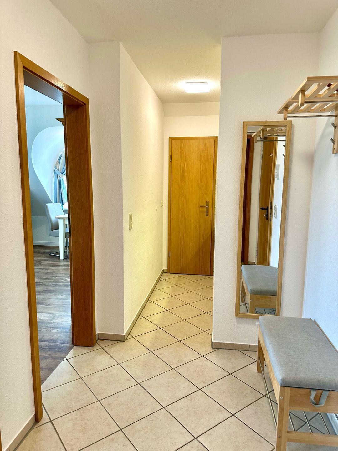 Das Badezimmer ist modern eingerichtet und bietet Ihnen eine Dusche sowie ein WC. In der separaten Küche finden Sie eine hochwertige Einbauküche mit Herd und Backofen, sodass Sie sich jederzeit selbst versorgen können. Ein kleiner Abstellraum sorgt für Komfort. Im Flur stehen Ihnen eine praktische Garderobe und ein Spiegel zur Verfügung. Für Ihr Fahrzeug gibt es einen eigenen Stellplatz direkt am Haus. Selbstverständlich steht Ihnen WLAN mit ortsüblicher Übertragungsrate zur Verfügung.