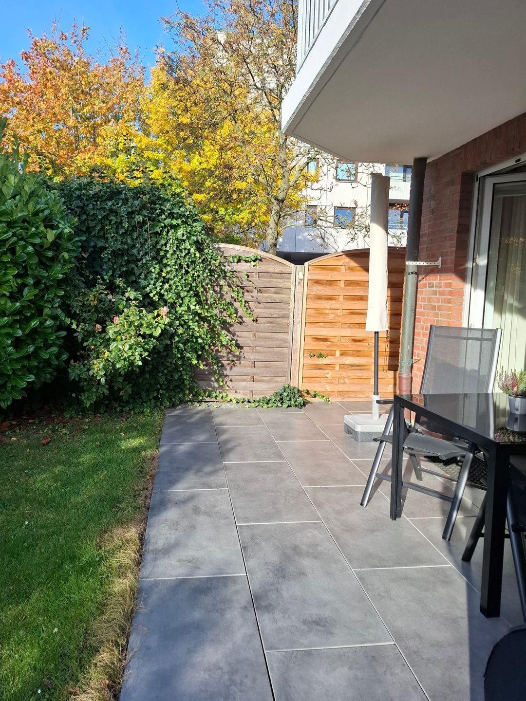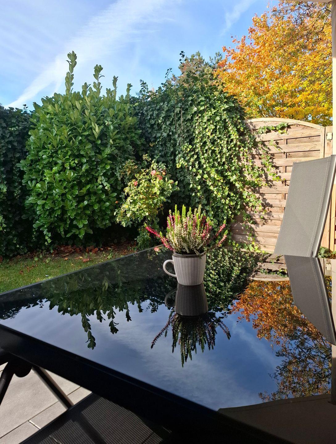 Die Terrasse mit Gartenblick lädt zum Verweilen im Freien ein. Hier finden Sie Gartenmöbel und einen Sonnenschirm, wodurch sich sonnige Nachmittage oder laue Abende in entspannter Atmosphäre genießen lassen. Sie können mit bis zu zwei Personen sowie einem Haustier (maximal ein Hund erlaubt) anreisen, wobei die Unterkunft somit auch ideal für Hundebesitzer geeignet ist.