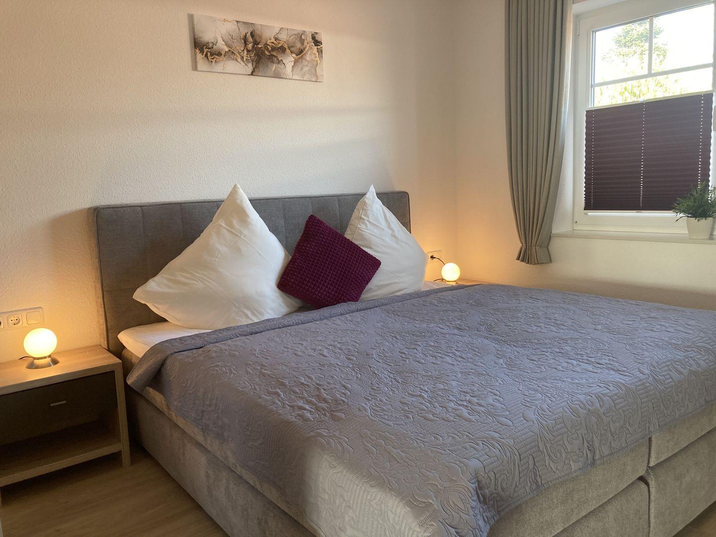 - Schlafzimmer mit Doppelbett und Kleiderschrank