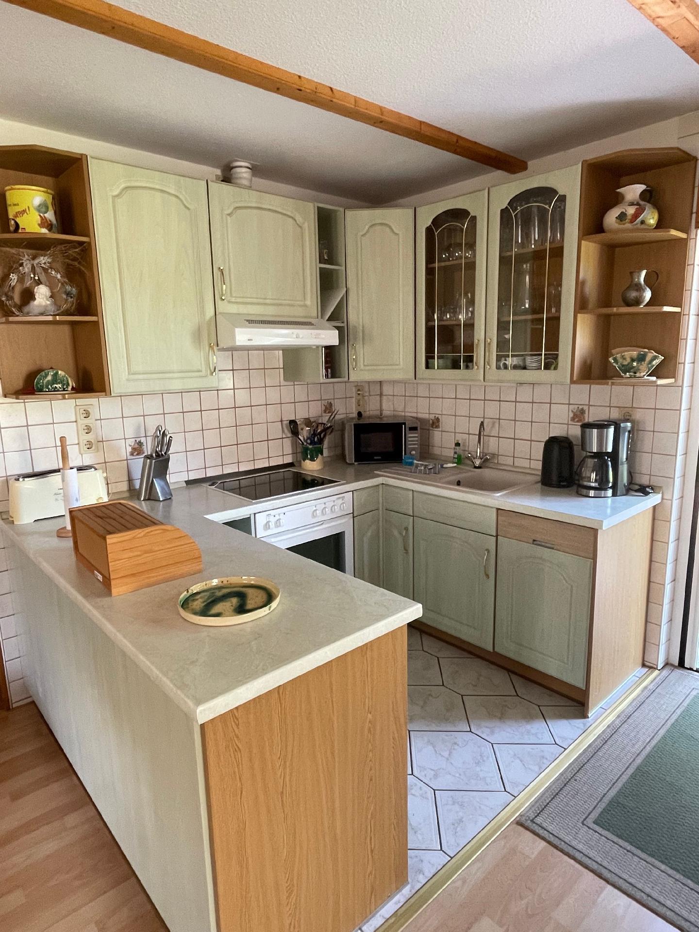 The bungalow has two bedrooms, each with a double bed of 1.40 m. The open-plan kitchen is equipped with a cooker, oven, extractor bonnet, microwave, kettle, toaster, coffee machine, fridge and dishwasher. In the living room is a corner sofa and an armchair.TV with SAT-HD TV, W-Lan.cosy fireplace.bathroom is with daylight.it is equipped with a shower tray, toilet, washbasin, mirror cabinet, hairdryer and a washing machine.non-smoking house.