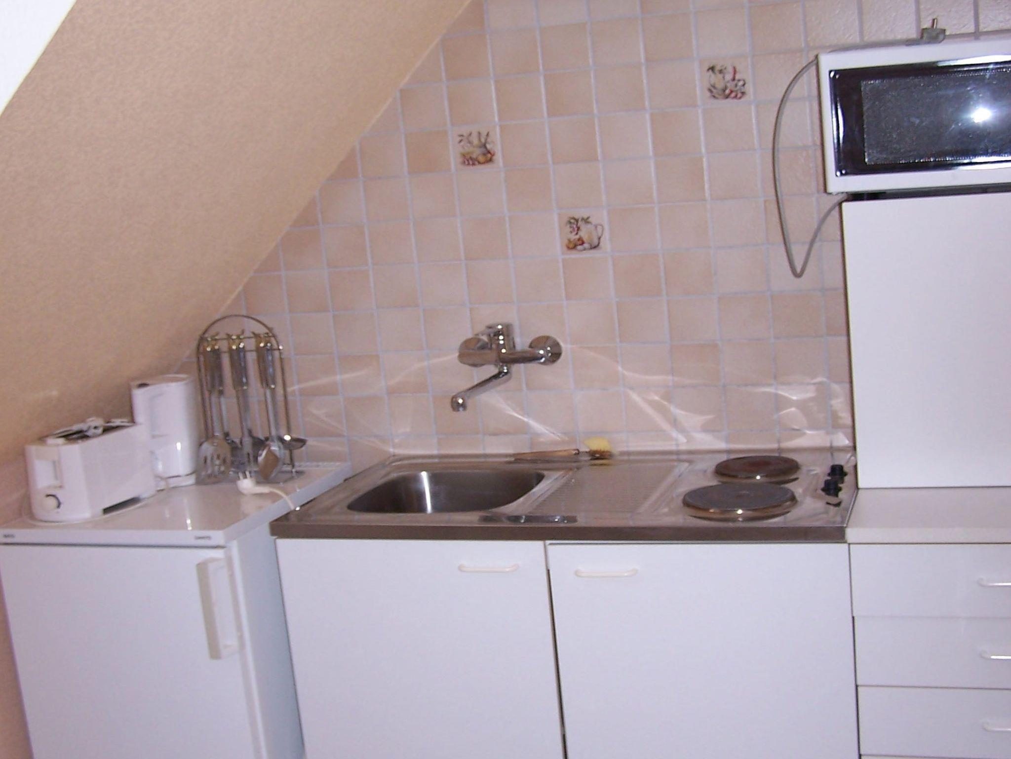gemütlich eingerichtete Ferienwohnung im Obergeschoss eines Ferienhauses mit zwei separaten Ferienwohnungen auf dem Grundstück der Vermieter, Wohnraum mit Schlafcouch für 2 Personen, Schlafzimmer mit 2 Betten, Küche, Bad, Kinderreisebett vorhanden, Waschmaschine und Trockner im Nebengebäude, großes Grundstück mit viel Freiraum