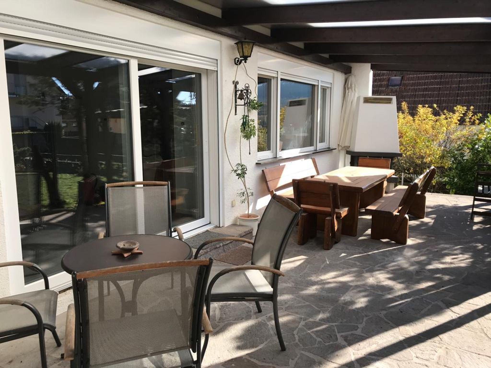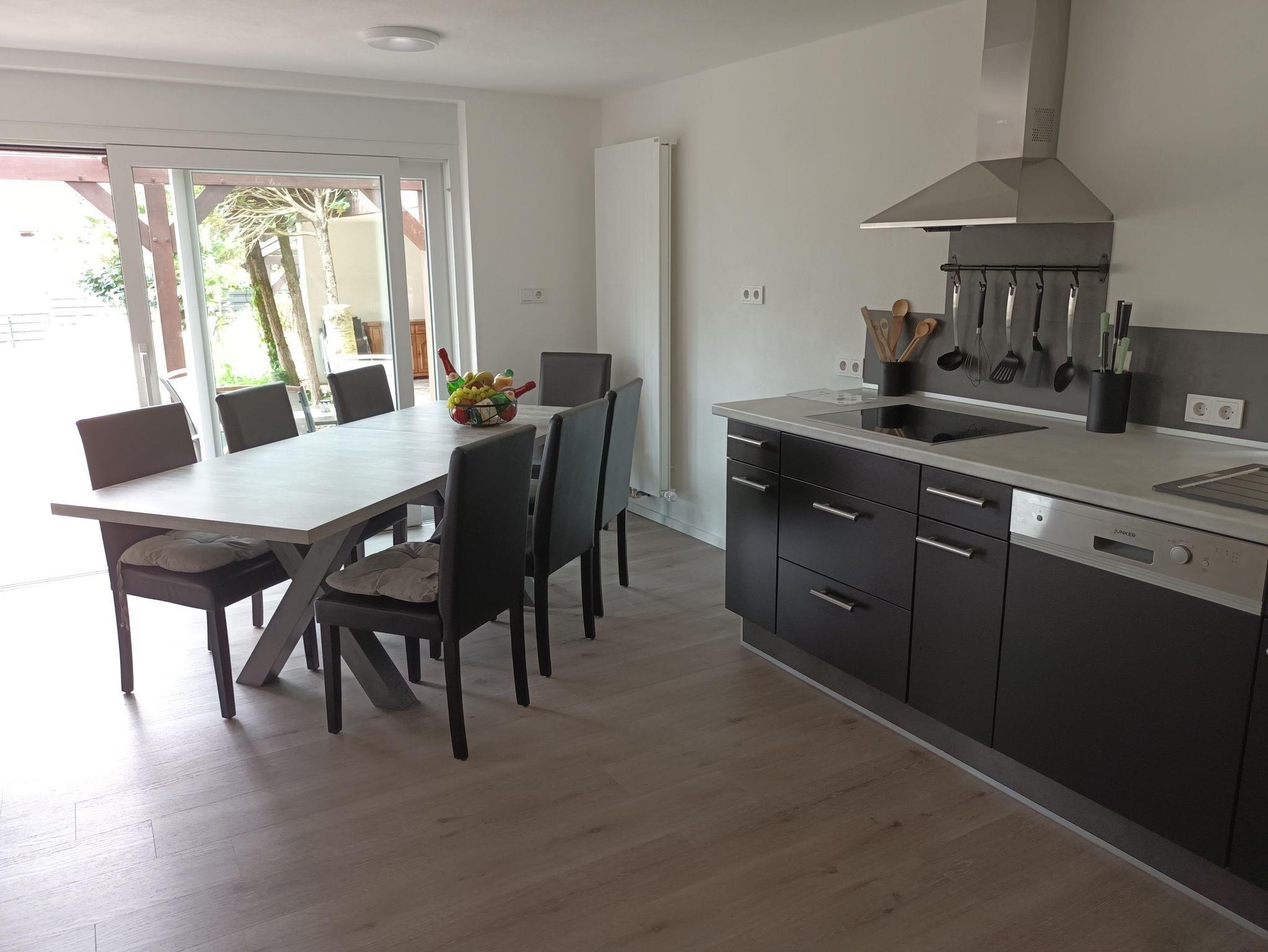 Von der Küche haben Sie direkten Zugang zu unserer überdachten Terrasse mit einem großen Tisch, an dem alle Platz haben.