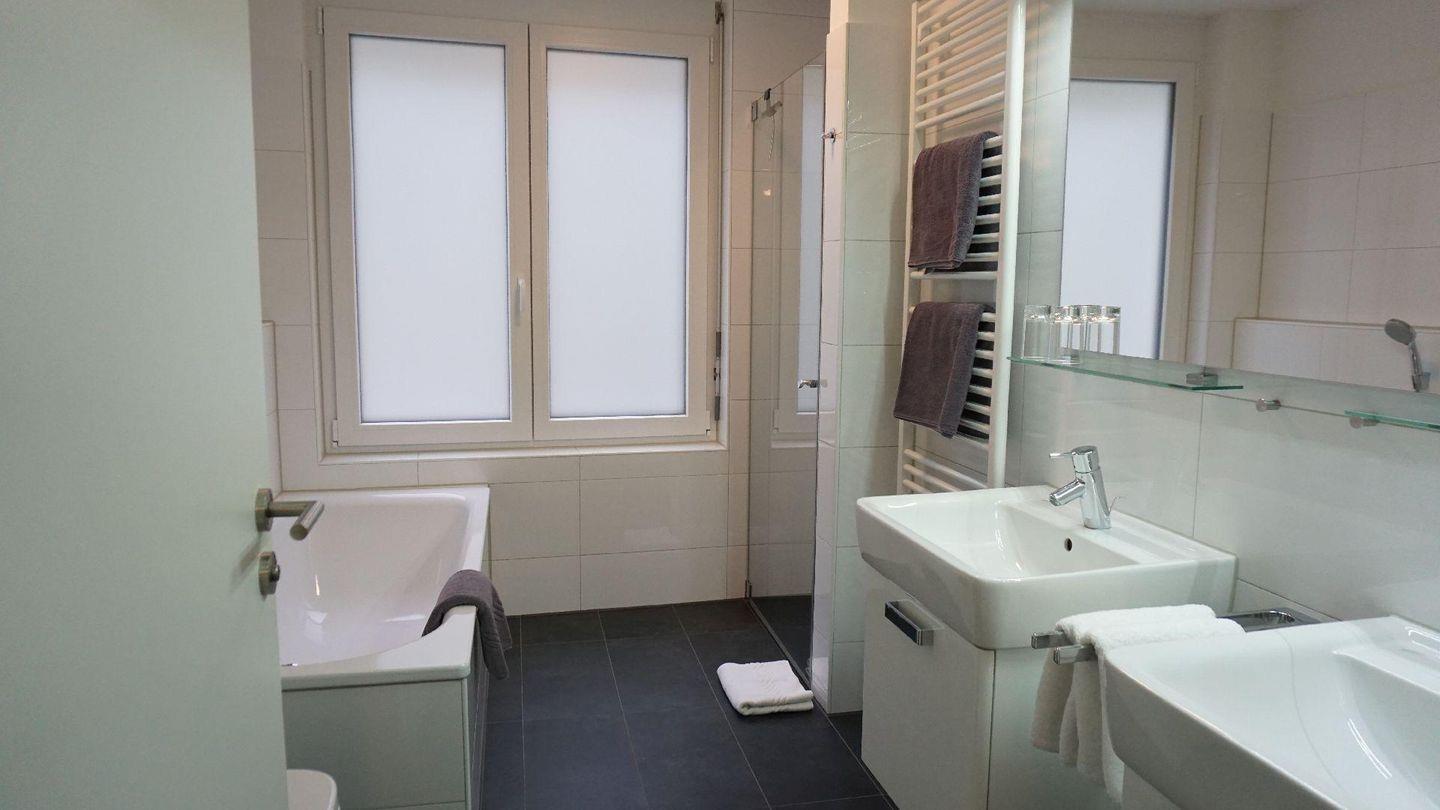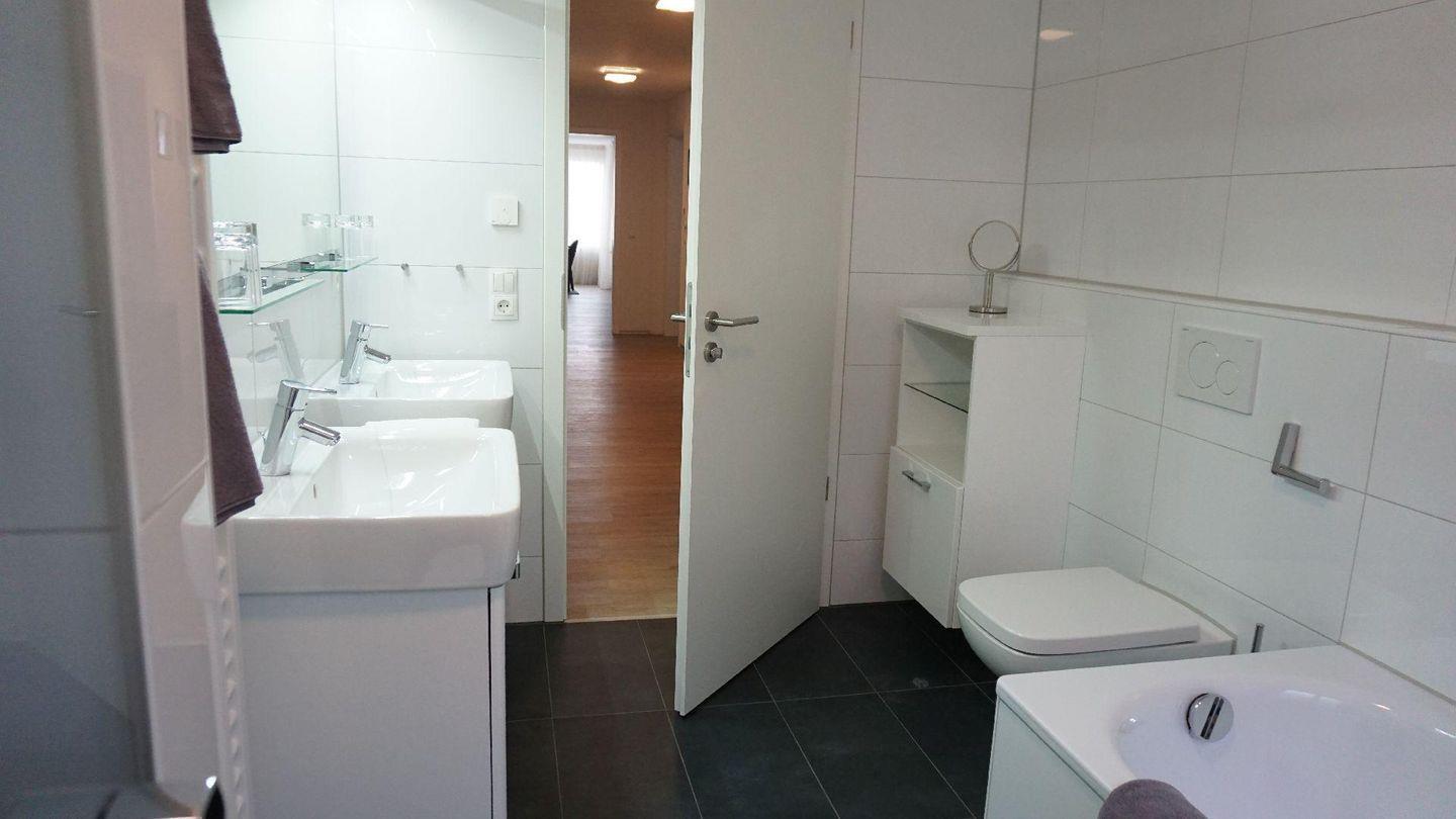 Hier fühlen Sie sich sofort wohl. Die außerordentlich großzügigen Räume bieten bis zu 6 Personen ein komfortables, stilvolles Urlaubs-Zuhause. Alle Zimmer sind modern und hochwertig eingerichtet und mit Extras versehen, wie etwa einer automatischen Rollade oder in den Schrank integrierte TV-Flatscreens. Hervorragend ist auch die Ausstattung in der großen, offenen Küche. Es stehen Ihnen zwei Bäder jeweils mit ebenerdiger Dusche und WC zur Verfügung. Ebenso ein Tiefgaragenplatz im Haus, sowie ein zweiter Stellplatz auf dem Grundstück. Im Untergeschoss können Sie die private Waschmaschine und den Trockner frei verwenden. Ein schattiger Spielplatz liegt direkt gegenüber.