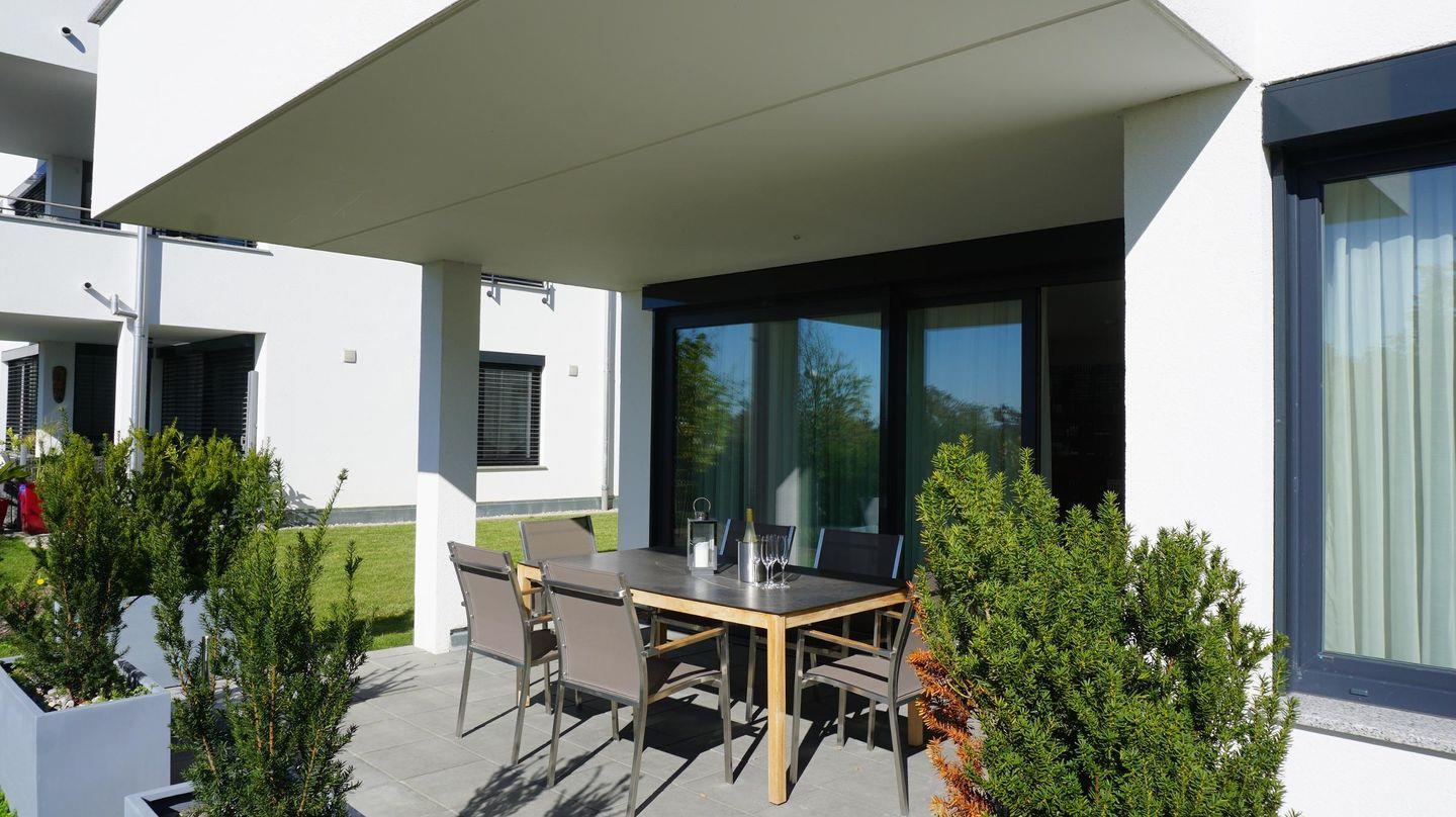 Großzügige, modern eingerichtete, neu erbaute Erdgeschosswohnung mit Terrasse. Supermarkt mit Bäcker und Restaurant in wenigen Gehminuten erreichbar.