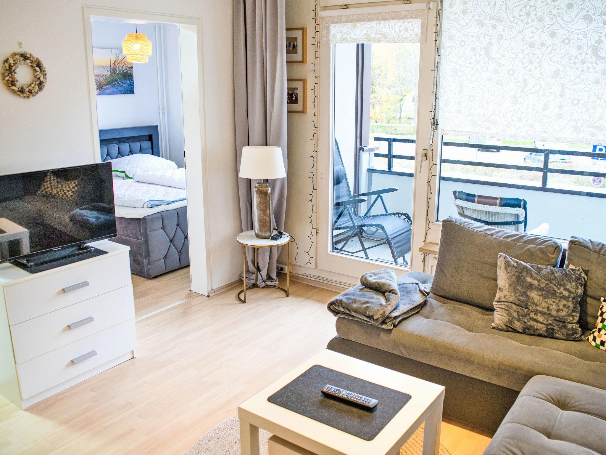 "Koje 44", 2-room apartment 45 m2 on 1st floor. Object suitable for 2 adults + 2 children. Cosy furnishings: living/sleeping room with 1 double sofabed (160 cm, length 200 cm), dining table and cable TV (flat screen). Exit to the balcony. 1 room with 1 double bed (180 cm, length 200 cm). Open kitchen (oven, 4 ceramic glass hob hotplates, toaster, kettle, electric coffee machine). Shower/WC. Small balcony. Balcony furniture, box-room. Facilities: Internet (WiFi, free). Please note: non-smokers only. Maximum 1 small pet/ dog allowed. Smoke alarm. No cats allowed.