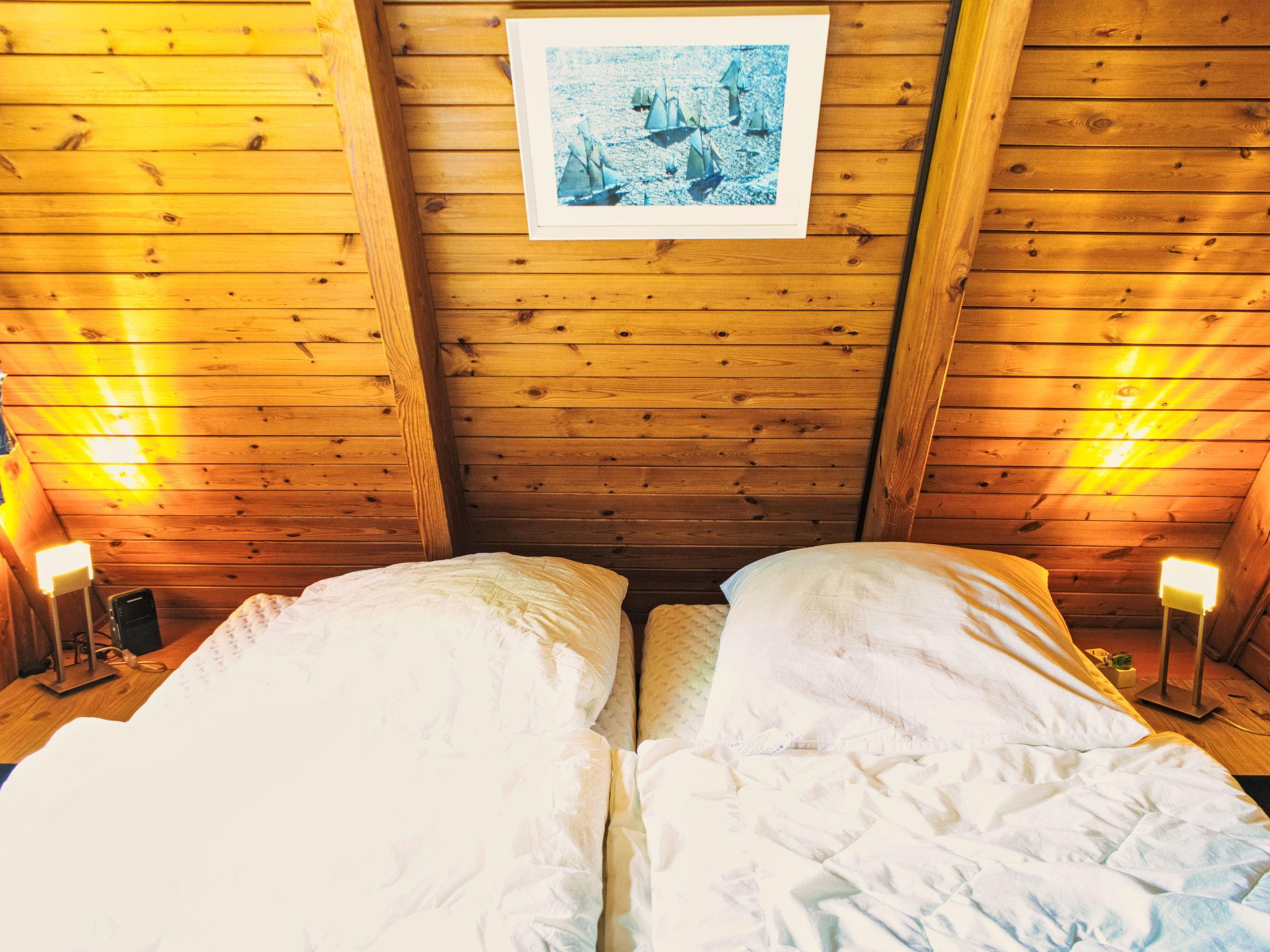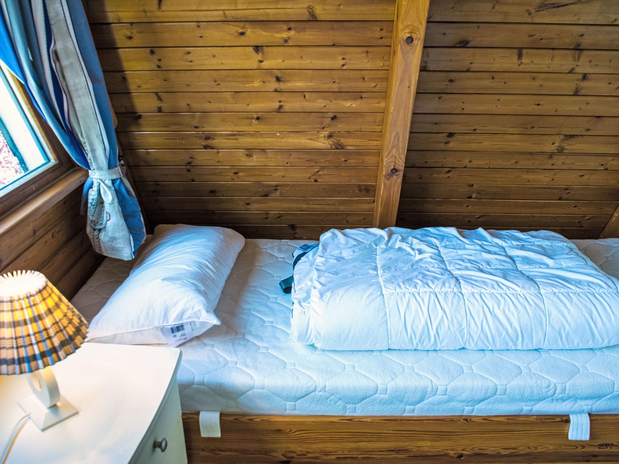 3-room house 68 m2 on 2 levels. Modern and cosy furnishings: open living/dining room with Scandinavian wood stove and satellite TV (flat screen). Exit to the garden, to the terrace. (oven, dishwasher, 4 ceramic glass hob hotplates, toaster, kettle, microwave, electric coffee machine). Shower/WC. Wood heating. Upper floor: 1 room with 1 double bed (180 cm, length 200 cm), satellite TV (flat screen). 1 room with 2 beds (90 cm, length 200 cm). Large terrace roofed. Terrace furniture. Facilities: children's high chair, baby cot. Internet (WiFi, free). Please note: suitable for families. Non-smoking house. 1 pet/ dog allowed.